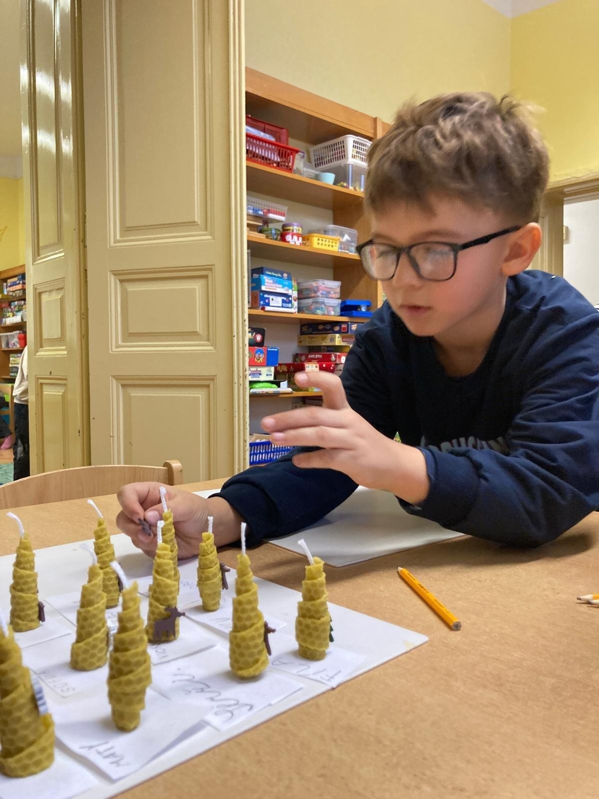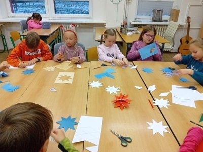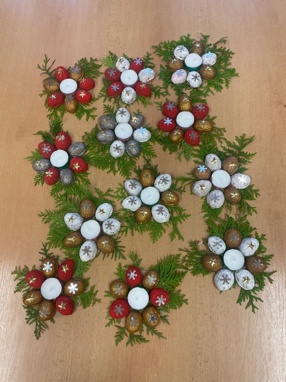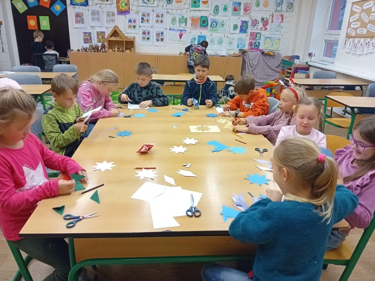 Adventní dílničky se vydařily. Vznikly krásné výrobky. Každé oddělení to pojalo originálně. V 1. oddělení vznikly nádherné papírové hvězdičky a stromečky, ve 2. oddělení svícínky ze skořápek a živých větvičky, ve 3. oddělení malovali adventní kalendáře a ozdoby z tvrdnoucí hmoty a papíru, 4. a 6. oddělení zdobilo skleněné ozdoby, vyrábělo medové svíčky a skládalo domečky, 5. oddělení vytvářelo adventní papírové městečko a 7. oddělení tvořilo pytlíčky z papíru a vlny a navrhovalo si své vlastní adventní kalendáře.