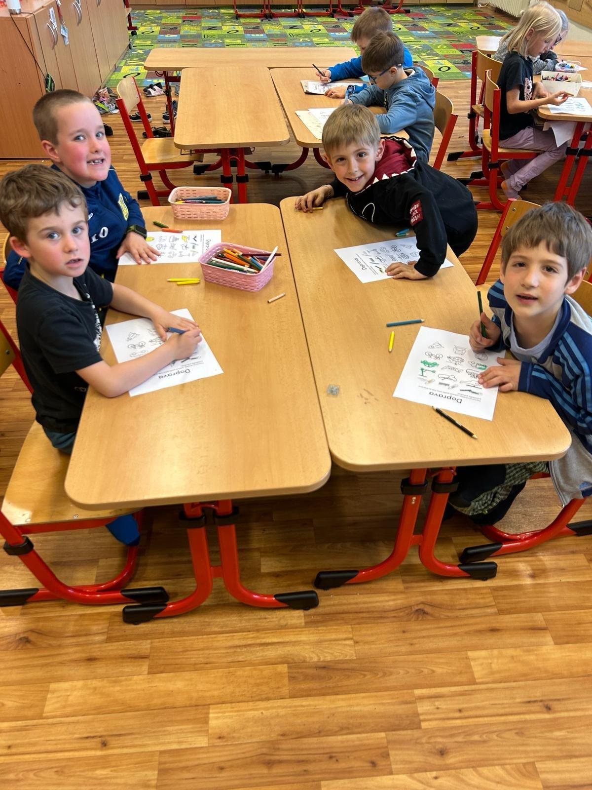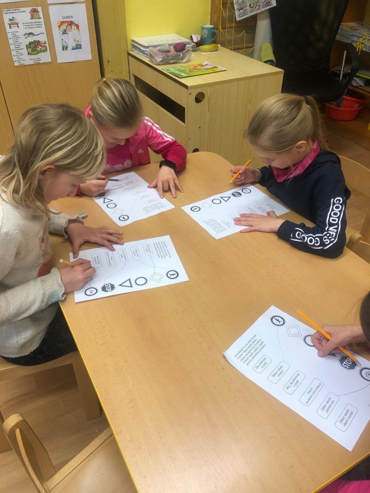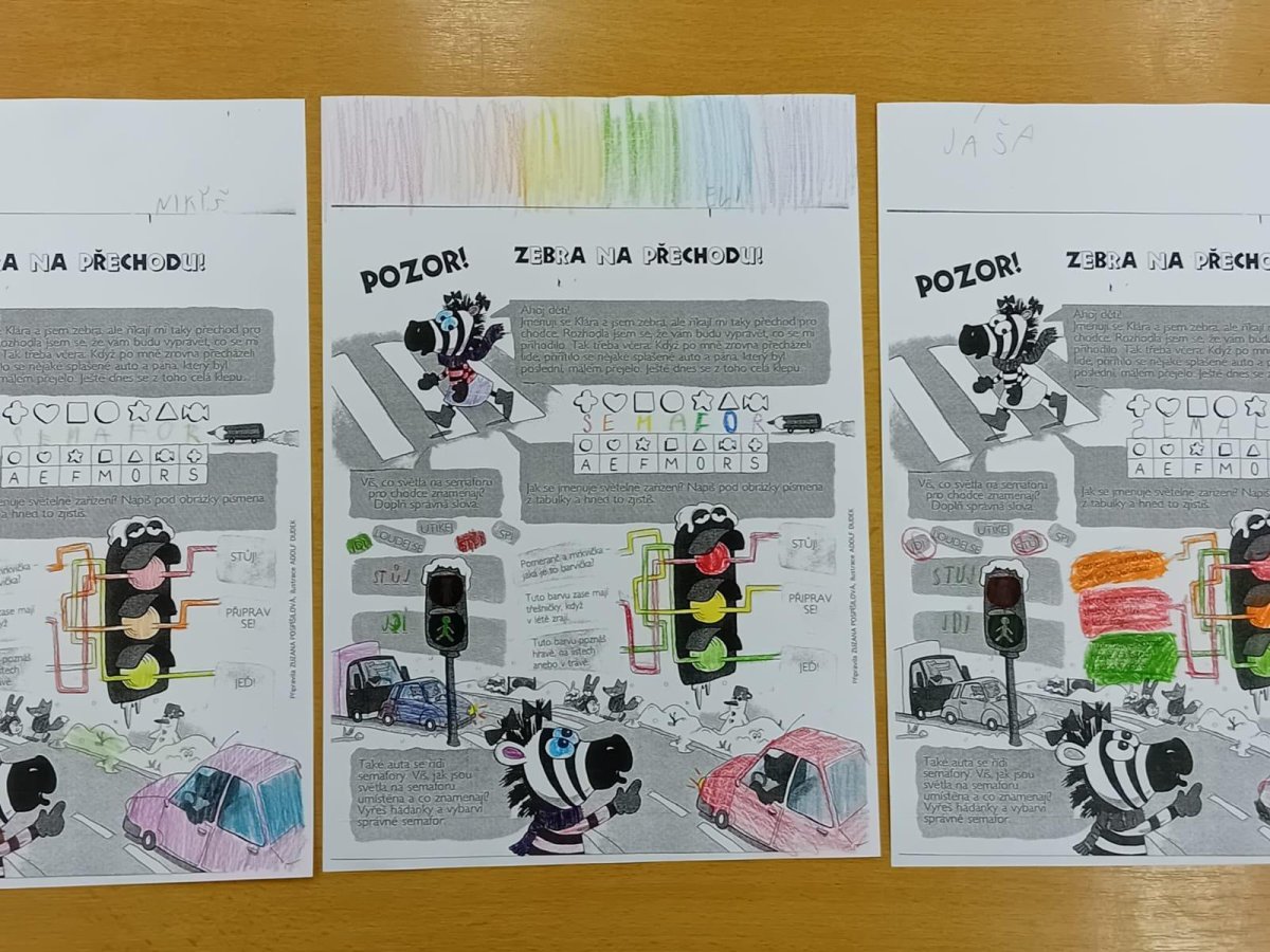 Ve druhém dubnovém týdnu se děti zábavnou formou seznamovaly s pravidly vedoucí k jejich bezpečnosti. Učily se reagovat na dopravní situace a orientovat se v základních pravidlech silničního provozu pomocí her, pracovních listů, výtvarného tvoření a krátkých tématických vycházek do okolí školy. Věříme, že jsme dětem usnadnili orientovat se v dopravní výchově. Tak tedy: Vzhůru do provozu!