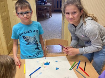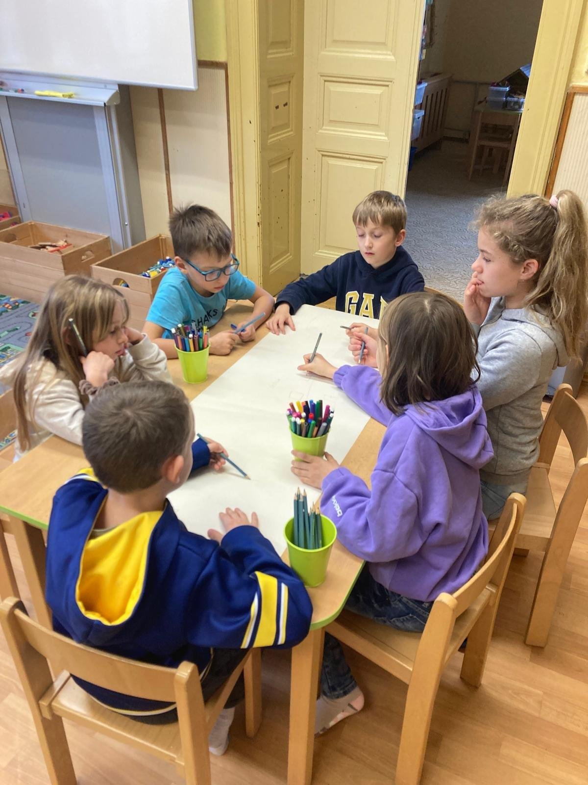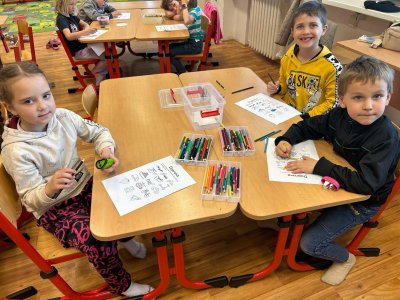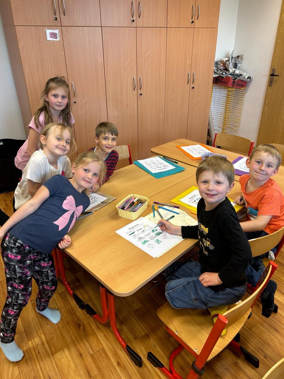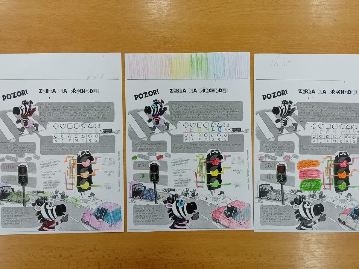 Ve druhém dubnovém týdnu se děti zábavnou formou seznamovaly s pravidly vedoucí k jejich bezpečnosti. Učily se reagovat na dopravní situace a orientovat se v základních pravidlech silničního provozu pomocí her, pracovních listů, výtvarného tvoření a krátkých tématických vycházek do okolí školy. Věříme, že jsme dětem usnadnili orientovat se v dopravní výchově. Tak tedy: Vzhůru do provozu!