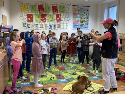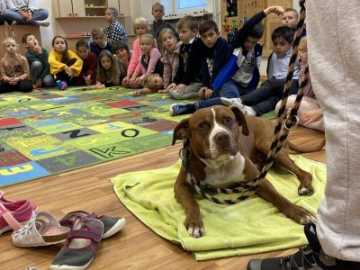 Ne, tak to určitě nebyl Guči, který nás přijel navštivit se svojí paničkou do školní družiny. Naopak nás naučili, jak se správně zachovat, pokud takového zlého psa někde potkáme. Guči je dokonce filmový herec, mohli jste ho vidět v primáckém seriálu ZOO nebo se ně něj můžete podívat v páteční televizní show Můj muž to dokáže.