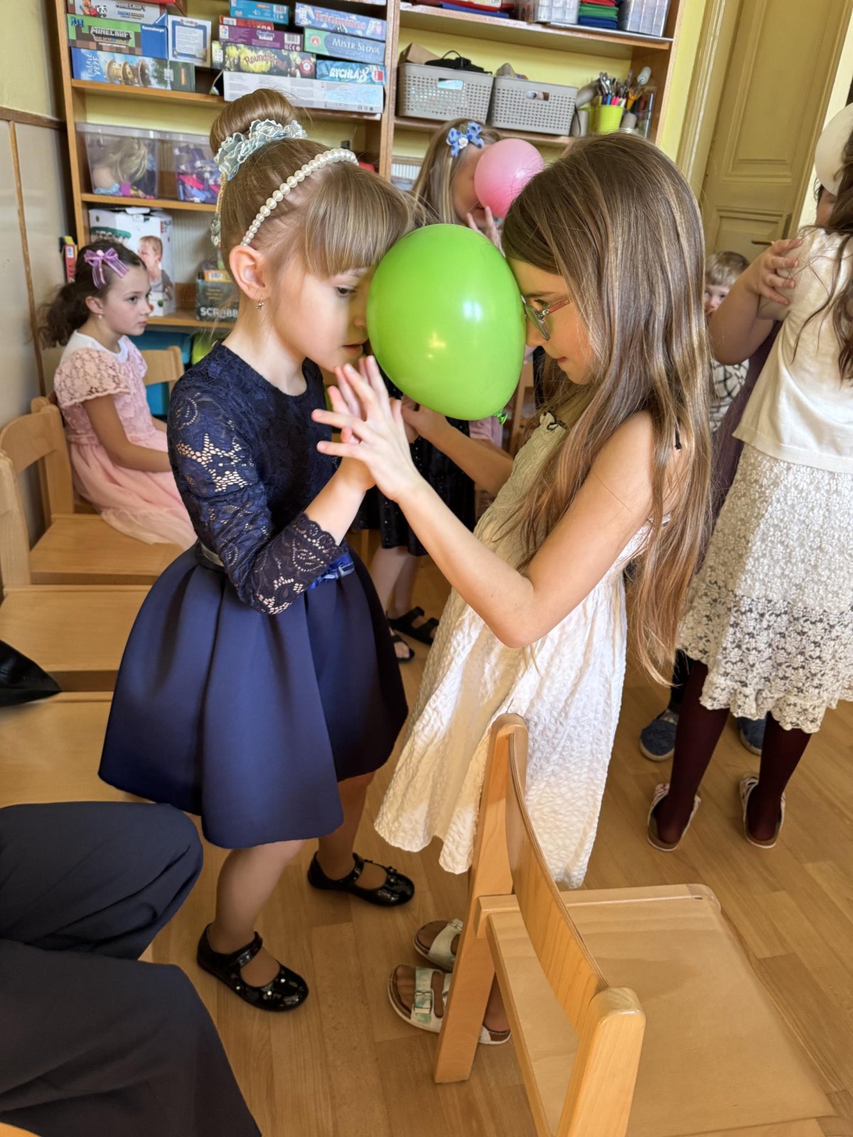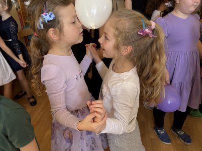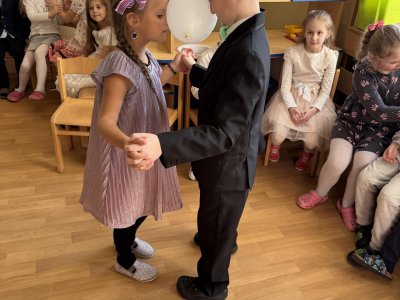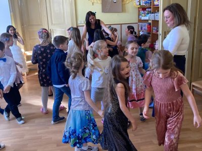 Velkým oživením byla přehlídka společenských šatů, při které se děti s nadšením představily v krásných róbách. Nechyběla ani taneční soutěž s balónky.