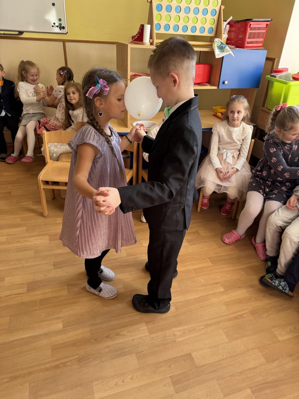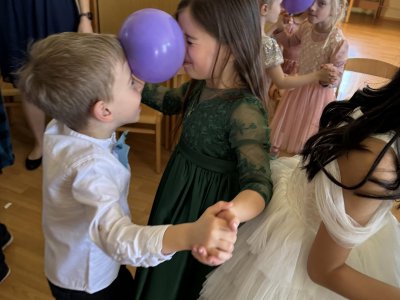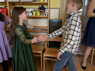 Čtvrteční odpoledne se ve školní družině proměnilo v taneční sál, kde se sešli malí tanečníci, aby si užili družinový bál. Atmosféra byla slavnostní hned od začátku – děti přišly ve společenském oblečení a hned při příchodu bylo znát, že nás čeká výjimečná událost.