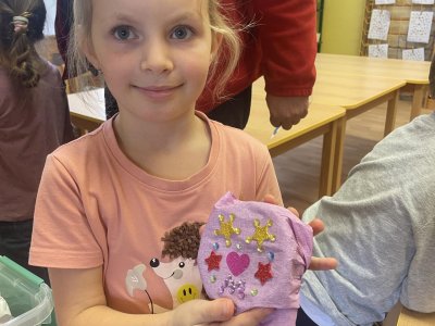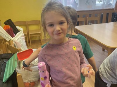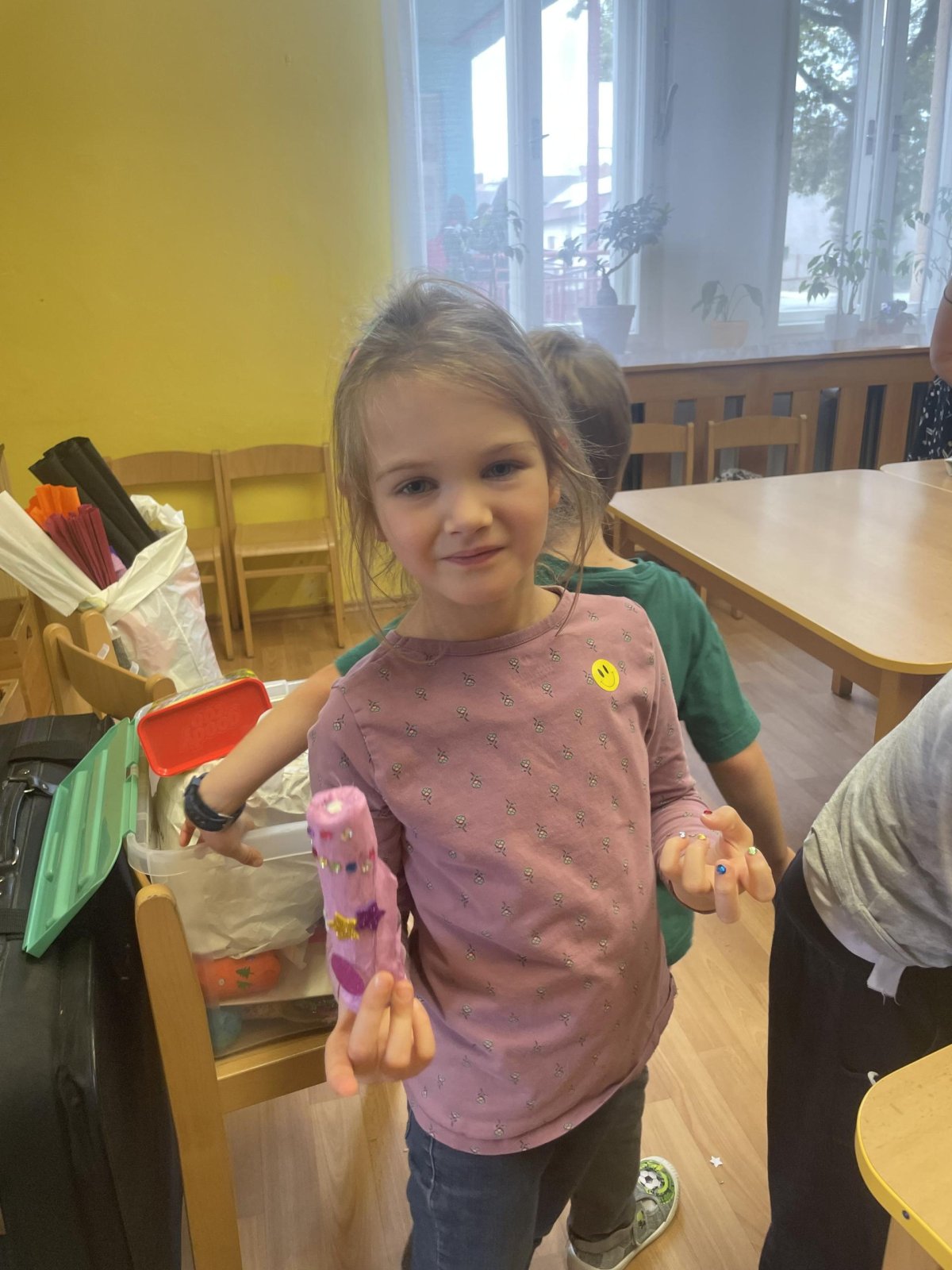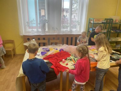Vrcholem celého programu byla tvůrčí dílna. Poté, co děti prožily příběh flétničky, dostaly za úkol vyrobit si svůj vlastní hudební nástroj. Avšak ne z běžných materiálů, ale výhradně z recyklovaného odpadu! Díky připraveným krabicím, plastovým lahvím, ruličkám od toaletního papíru, víčkům a dalším "odpadovým" pokladům, se pustily do práce. Vznikaly tak originální „rachotítka“.