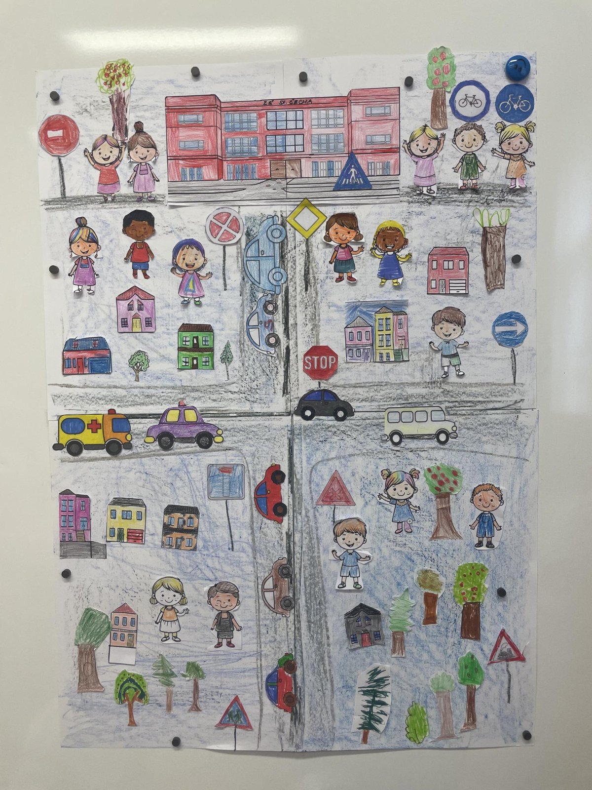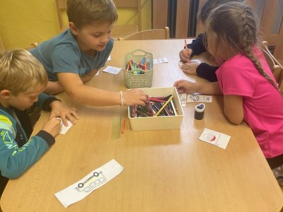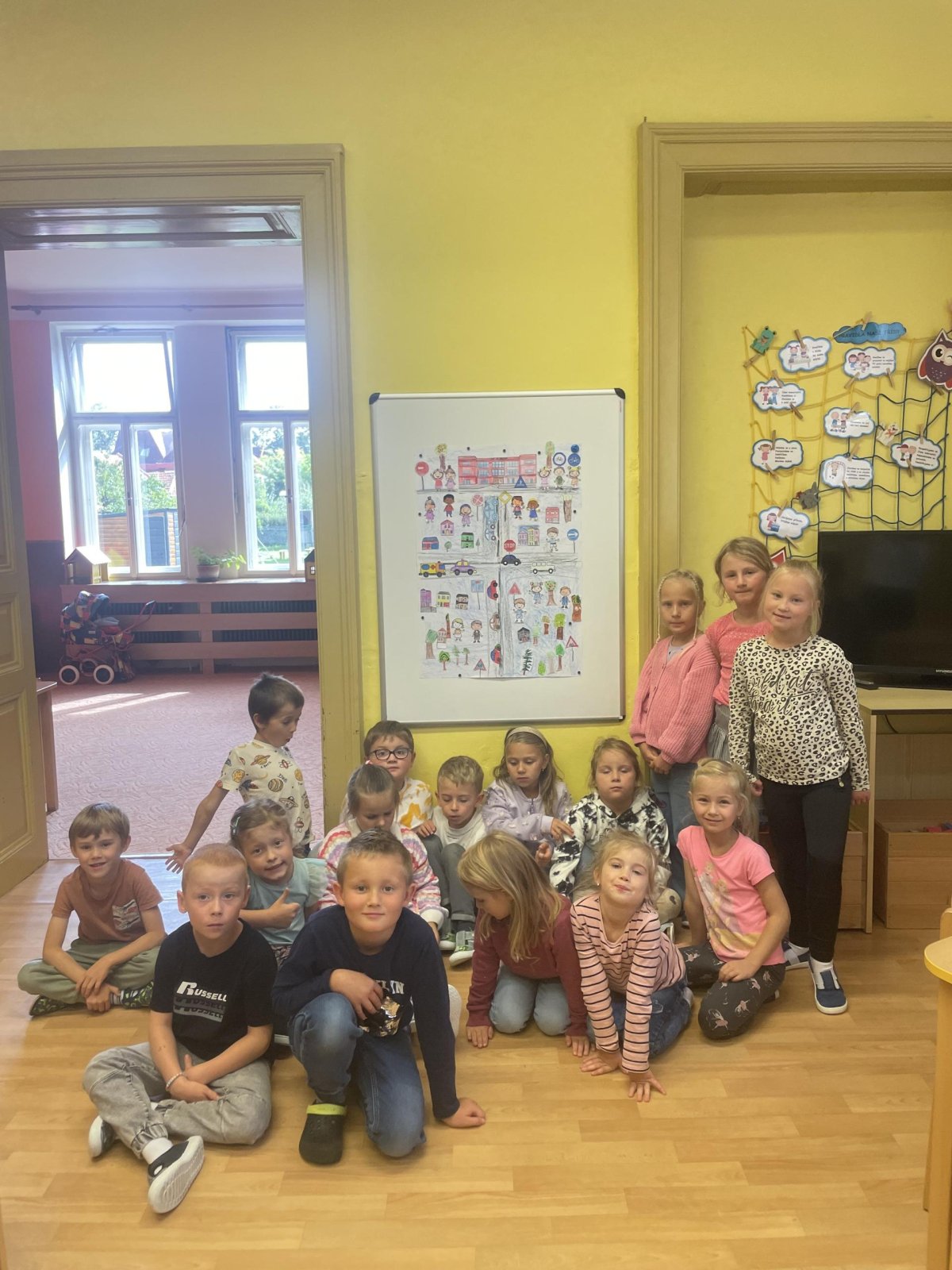 Hlavní myšlenkou akce bylo hravě si připomenout, jak je důležitá bezpečná cesta do školy. Některé děti na velké společné mapě malovaly svou trasu a značily na ní nejdůležitější body. Společně jsme si procvičili, jak se správně rozhlížet, a zopakovali jsme si pravidla chování na chodníku a v dopravě. Tímto způsobem si děti nejen osvěžily důležité informace, ale zároveň se o ně mohly podělit i se svými kamarády.