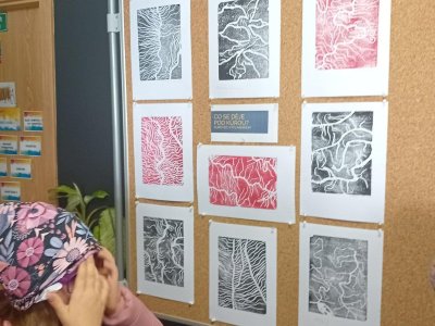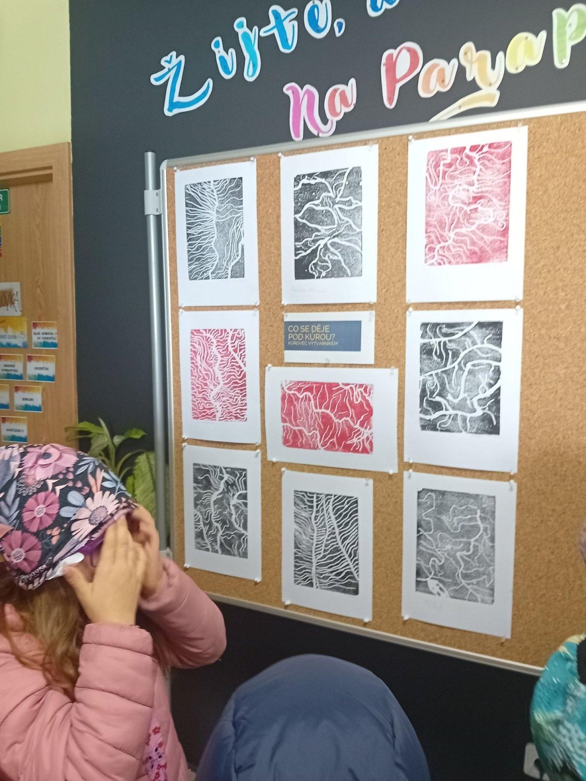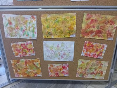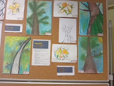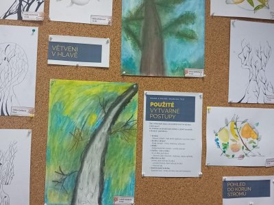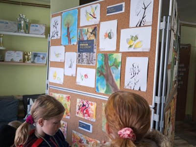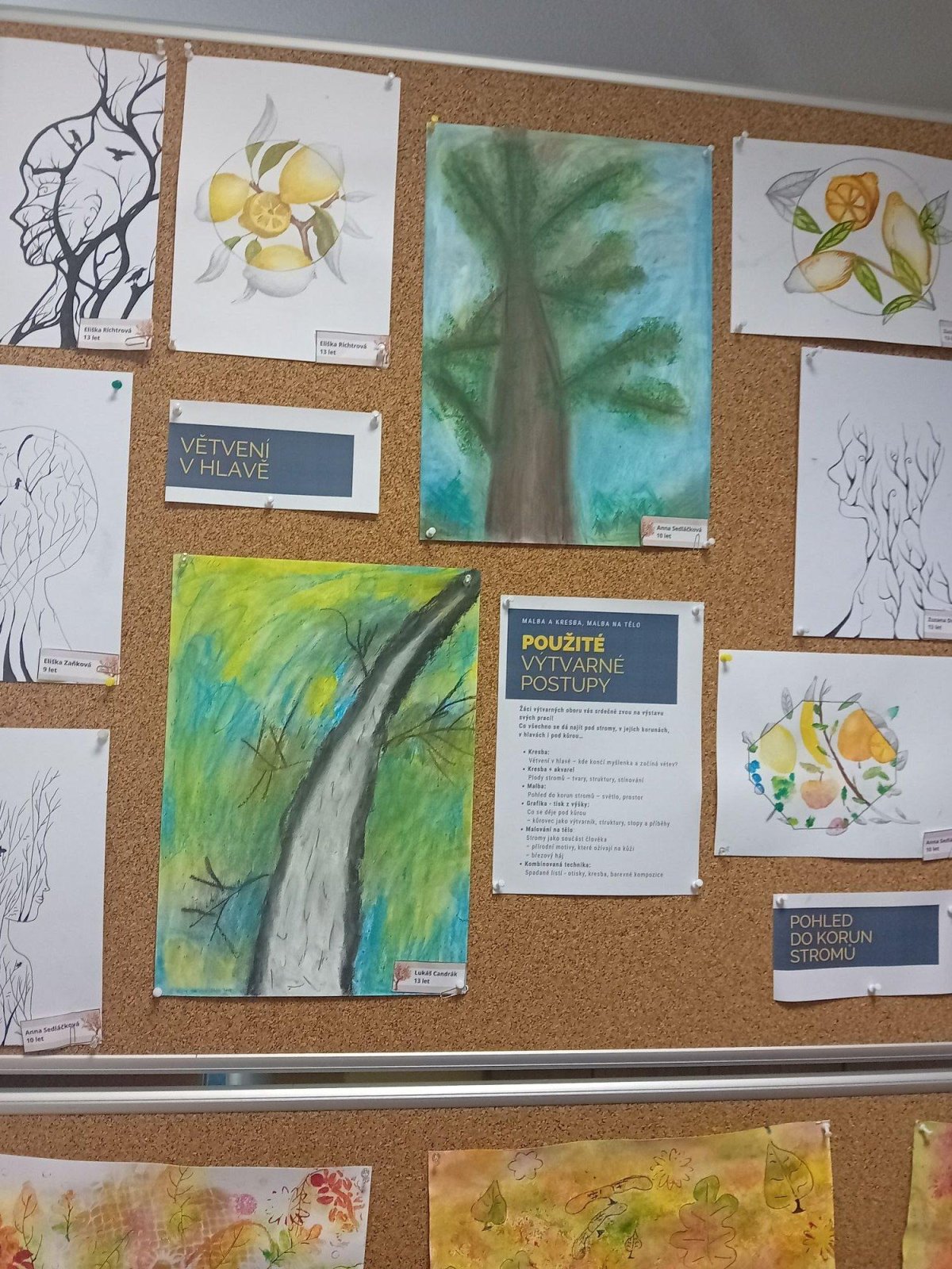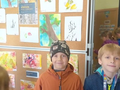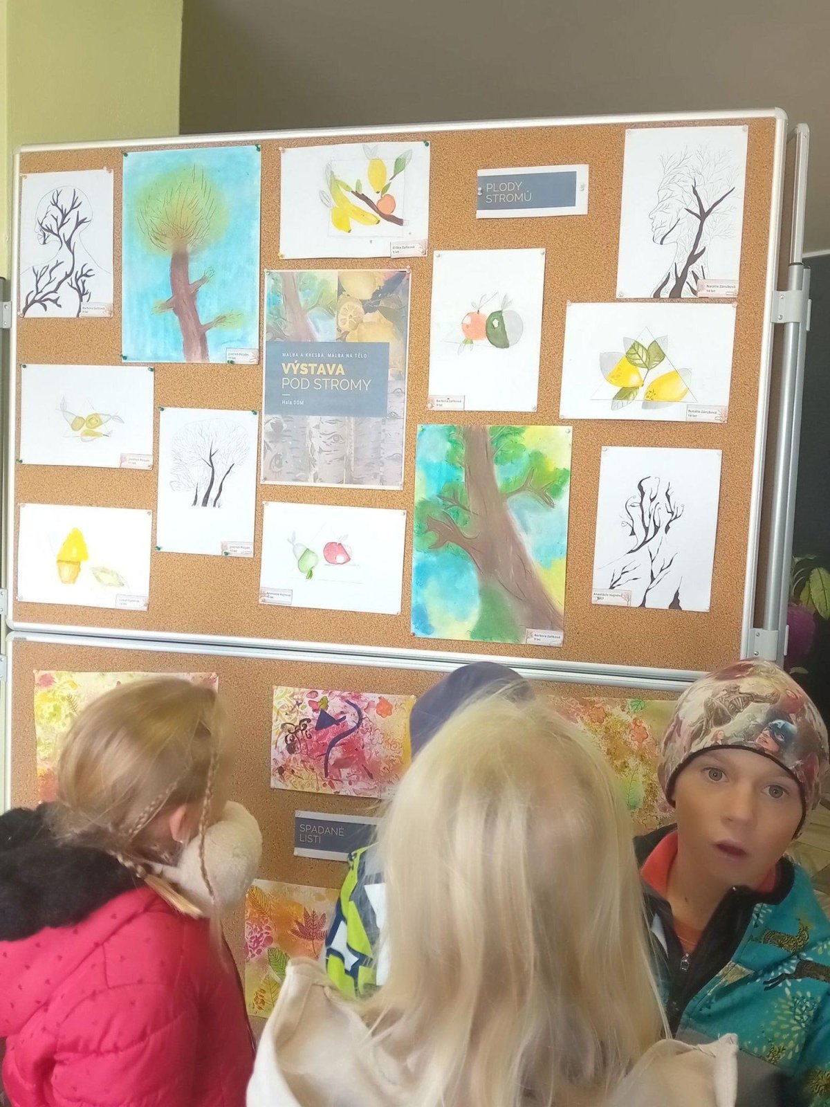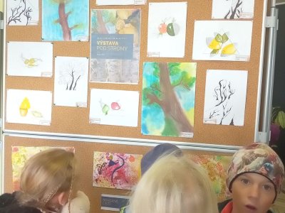 V úterý 21.10. jsme si zpříjemnili podzimní vycházku návštěvou výstavy „Pod stromy“, kterou připravily děti z výtvarného kroužku DDM. Seznámili jsme se z různými výtvarnými technikami, kterými se dají znázornit podzimní změny v přírodě, a podívat se do korun stromů očima dětí.