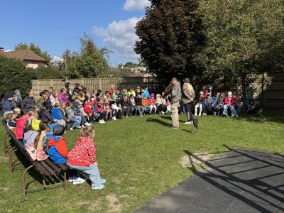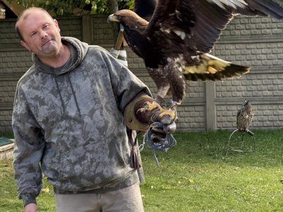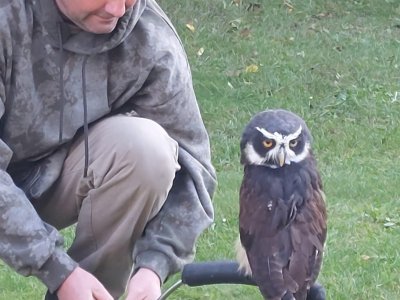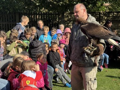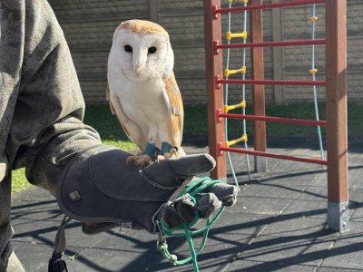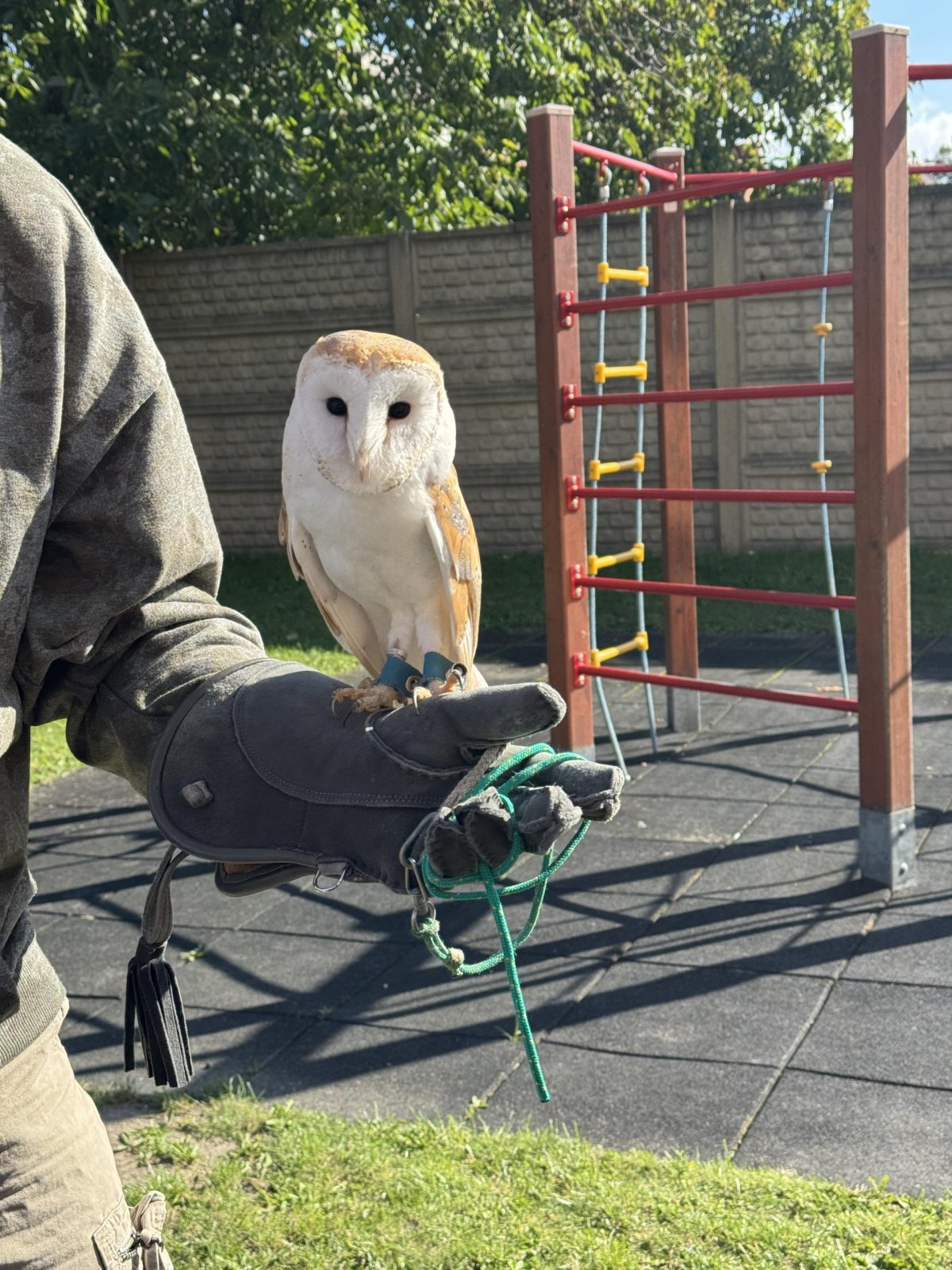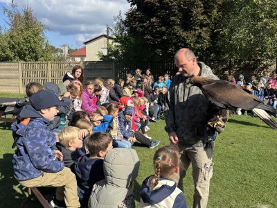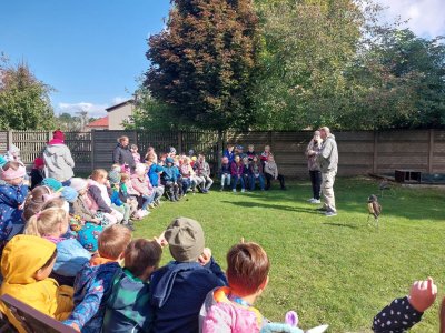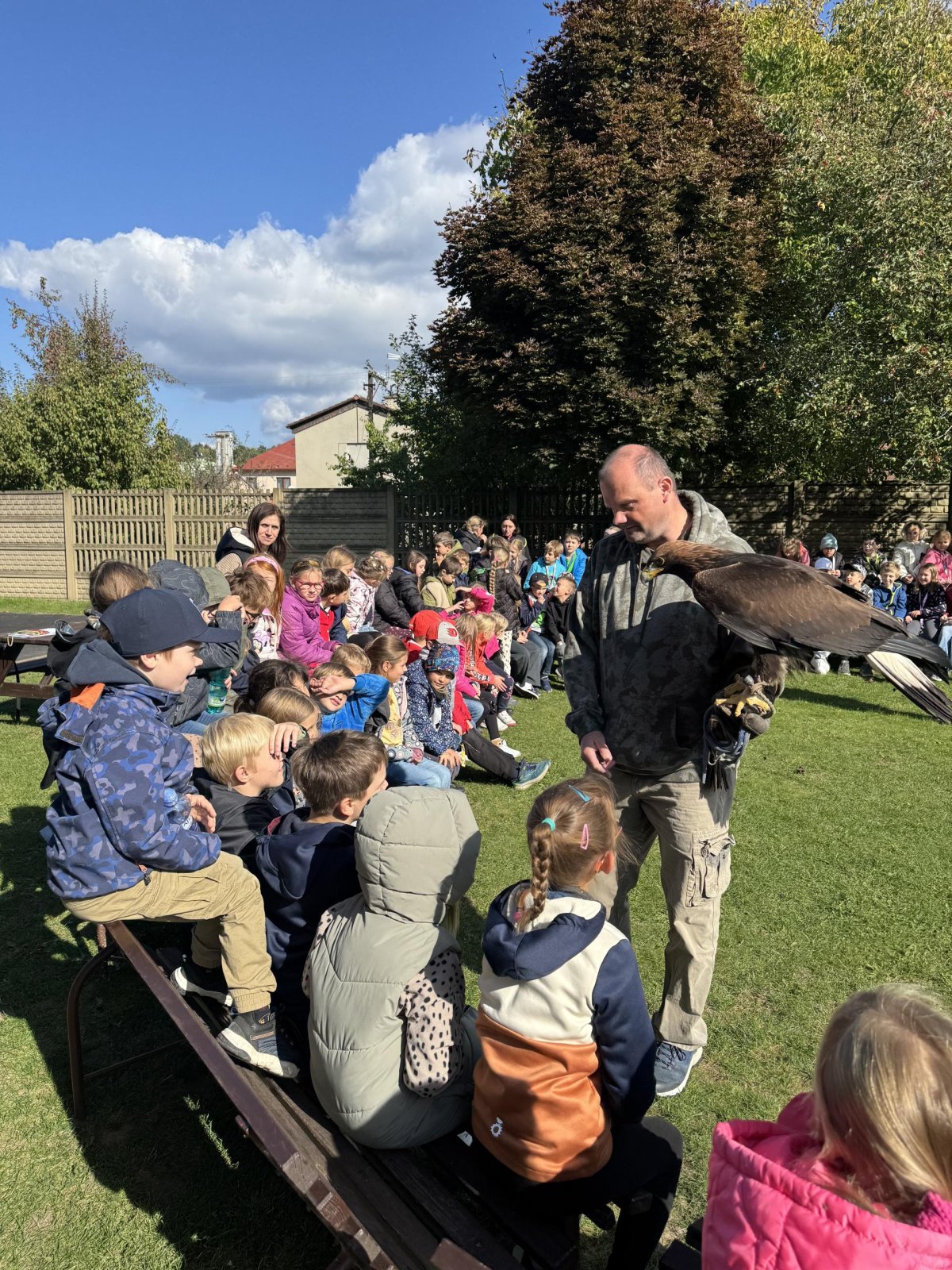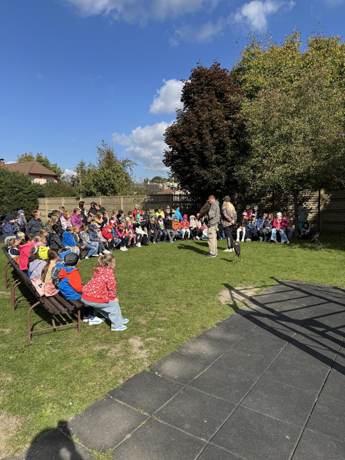 Ve čtvrtek odpoledne se zahrada školní družiny proměnila v místo plné kouzelné atmosféry a fascinujících příběhů ze světa nočních ptáků. Měli jsme jedinečnou příležitost setkat se s nadšenými chovateli dravců a sov, Radkem a Petrou Podolskými ze vzdělávacího centra „Království sov".