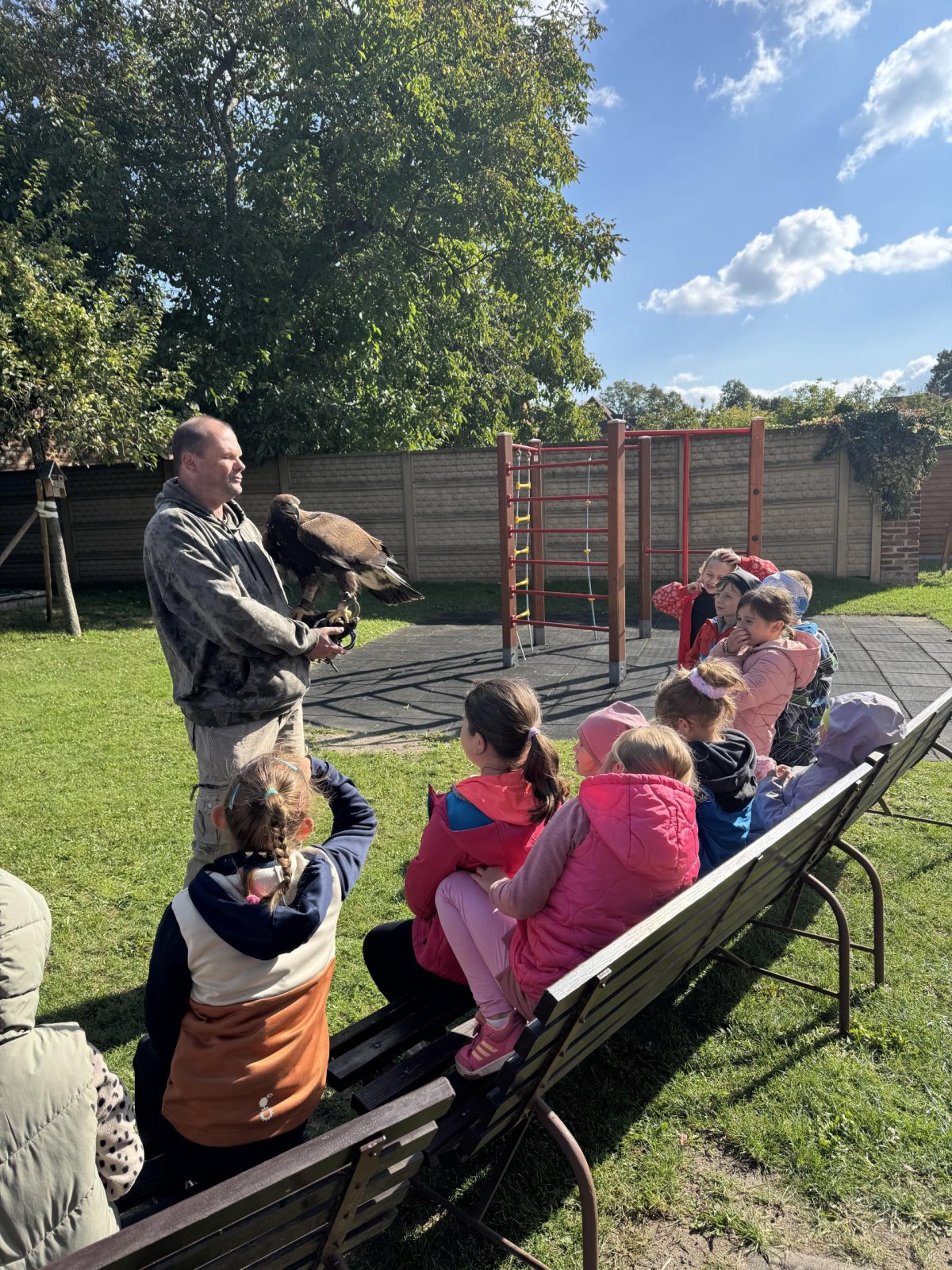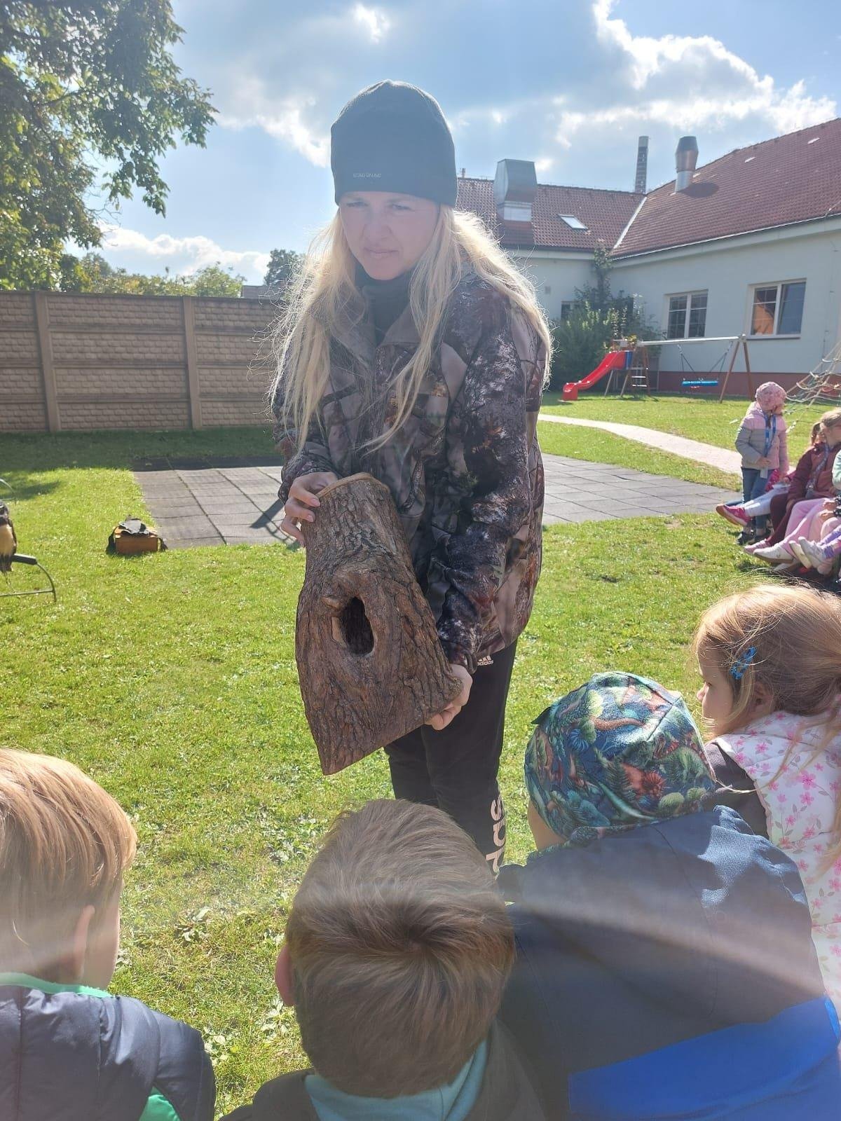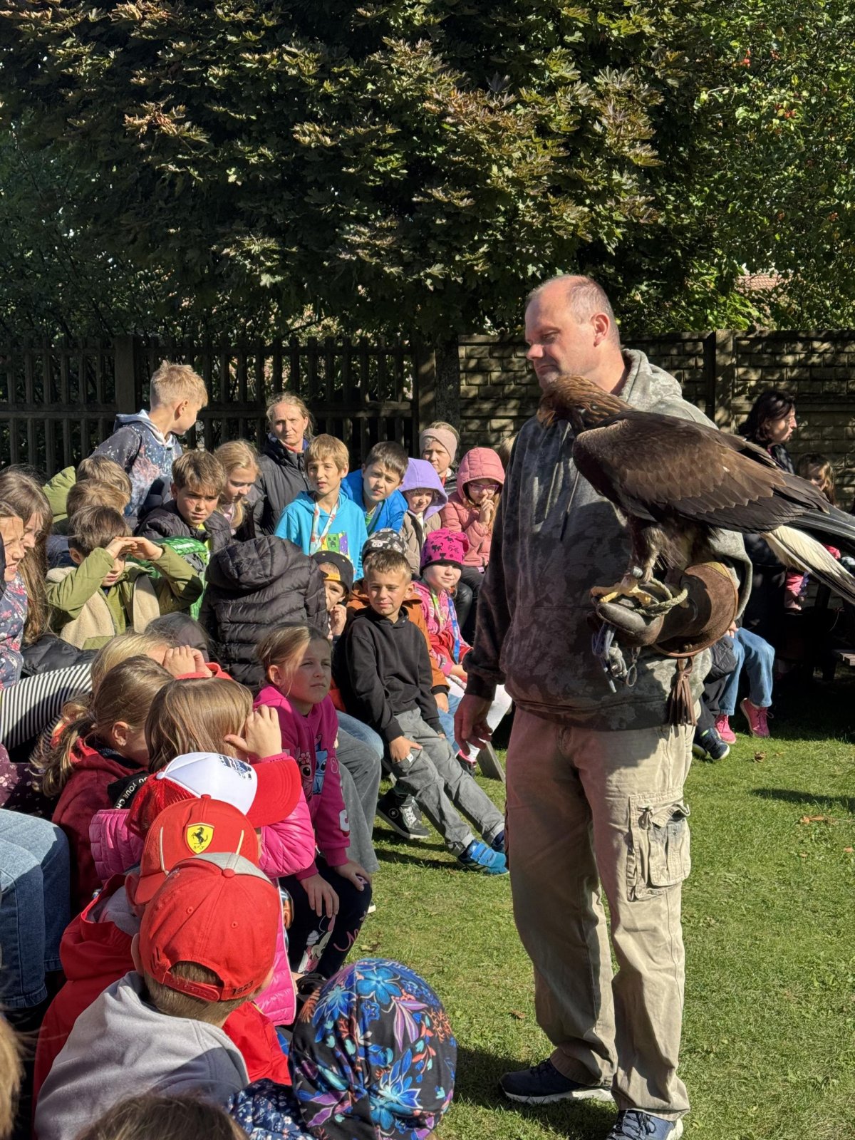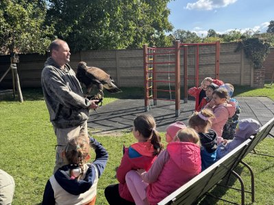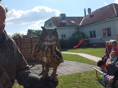 Beseda byla nejen poučná, ale i velmi poutavá. Děti se dozvěděly, jak dravci a sovy žijí, čím se živí, jak se orientují ve tmě a proč jsou tak důležité pro naši přírodu. Petra s Radkem přivezli i několik svých opeřených svěřenců včetně orlího samečka,které jsme si mohly prohlédnout zblízka. Velkým zážitkem byla ukázka sovích vajíček, která dětem přiblížila, jak se sovy vyvíjejí od vajíčka až po dospělého jedince. Zaujala je také prezentace sovích hlasů, díky které si mohly poslechnout, jak se jednotlivé druhy sov dorozumívají. Děti byly nadšené a pozorně naslouchaly každému slovu. Celé odpoledne se neslo v duchu respektu k přírodě, zvídavosti a radosti z objevování.