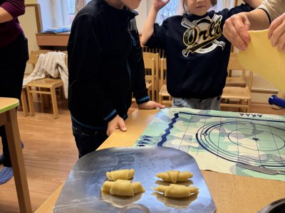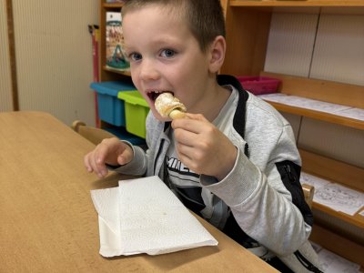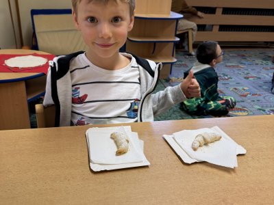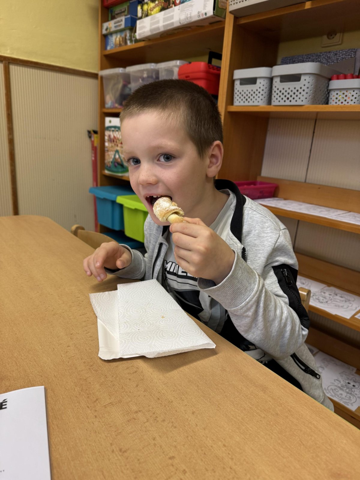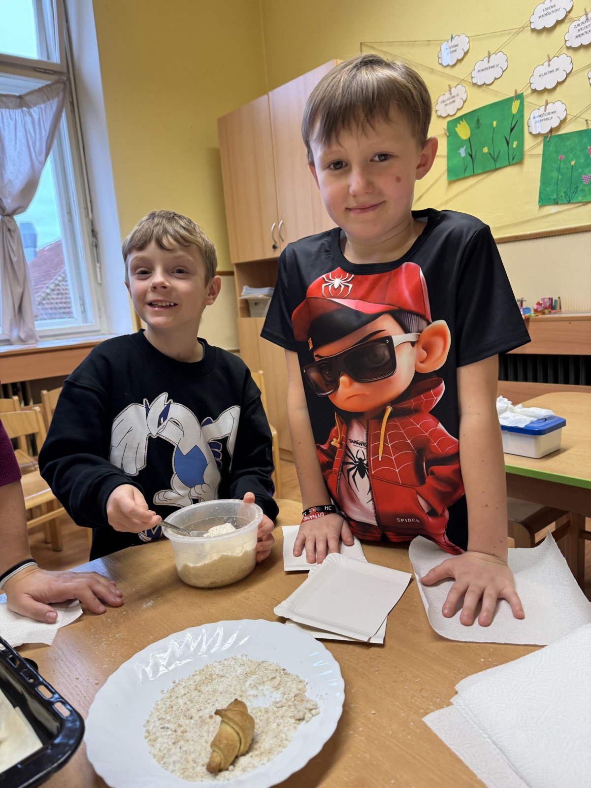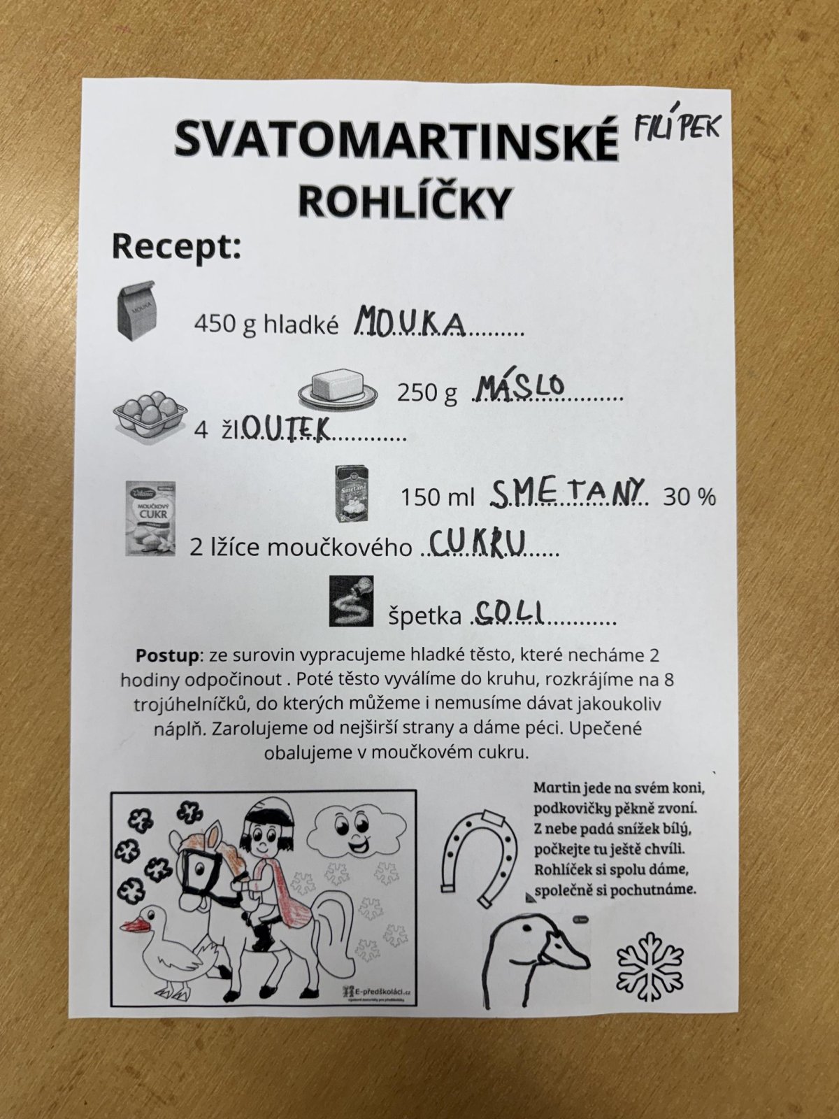 Ve školní družině jsme si tento týden připomněli svátek svatého Martina, který podle tradice přijíždí na bílém koni a přináší s sebou první sníh. A protože k tomuto dni neodmyslitelně patří svatomartinské rohlíčky, rozhodli jsme se je společně upéct.