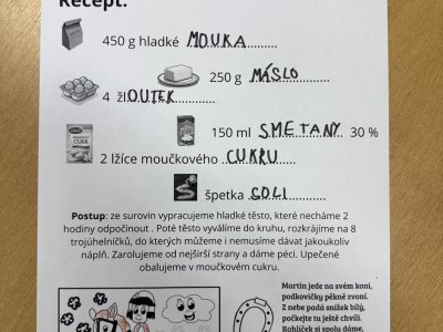 Když se družinou rozvoněla vůně čerstvě upečeného pečiva, nastal čas si recept zapsat a uložit do deníčků, které si děti ve družině tvoří.