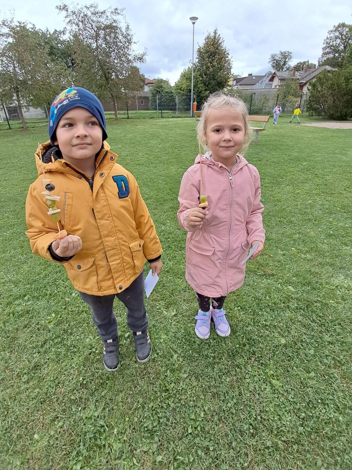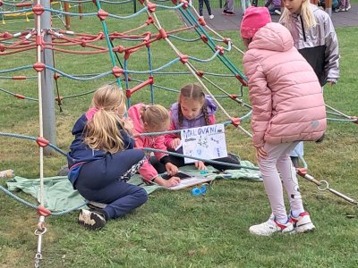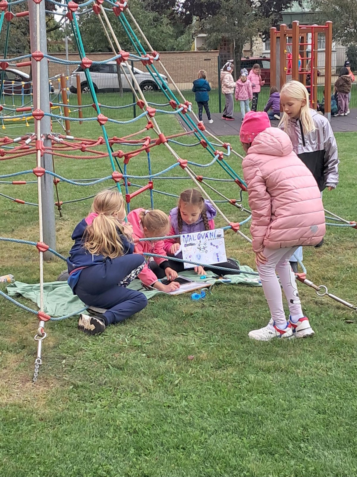 První říjnový den jsme ve družině využili k projektovému odpoledni pro 4 oddělení ve družině umístěné ve škole. Děti ze 3. a 4. tříd se připravovaly celý týden na své stanoviště. Tvořily plakátky a chystaly soutěže. Prvňácci a druháčci se na to vrhli hned po obědě. Běhali po zahradě s předem připravenými cedulkami. Tu se zastavili u fotbalu či florbalu, jinde na ně čekala ochutnávka ovoce, tvořili si špízy z ovoce, stavěli stavby z písku, nechali se namalovat či učesat... . Každý byl na konci po zásluze odměněn..... Děti s radostí očekávají další společnou akci....