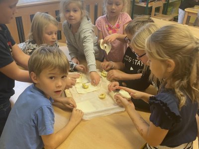 Úterní odpoledne v naší školní družině provoněla sladká vůně skořice a jablek! Děti se proměnily v malé pekaře a pustily se do tvoření jablkových košíčků z listového těsta. Byla to nejen velká zábava, ale také skvělá příležitost procvičit si jemnou motoriku a dovednosti v kuchařském umění.
