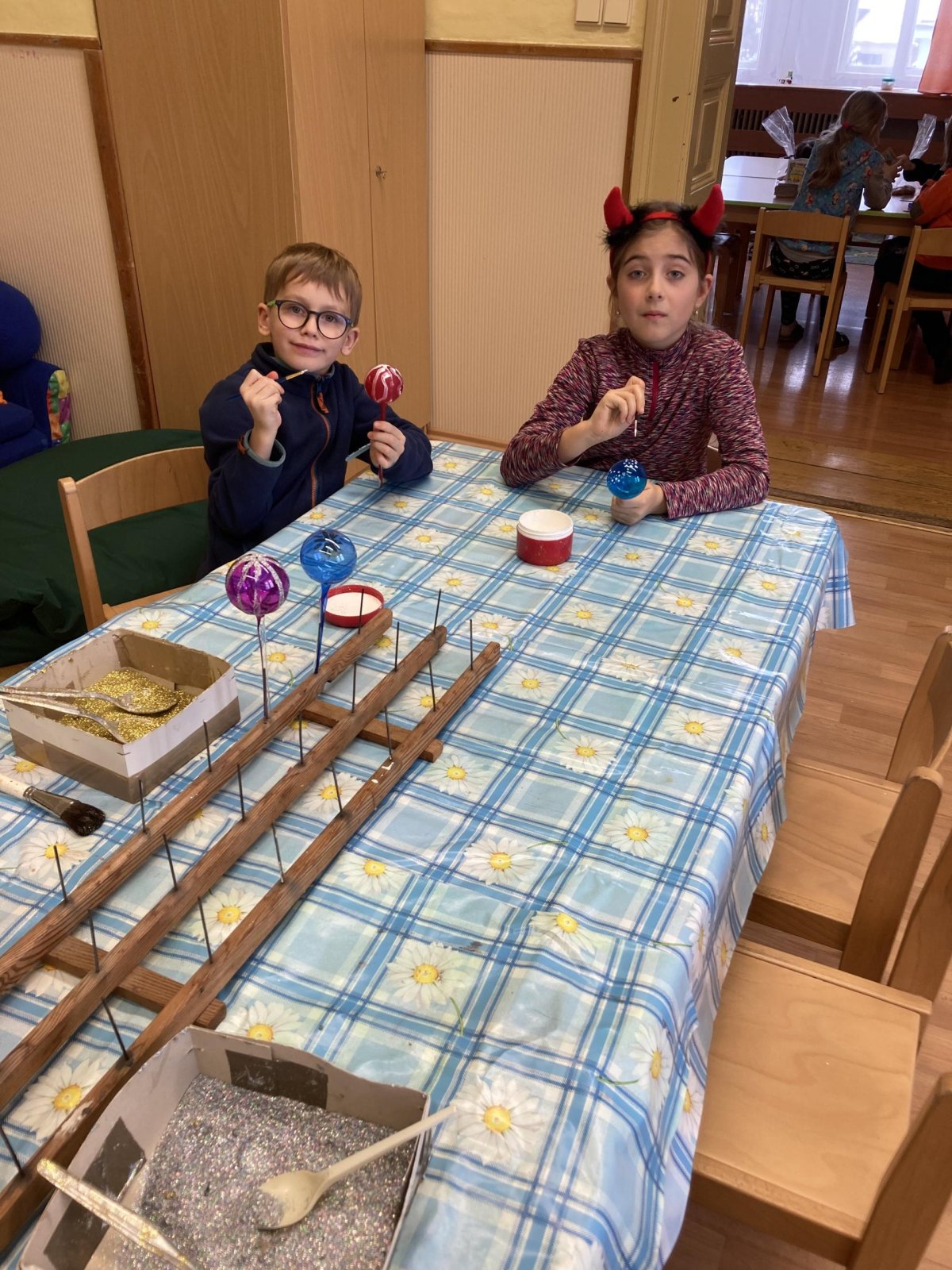 Dozvěděli se, jak se vyrábí a zdobí vánoční ozdoby a zjistili, jak je tato práce náročná. Sami si vyzkoušeli, že není jednoduché mít jednu ozdobu jako druhou, ale paní mistrová jejich práci pochválila.V informačním centru si prohlédli výstavu šestnácti třebechovických betlémů a v Regionálním muzeu navštívili výstavu s názvem "Sladké mámení". Jak název napovídá, hlavní ingrediencí byl cukr. Už vědí, jak cukr vzniká, z čeho se vyrábí, v jaké podobě se prodával dříve i dnes a kde všude se cukr využívá. Součástí výstavy byla i ukázka receptů od místních cukrářů a pekařů. Určitě nějaký recept vyzkoušíme.