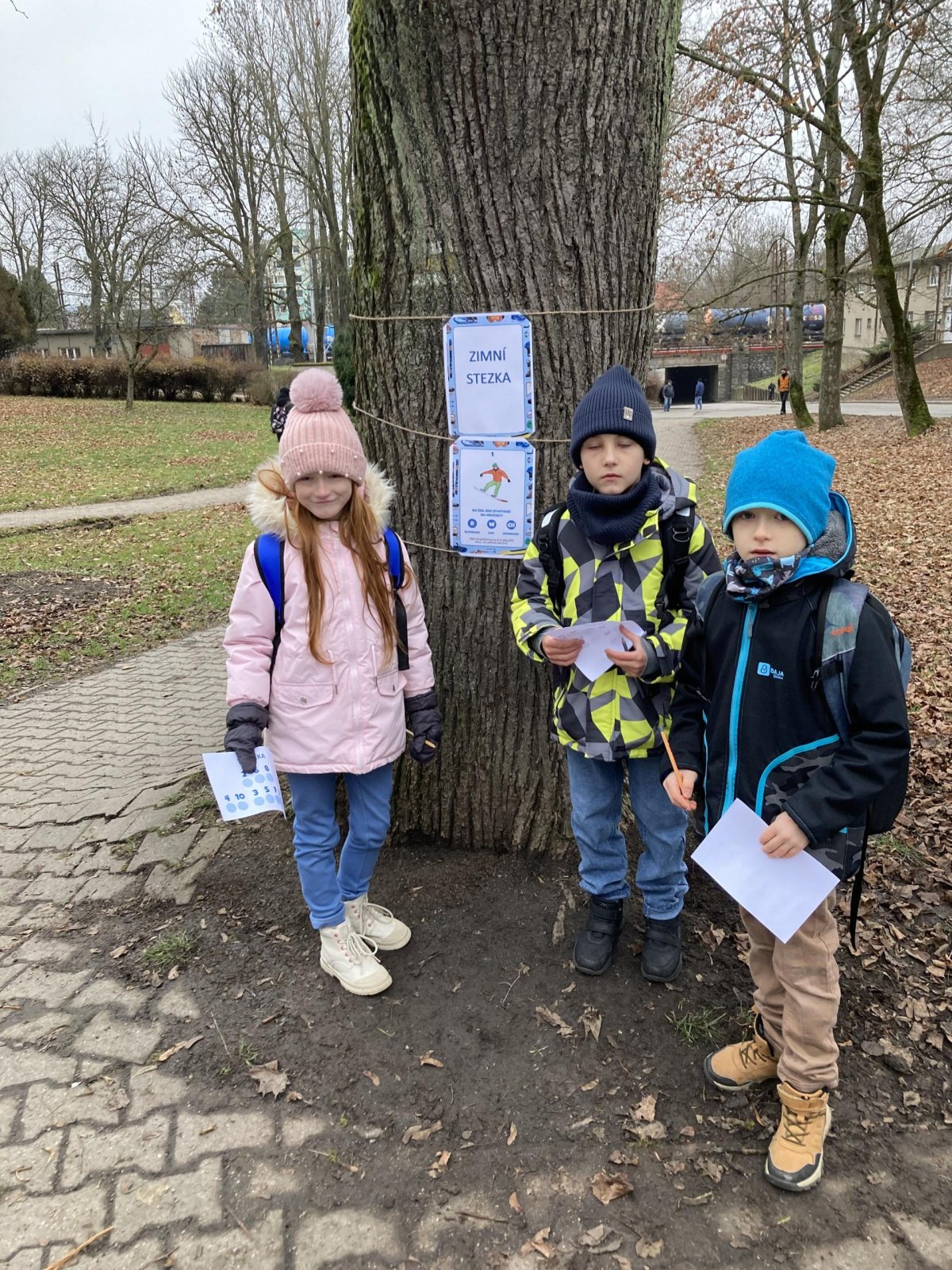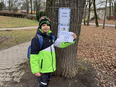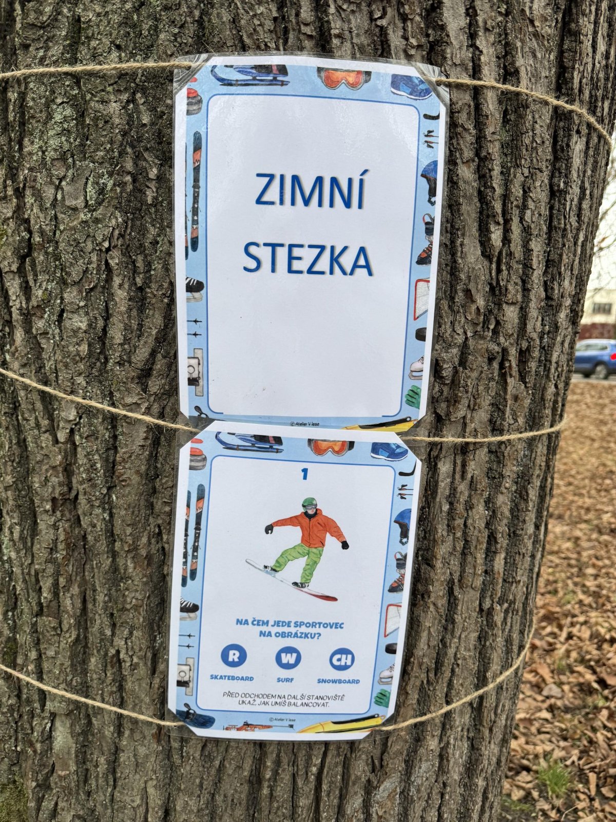 Druhou část odpoledne jsme strávili v místním parku Javorka, kde na žáky čekala orientační soutěž na téma zimní sporty.