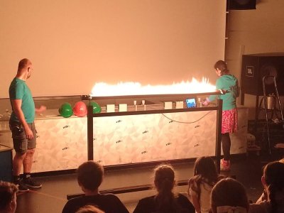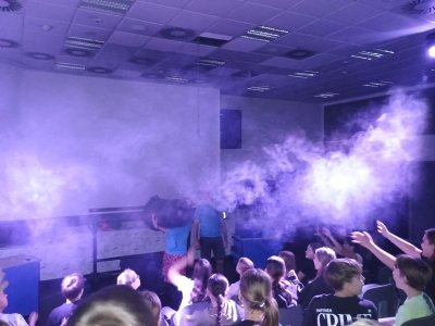Také jsme viděli Science show, která byla plná zábavných pokusů a přiblížila nám svět fyziky a chemie v běžném životě.