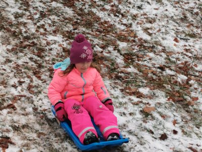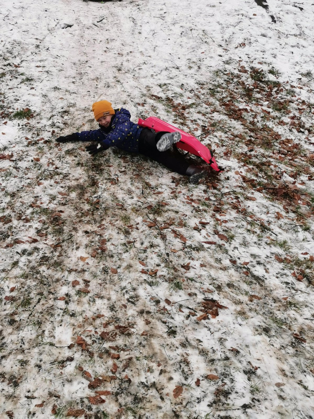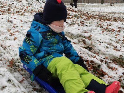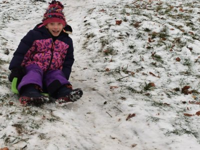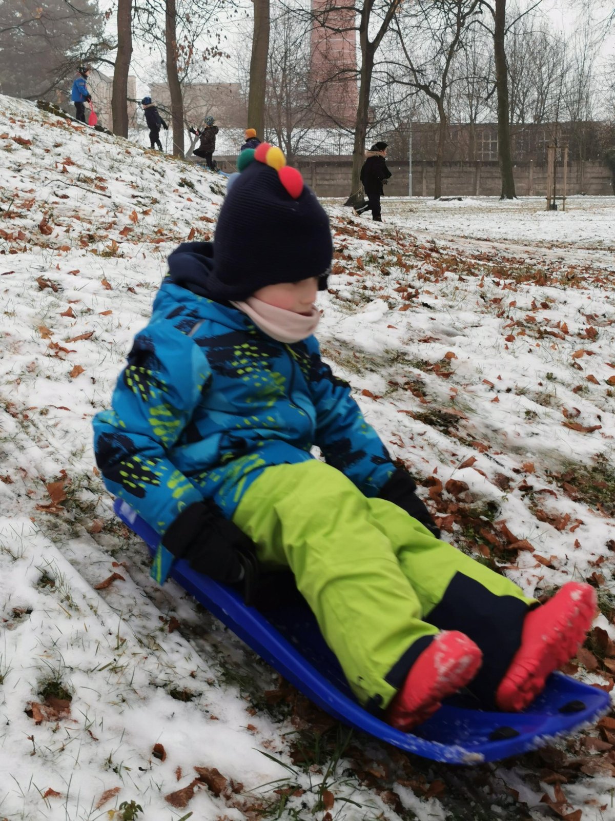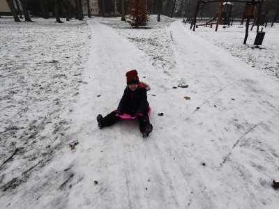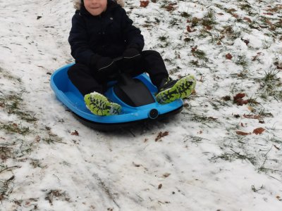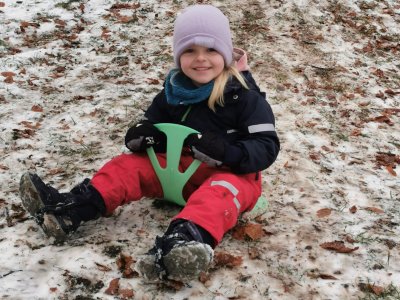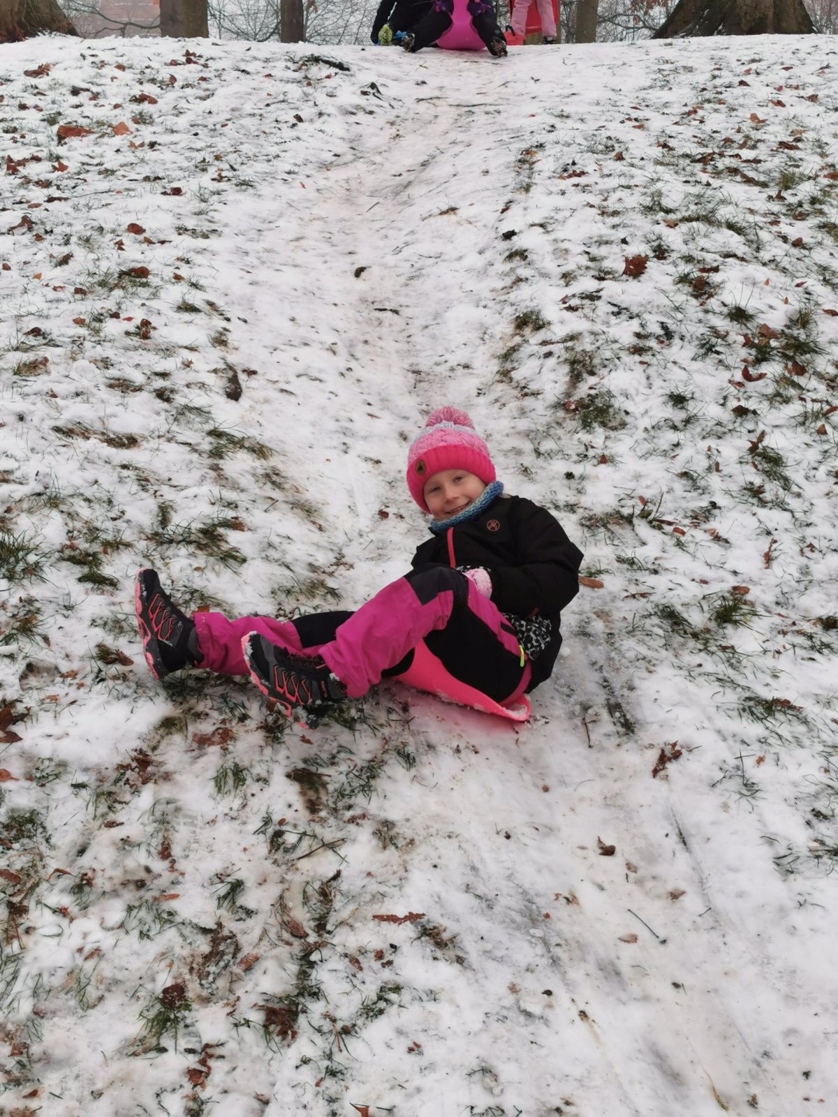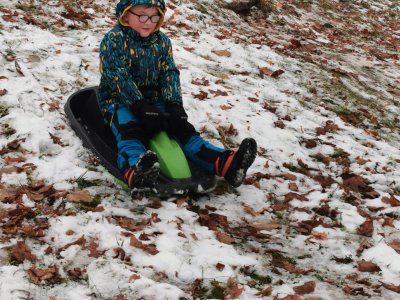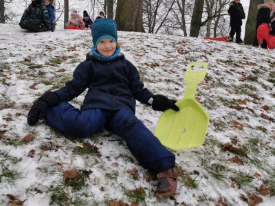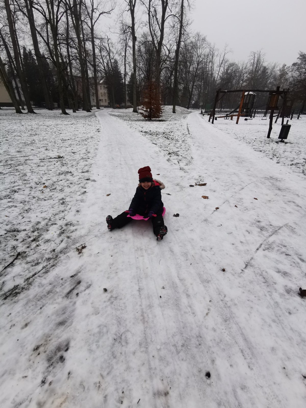 Po dvaceti minutách jsme opravdu dorazili na Kopečky. A i když sněhu bylo jen tak akorát, aby se to dalo nazvat zimou, dětská radost nezná fyzikální zákony. Jezdilo se, padalo, smálo se, boby létaly všemi směry a bylo to prostě prima.