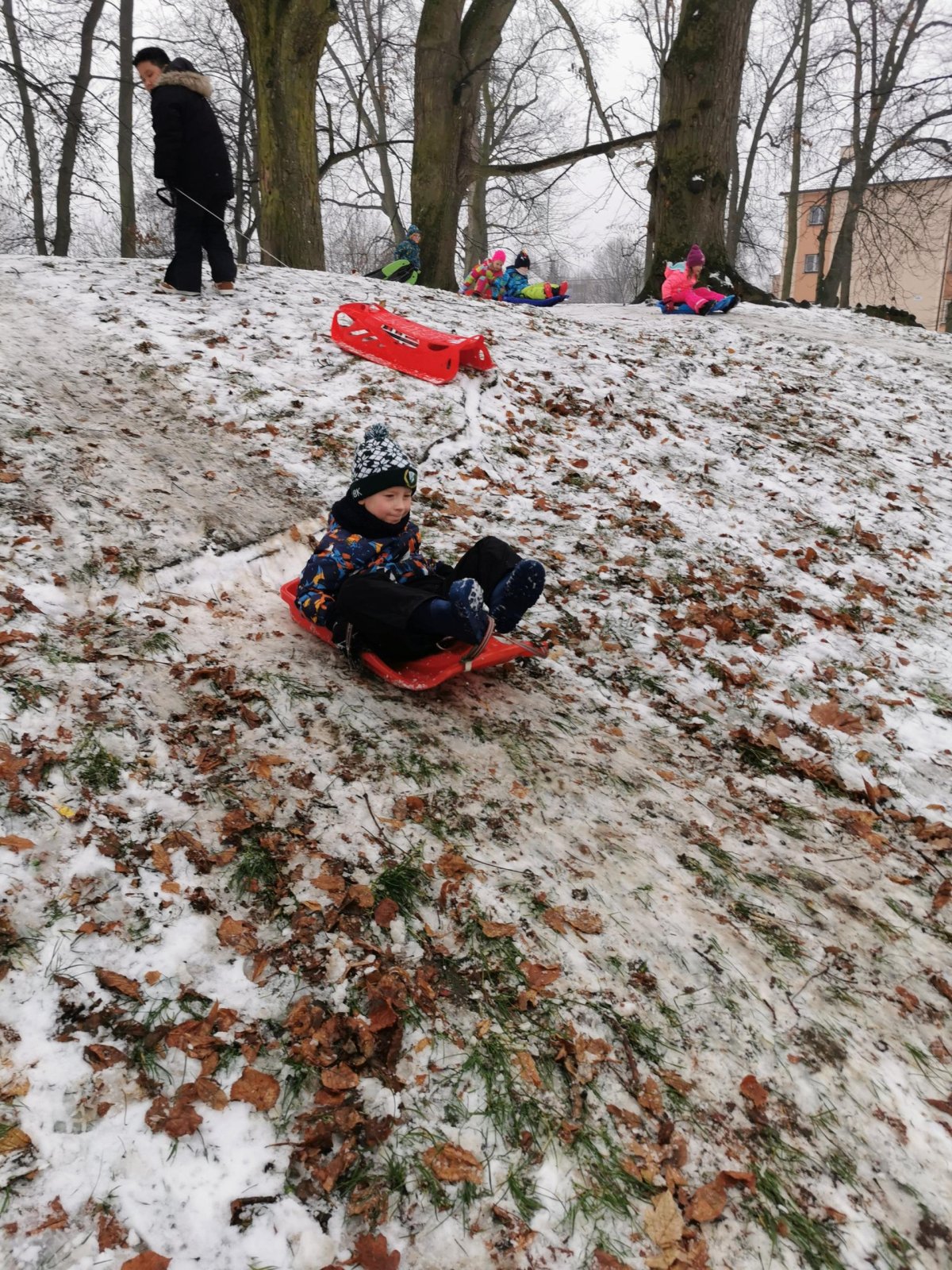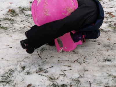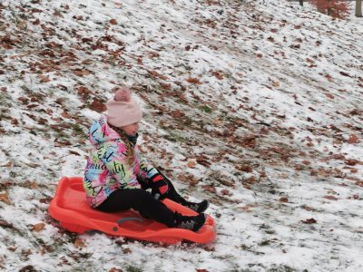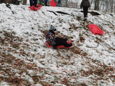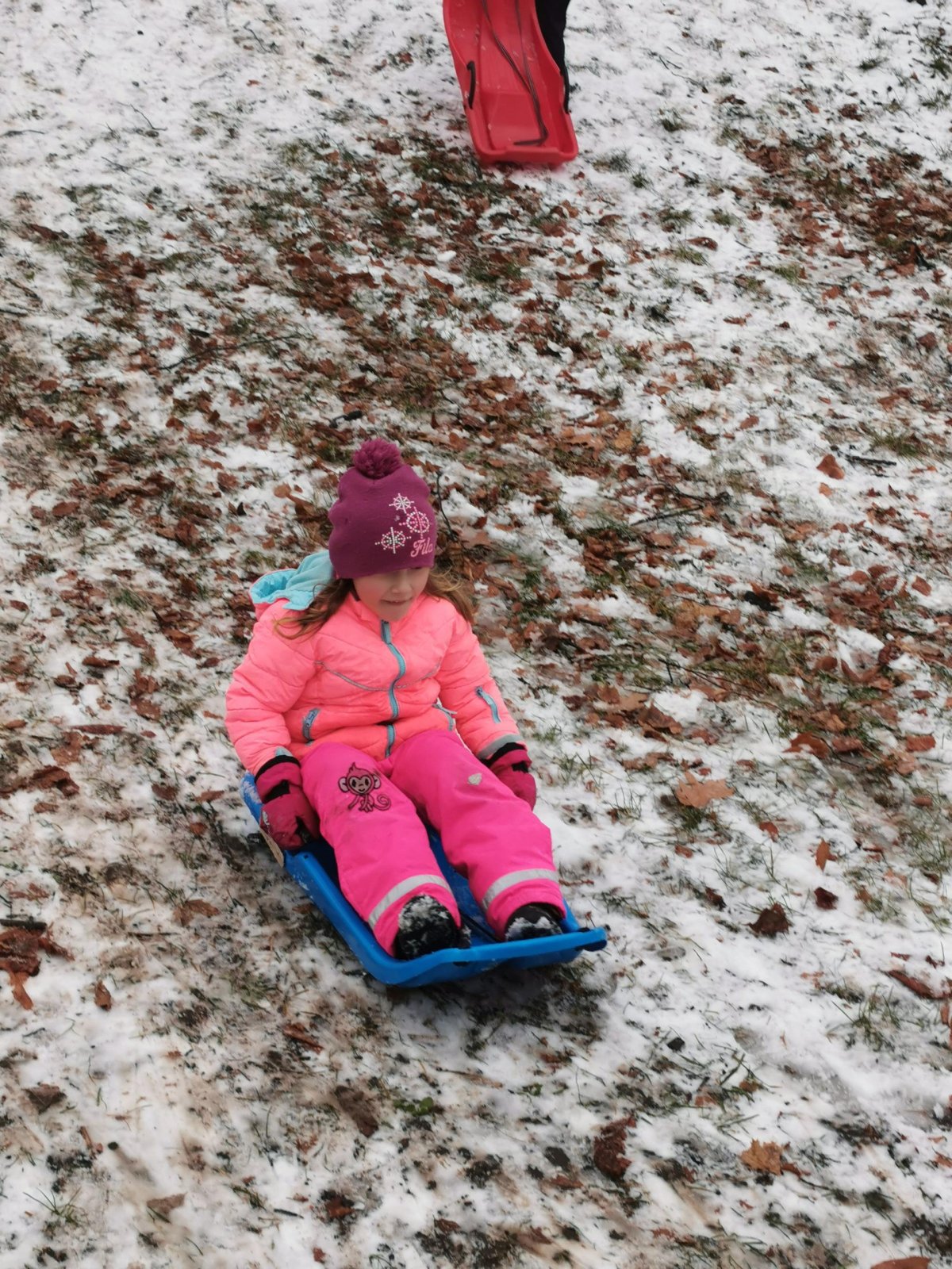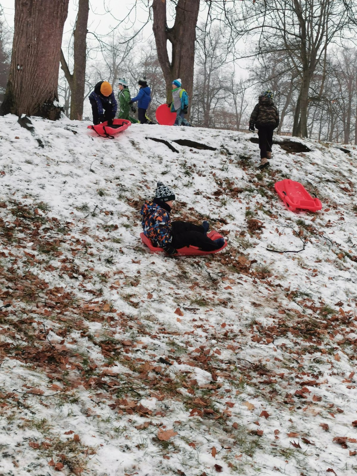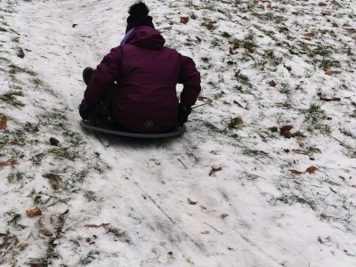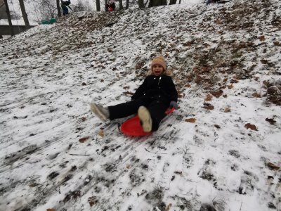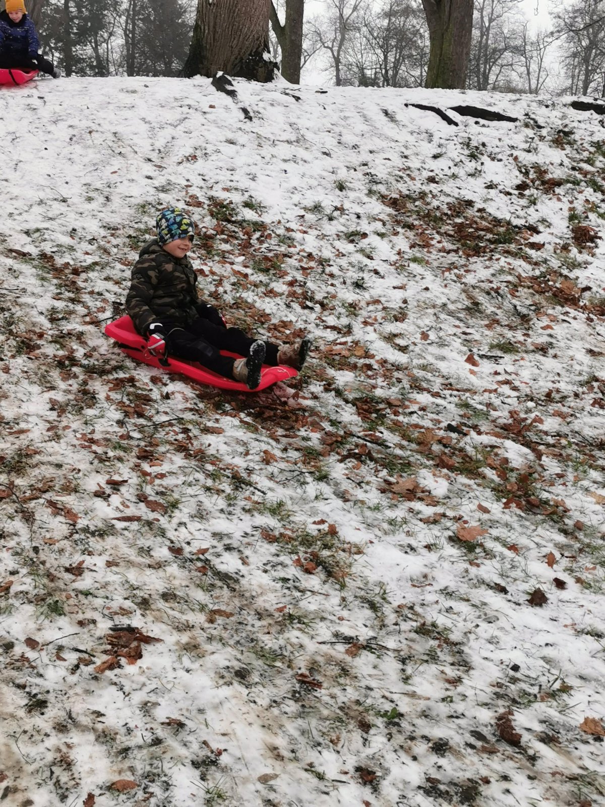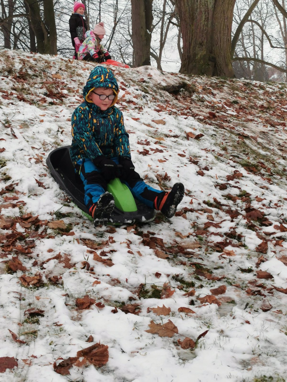 Po dvaceti minutách jsme opravdu dorazili na Kopečky. A i když sněhu bylo jen tak akorát, aby se to dalo nazvat zimou, dětská radost nezná fyzikální zákony. Jezdilo se, padalo, smálo se, boby létaly všemi směry a bylo to prostě prima.