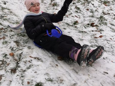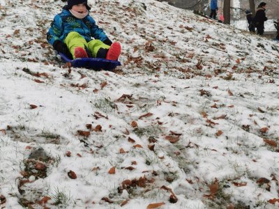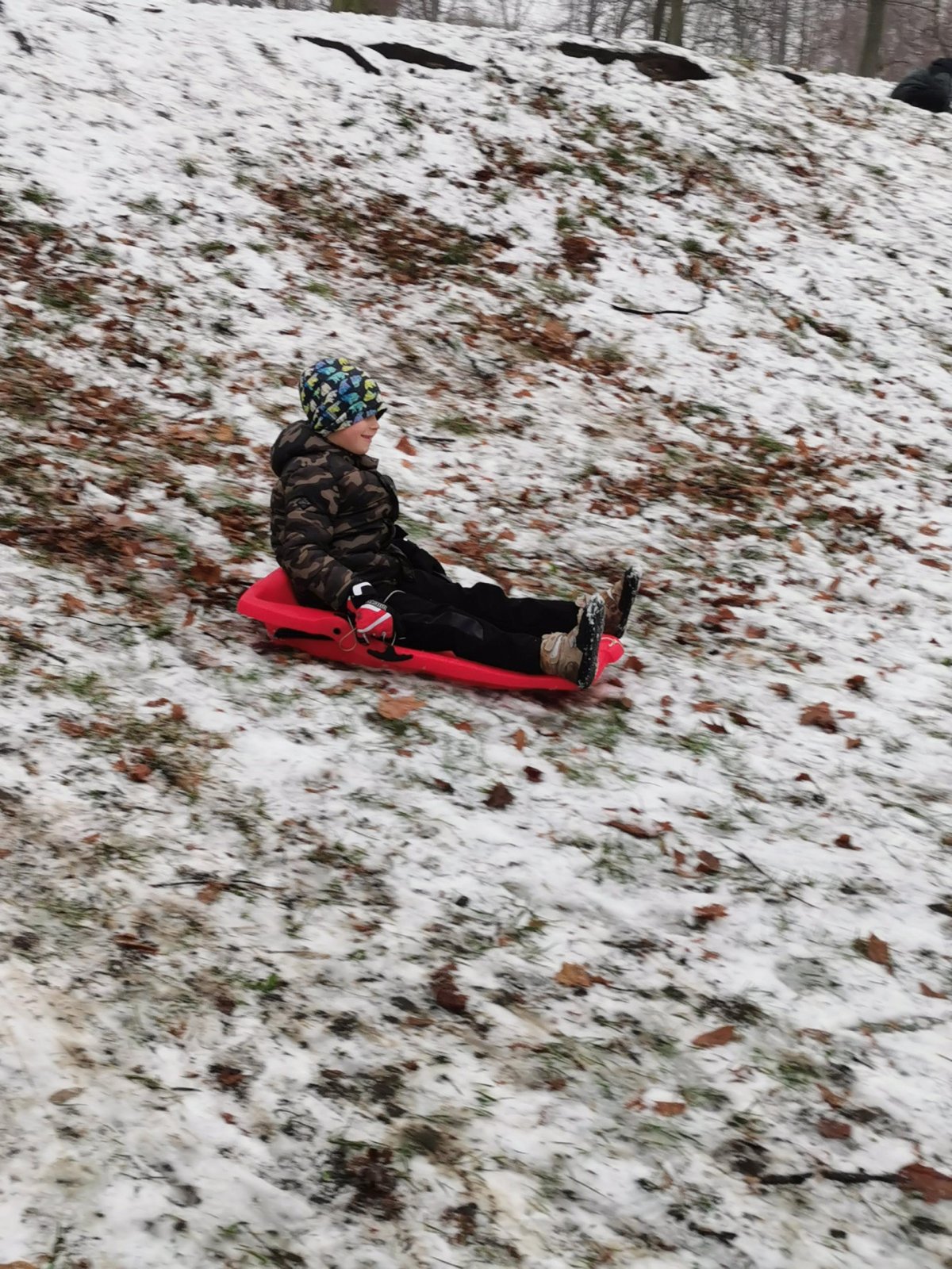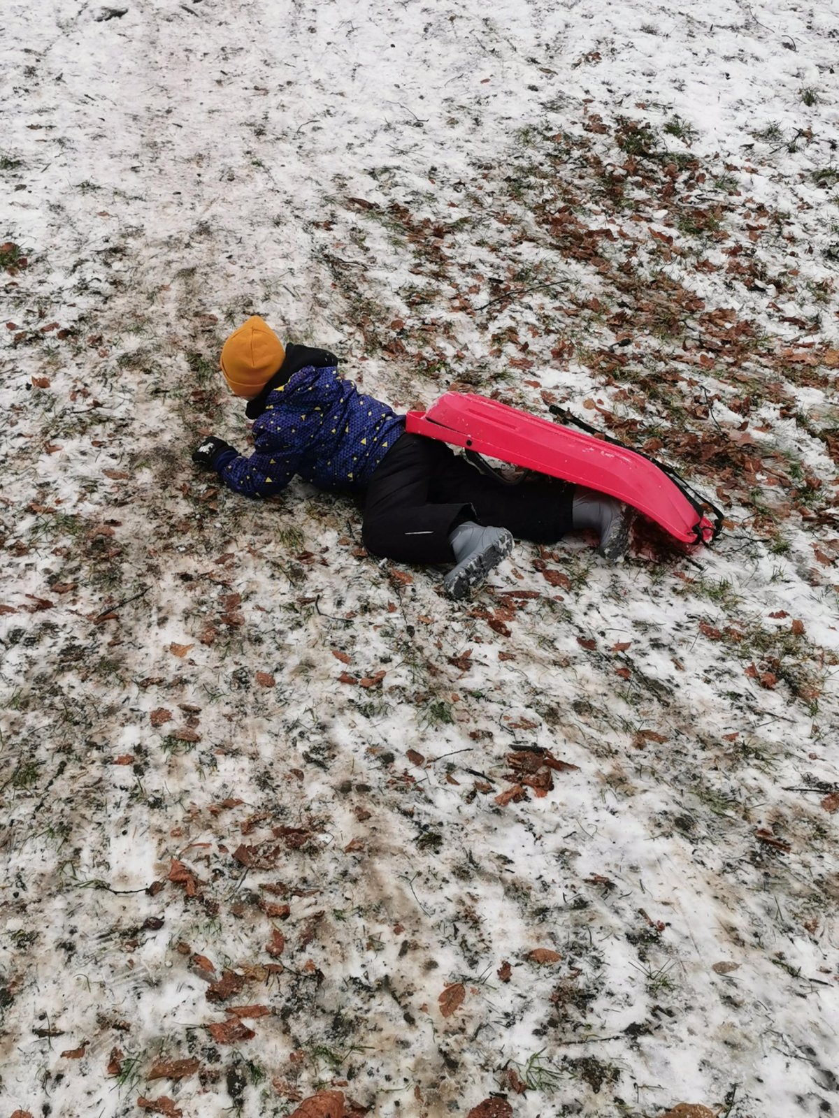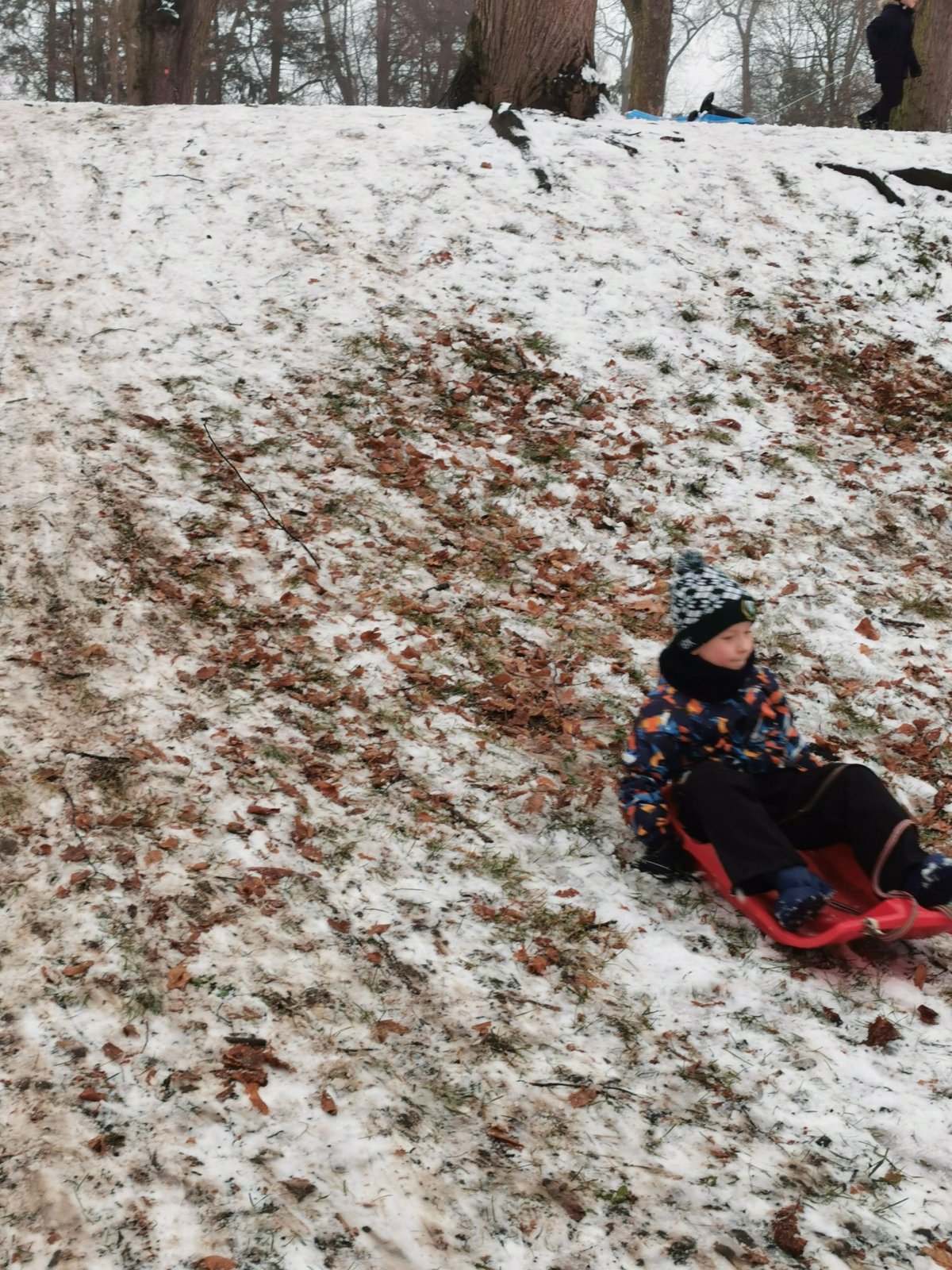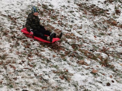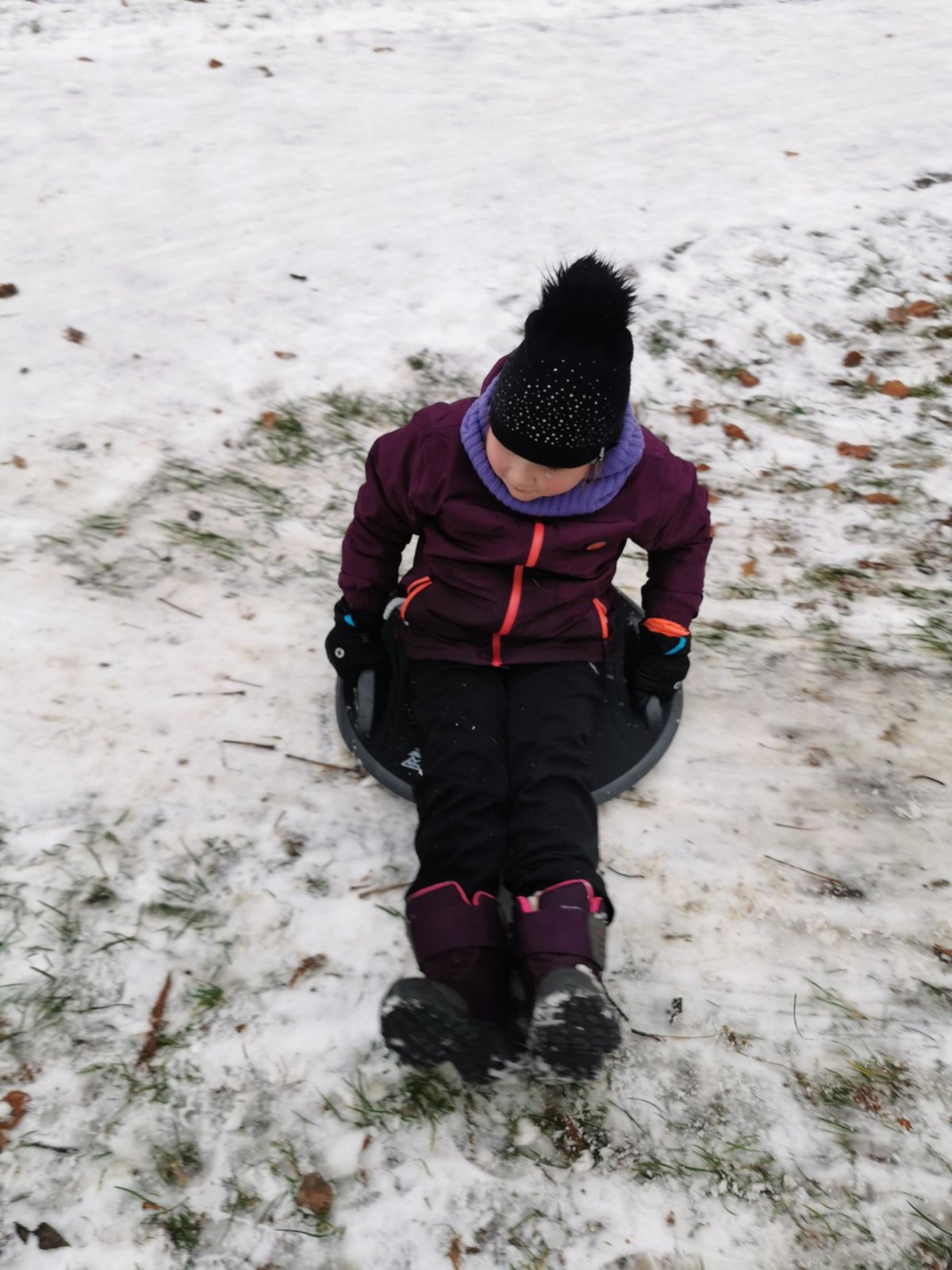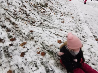 Po dvaceti minutách jsme opravdu dorazili na Kopečky. A i když sněhu bylo jen tak akorát, aby se to dalo nazvat zimou, dětská radost nezná fyzikální zákony. Jezdilo se, padalo, smálo se, boby létaly všemi směry a bylo to prostě prima.