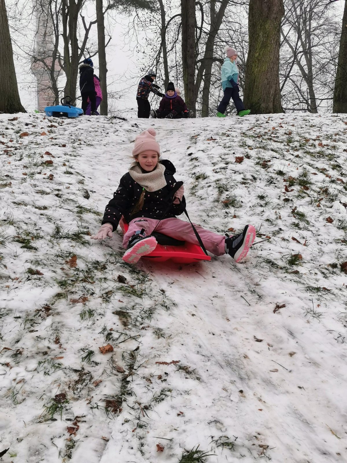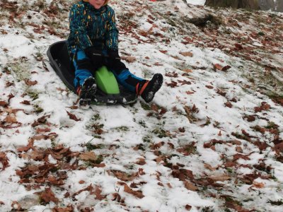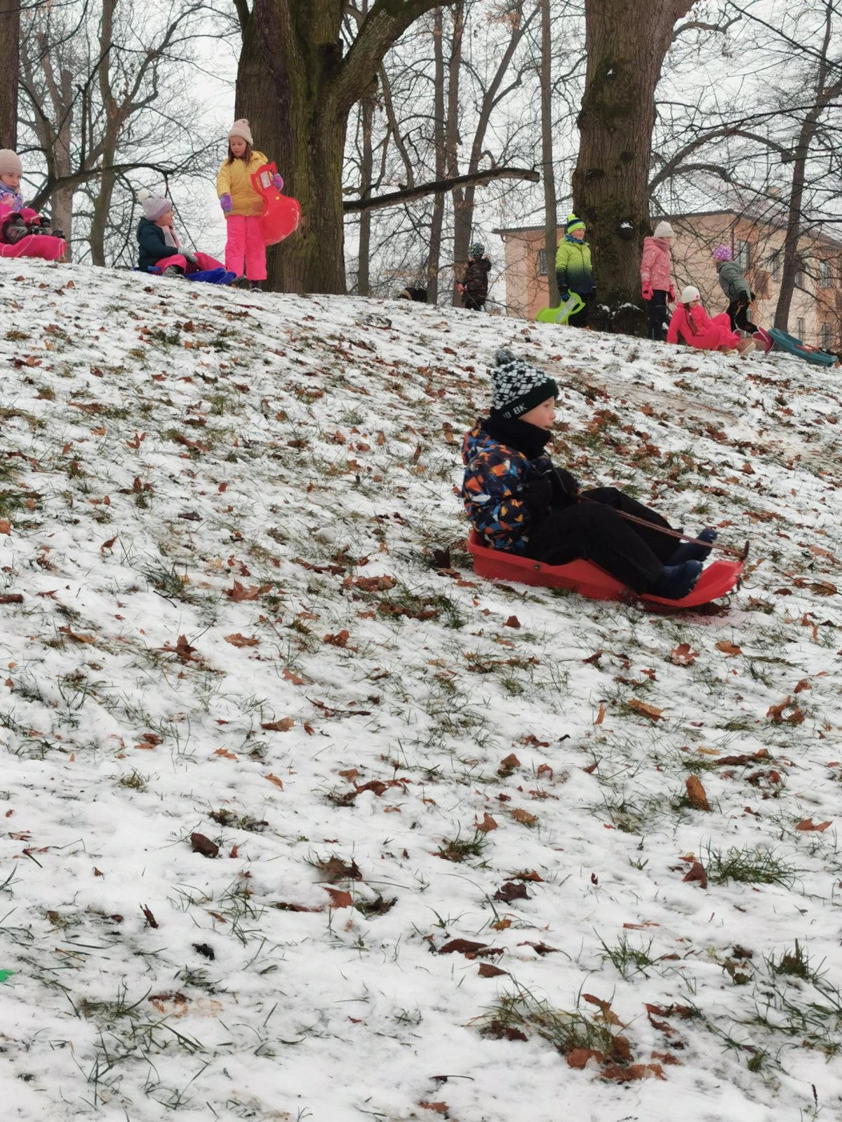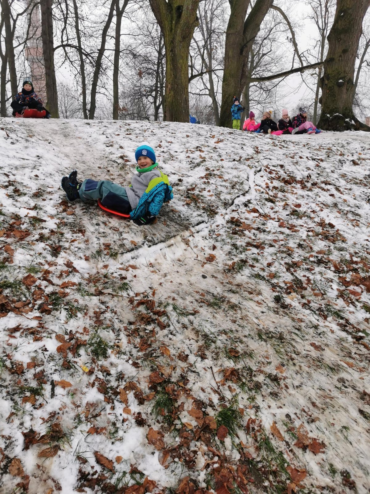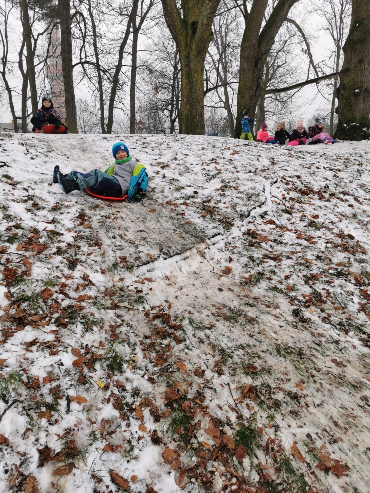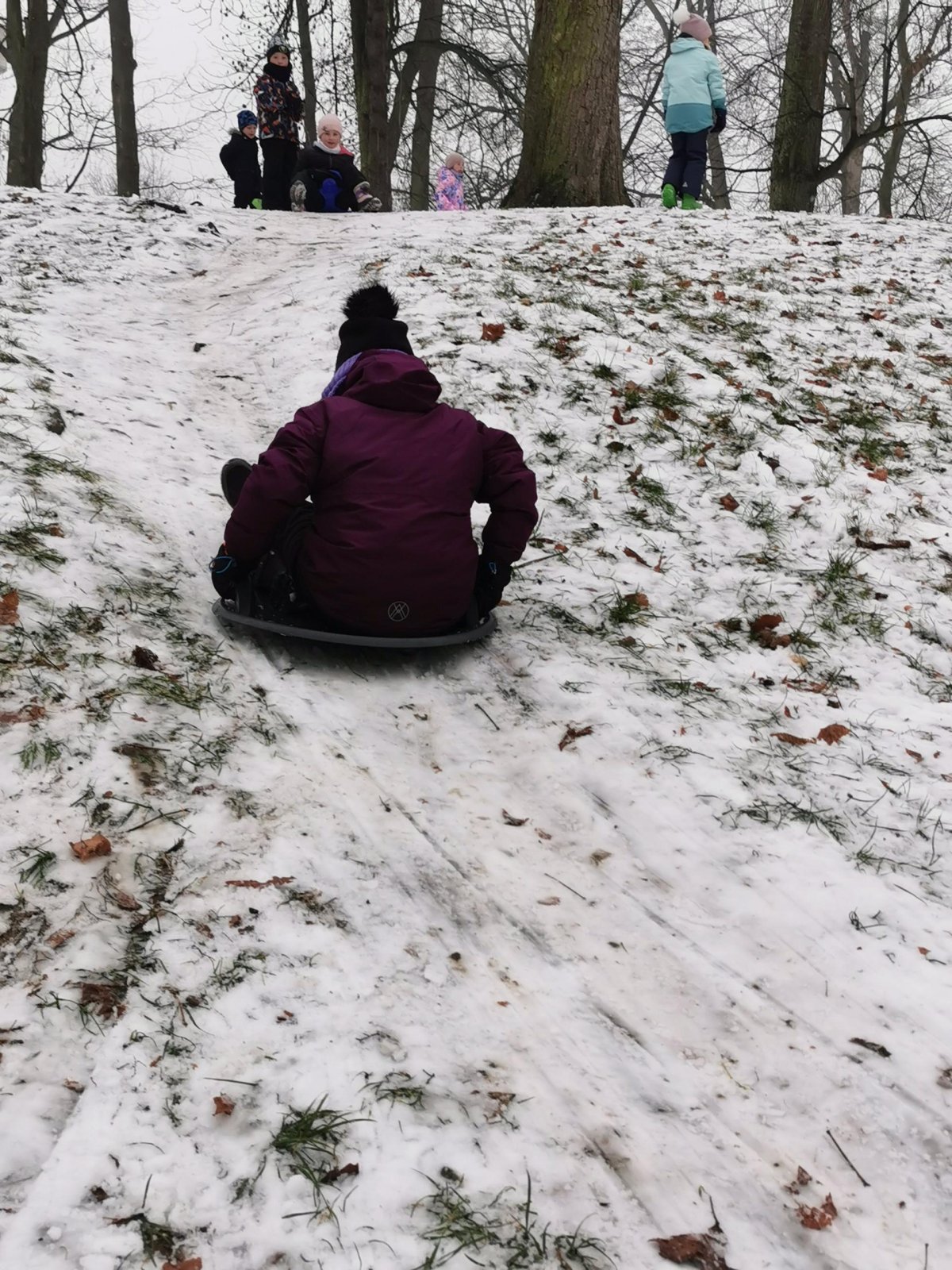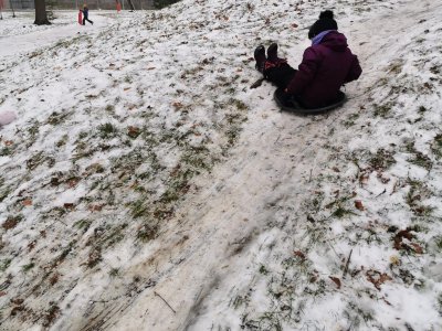 Po dvaceti minutách jsme opravdu dorazili na Kopečky. A i když sněhu bylo jen tak akorát, aby se to dalo nazvat zimou, dětská radost nezná fyzikální zákony. Jezdilo se, padalo, smálo se, boby létaly všemi směry a bylo to prostě prima.