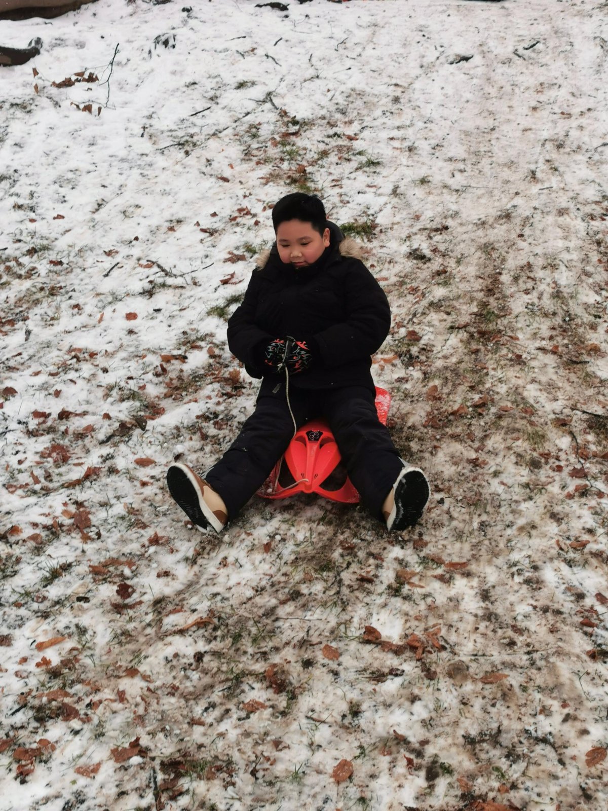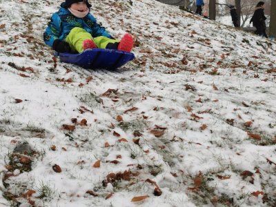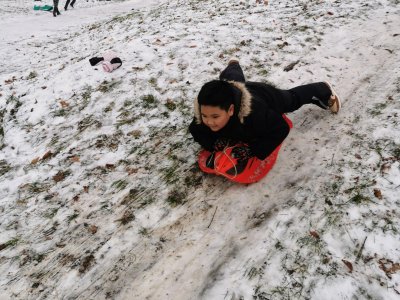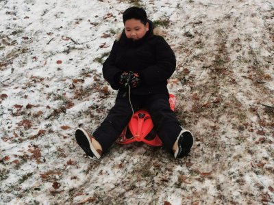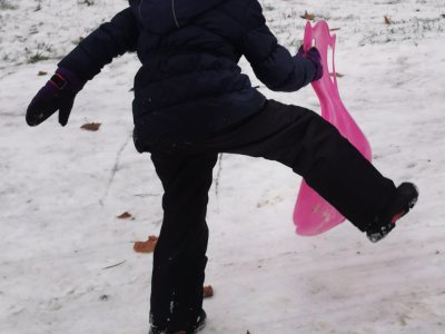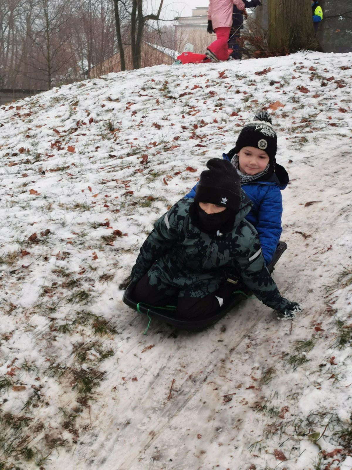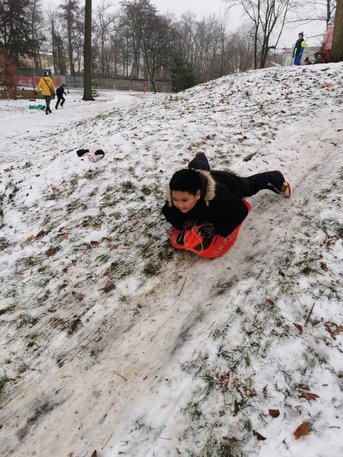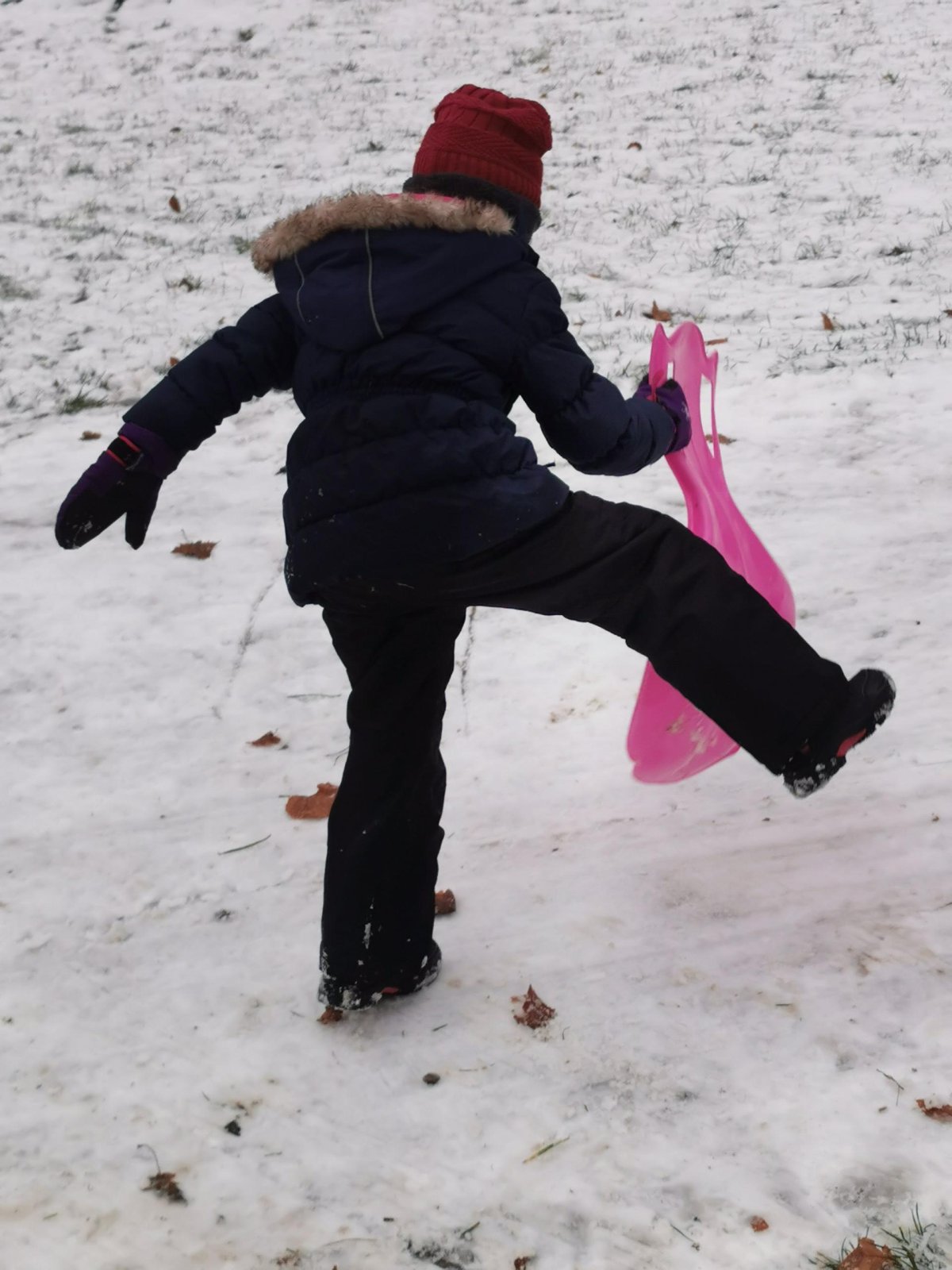 Po dvaceti minutách jsme opravdu dorazili na Kopečky. A i když sněhu bylo jen tak akorát, aby se to dalo nazvat zimou, dětská radost nezná fyzikální zákony. Jezdilo se, padalo, smálo se, boby létaly všemi směry a bylo to prostě prima.