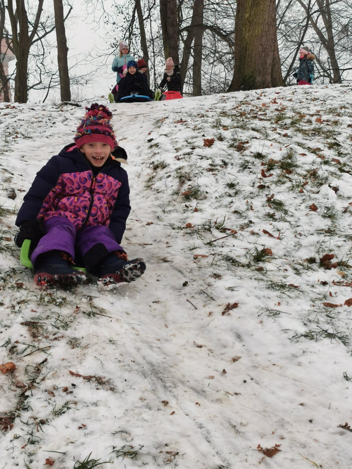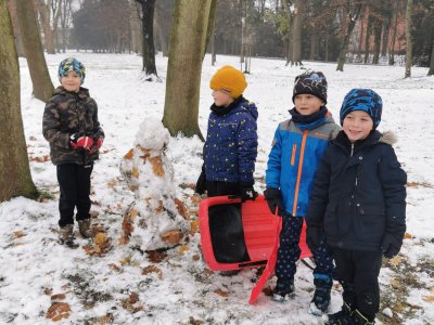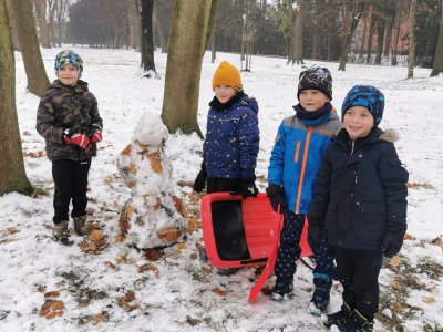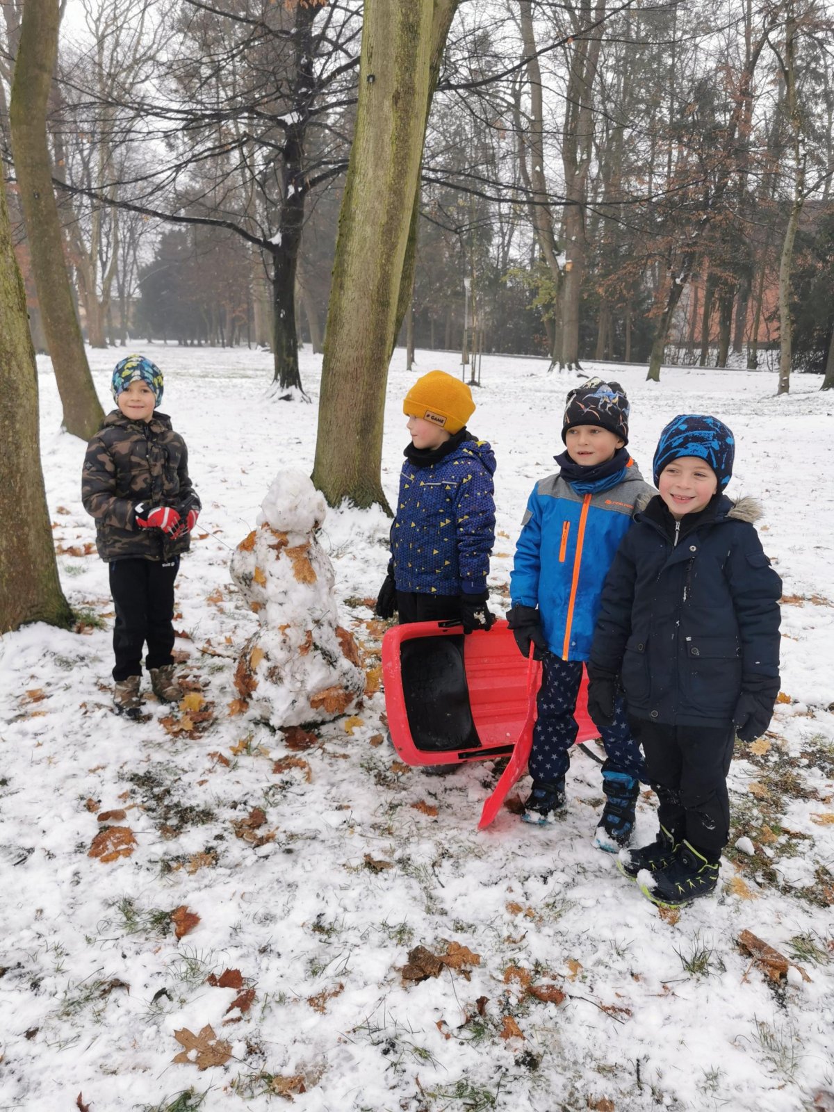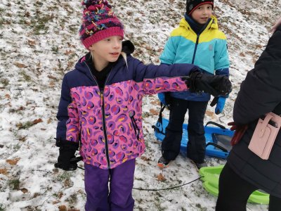 Než jsme vůbec stihli opustit budovu školy, zjistili jsme, že si čtyři děti neumí nasadit rukavice, dva šikovníci nechali ve třídě oteplovačky a všichni ostatní debatovali o tom, kdo má nejrychlejší boby. Když jsme se konečně seřadili a vyšli před školu, přišla hláška dne: