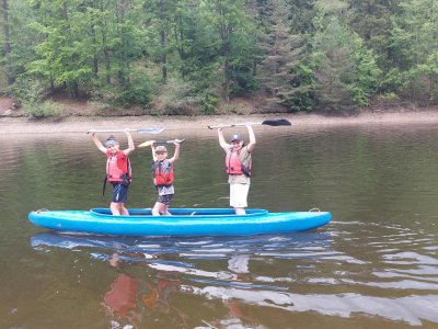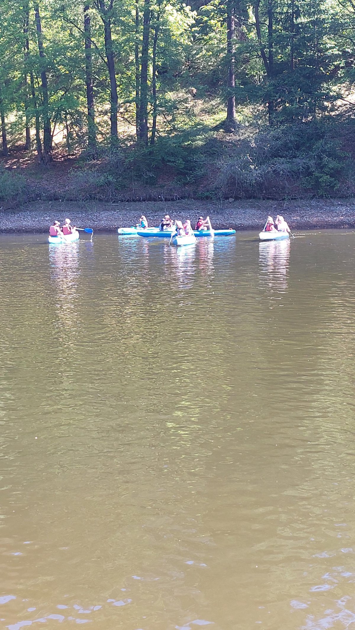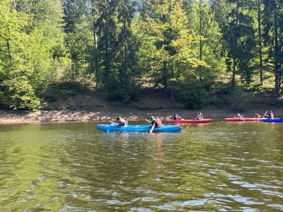 Poslední akcí výcviku byl výlet po přehradě k mostu. Cestou tam nám dul vítr do zad a všichni jeli jako střely. Ale cestou zpátky pořádně fučelo proti nám, někteří i přes usilovné pádlování často stáli na místě, někteří dokonce couvali. Bylo to velice vysilující a vyčerpávající a všem, kteří to zvládli a zdárně dojeli zpátky do naší zátoky, patří veliký potlesk.
