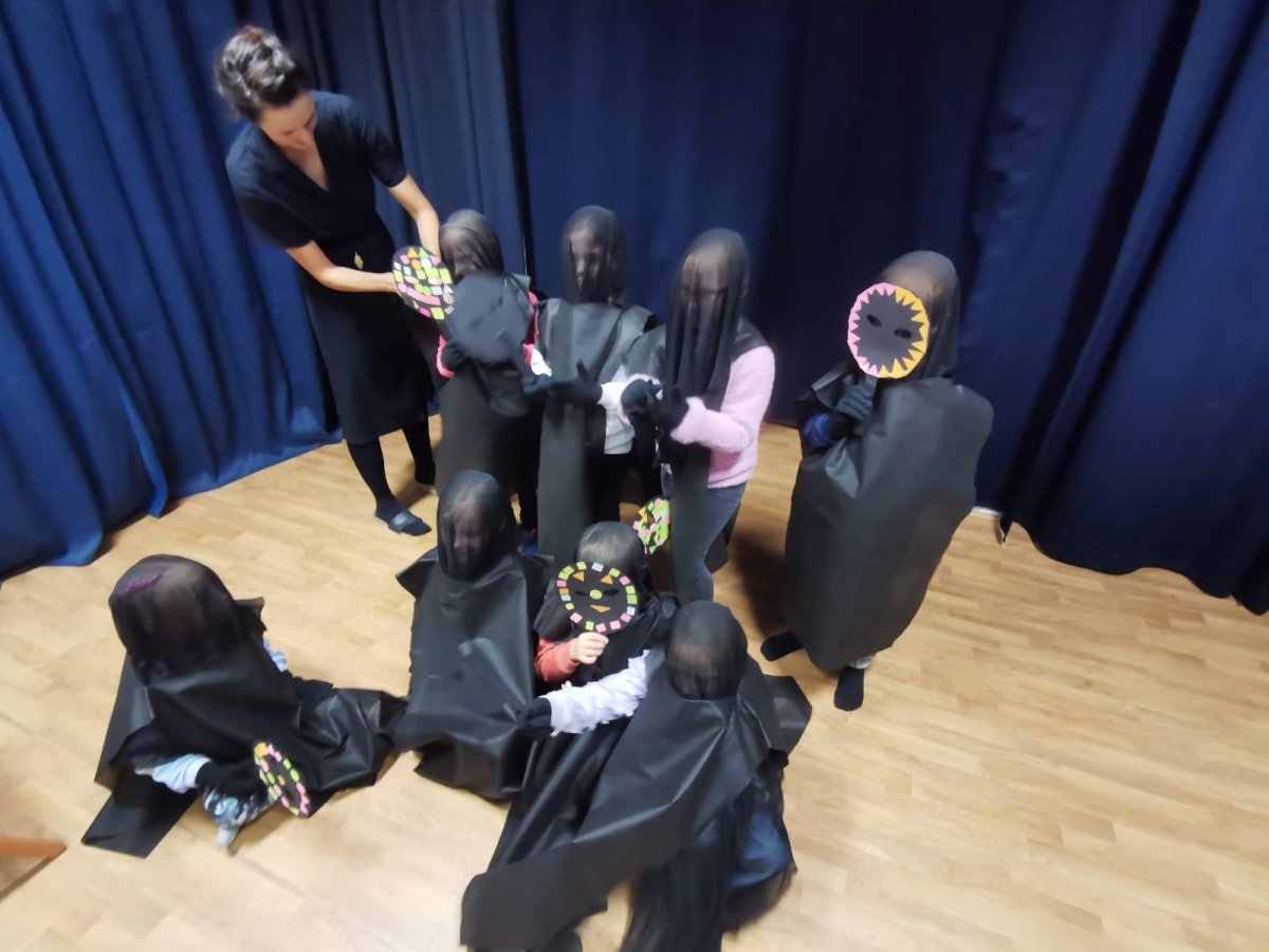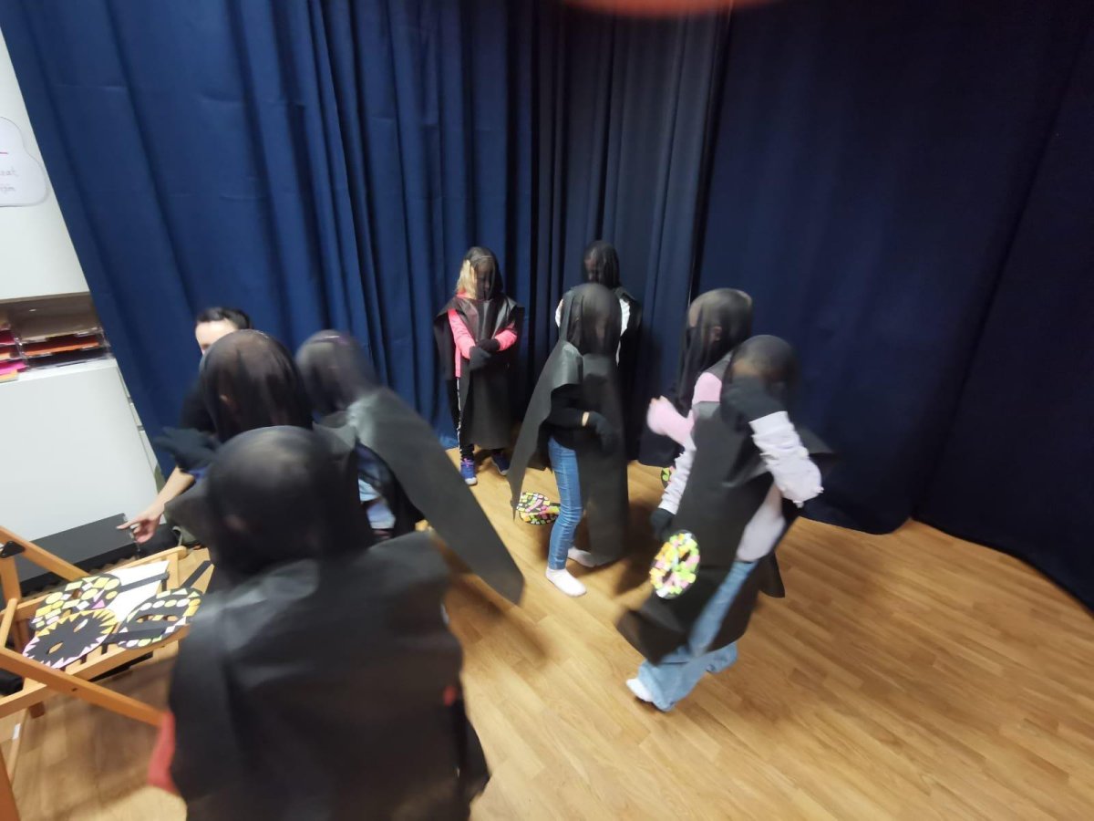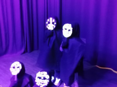 V loutkářská dílně jsme si vyrobili masky a zahráli jsme si poprvé v životě černé divadlo....