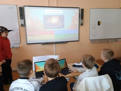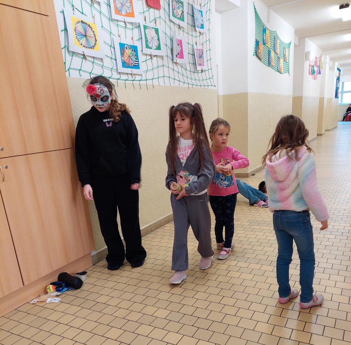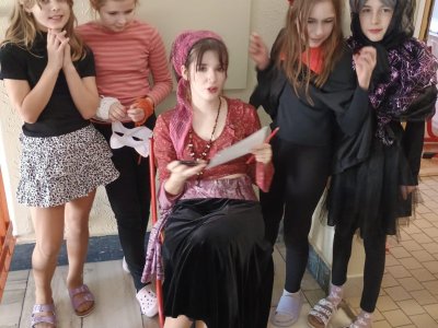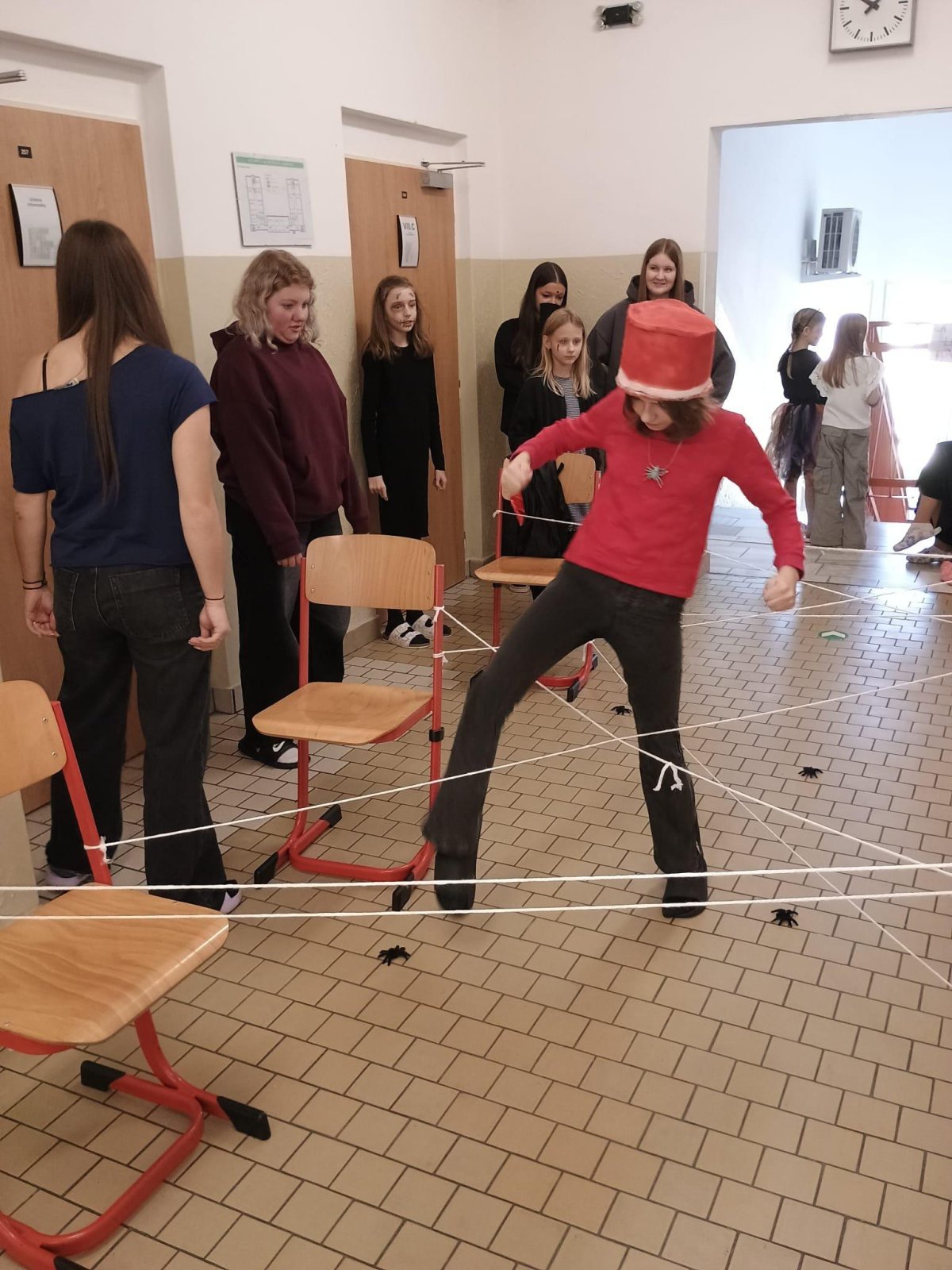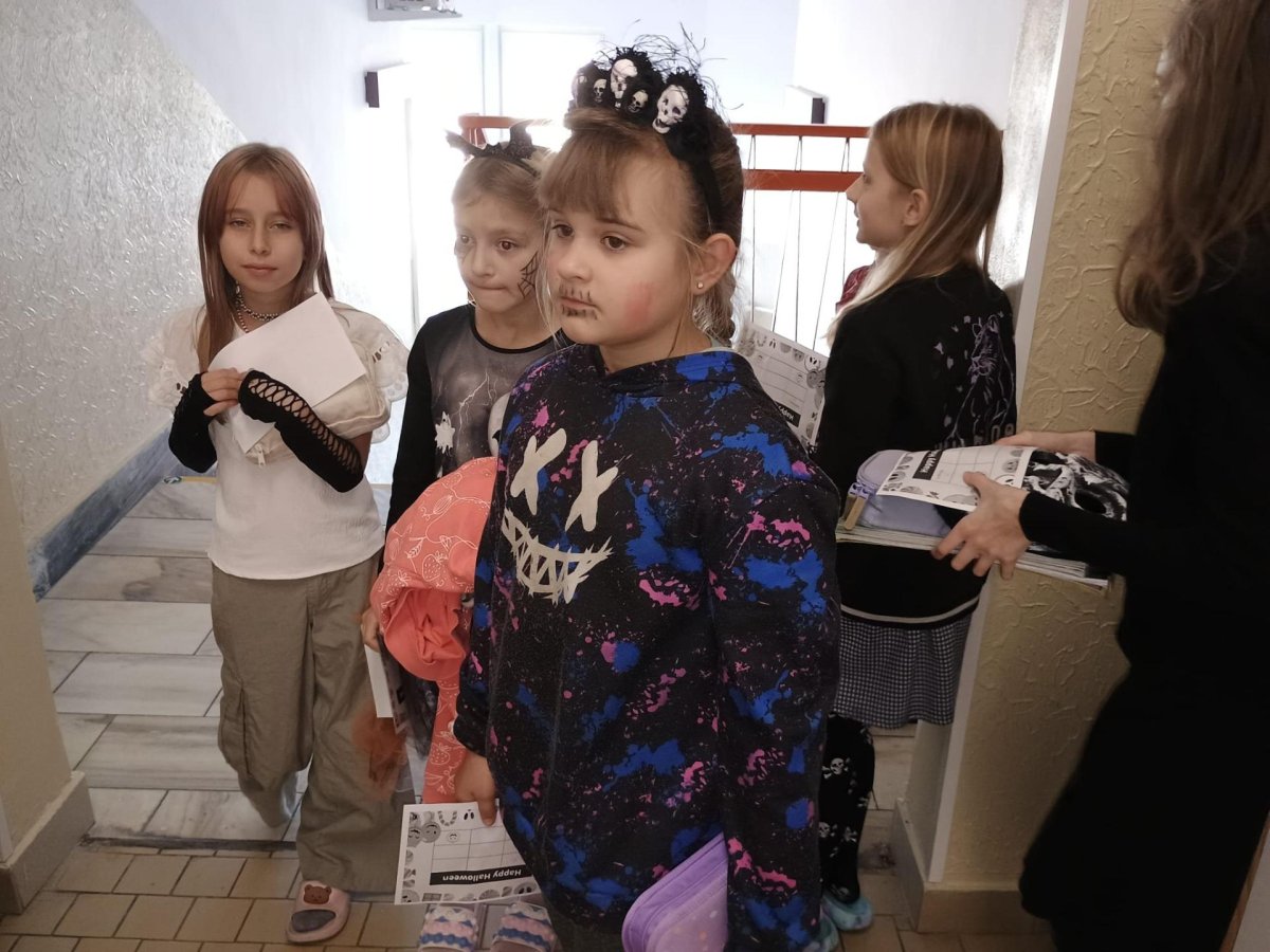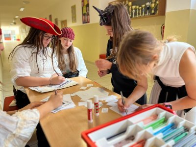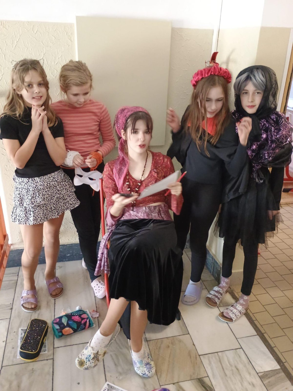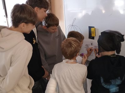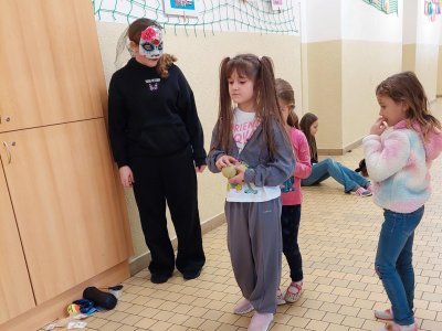 Již několik let v období svátku Halloween chystají některé třídy druhého stupně speciální hravou hodinu angličtiny pro kamarády z prvního stupně. Letos se zapojil rekordní počet tříd. Mohli si tak pohrát prvňáčci, čtvrťáci i páťáci. Zábavná pestrá stanoviště jim připravili sedmáci a deváťáci. Někteří si dokonce zavzpomínali, že před lety byli také hosty svých starších spolužáků. Happy Halloween to everyone!