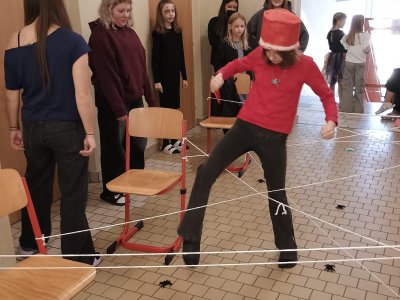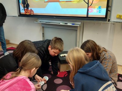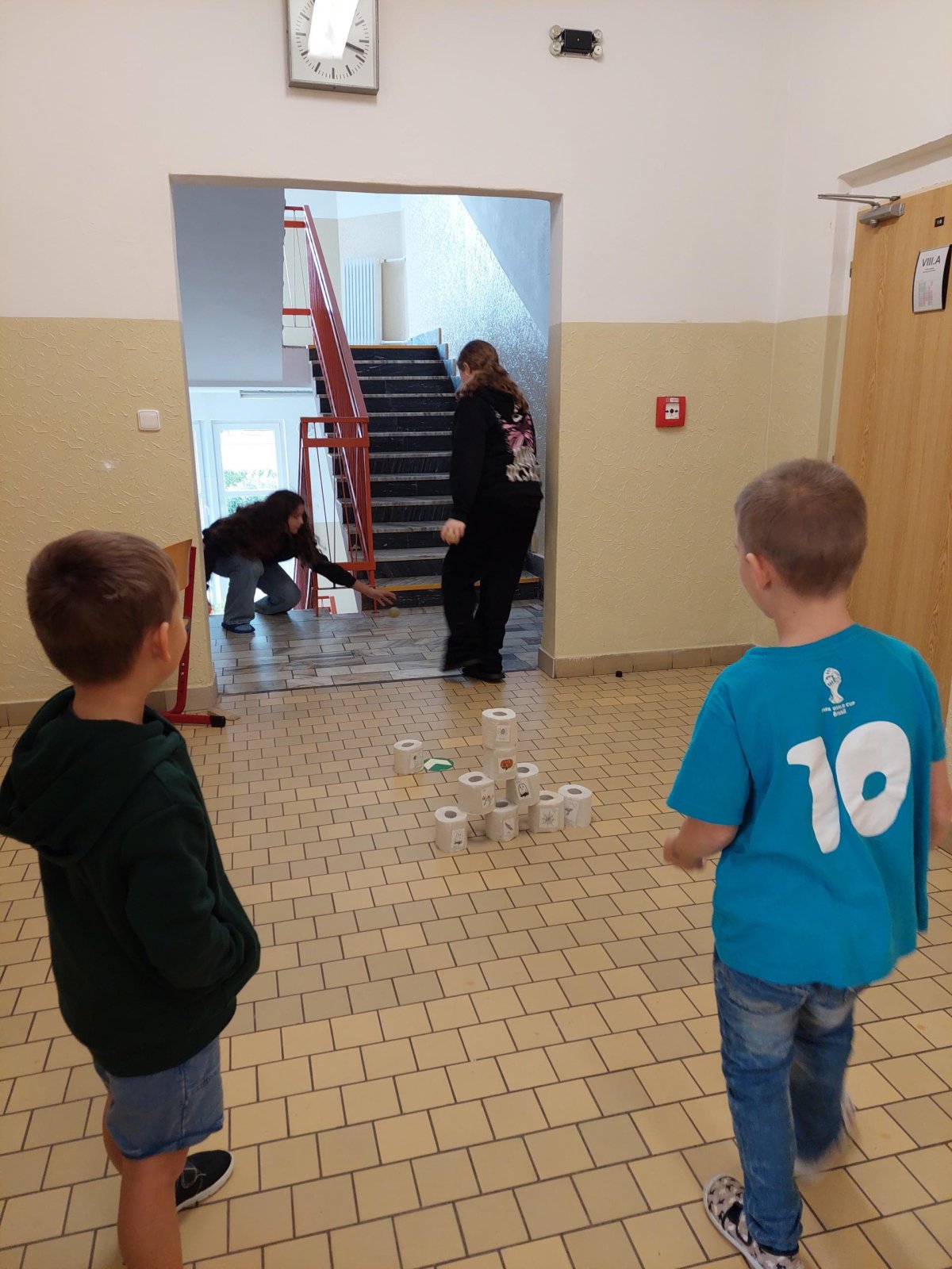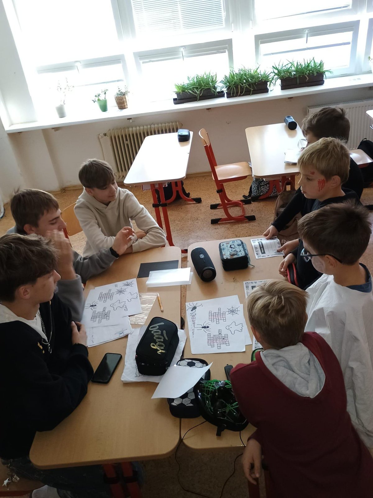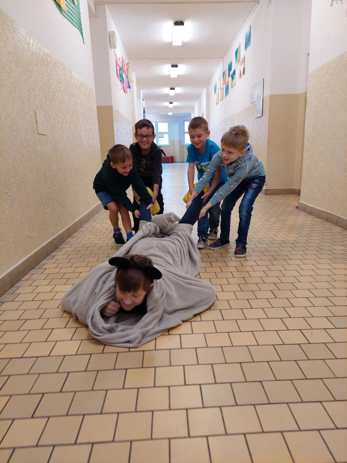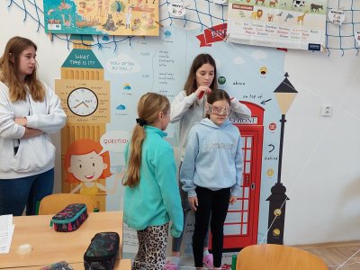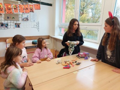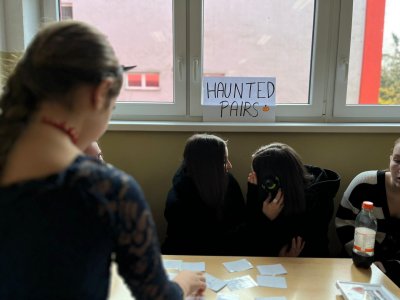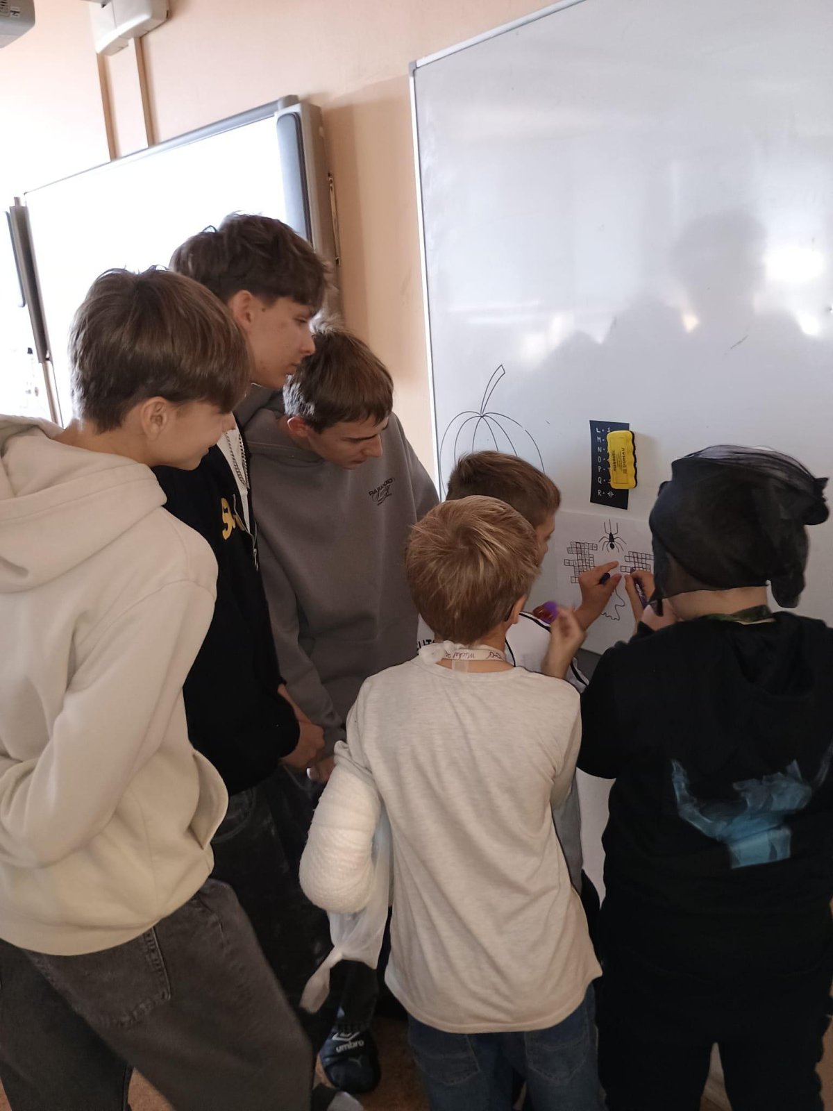 Již několik let v období svátku Halloween chystají některé třídy druhého stupně speciální hravou hodinu angličtiny pro kamarády z prvního stupně. Letos se zapojil rekordní počet tříd. Mohli si tak pohrát prvňáčci, čtvrťáci i páťáci. Zábavná pestrá stanoviště jim připravili sedmáci a deváťáci. Někteří si dokonce zavzpomínali, že před lety byli také hosty svých starších spolužáků. Happy Halloween to everyone!