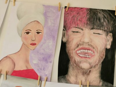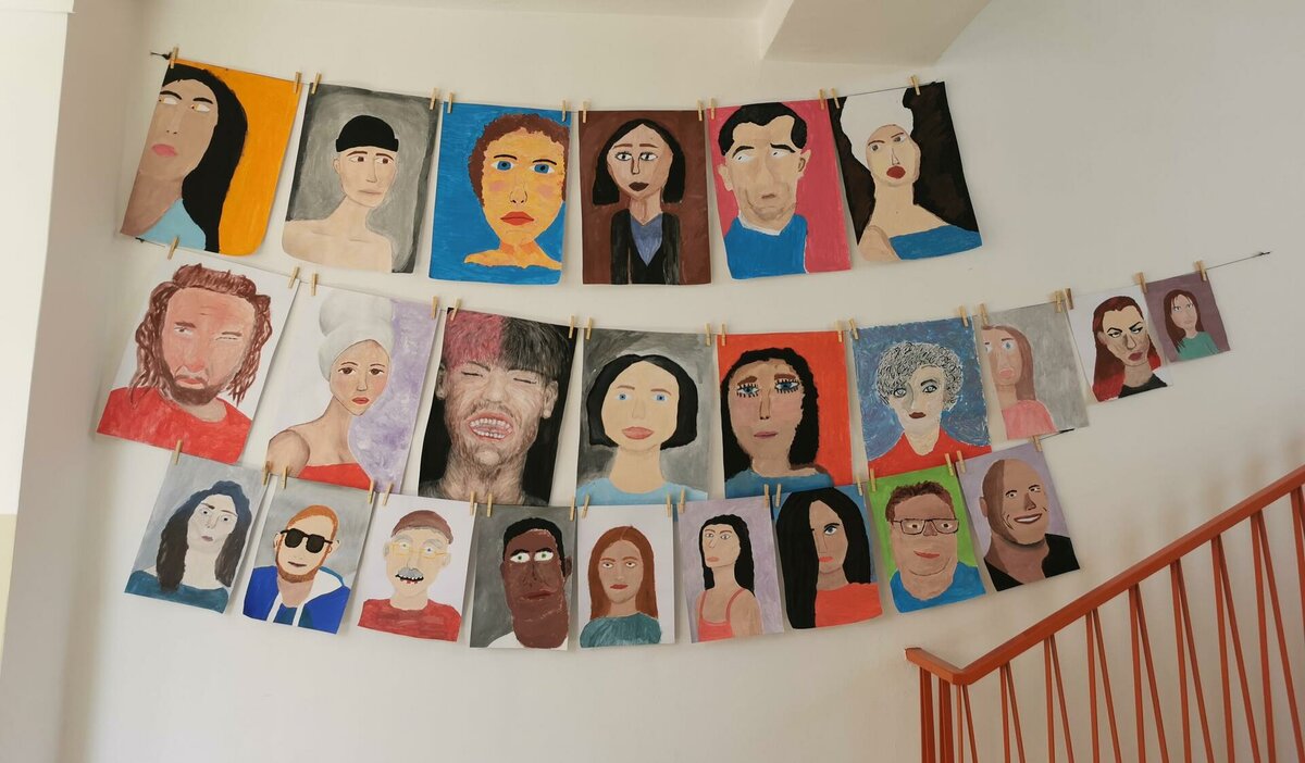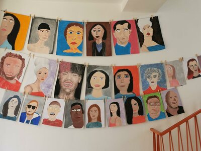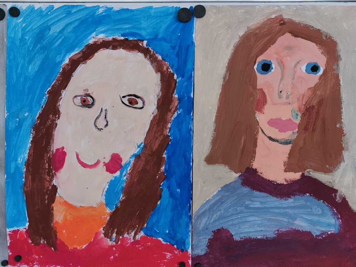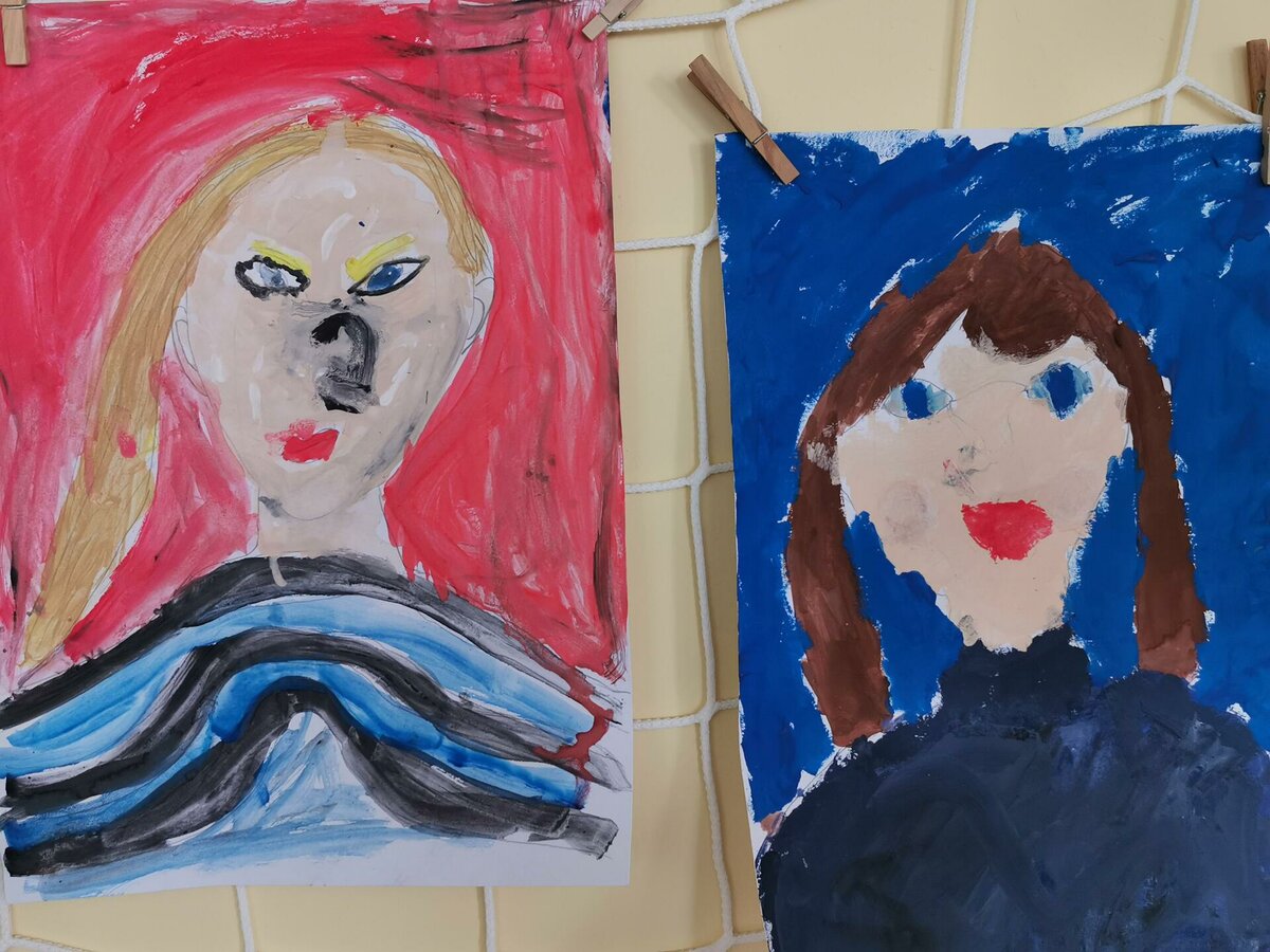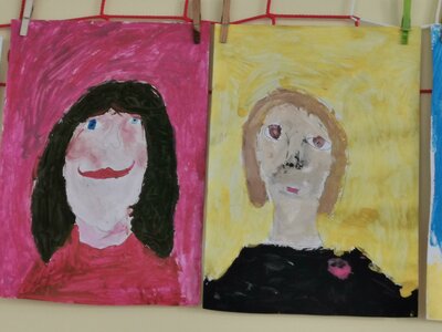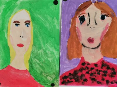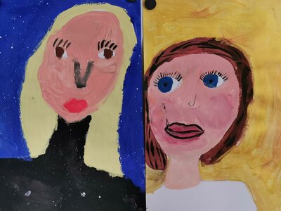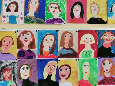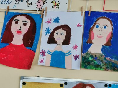 Žáci 8.,9. a 2. třídy dostali v hodinách VV stejný úkol-malbu portrétu temperovými barvami. Lišila se pouze velikost formátu čtvrtky. Jak se jim to povedlo, se můžete přesvědčit v této "online výstavě".