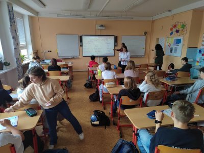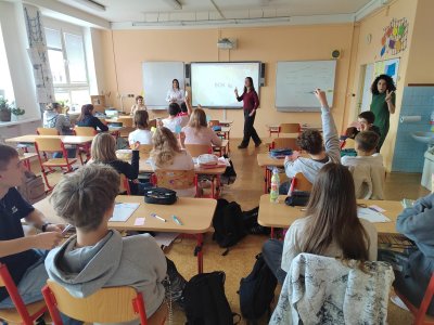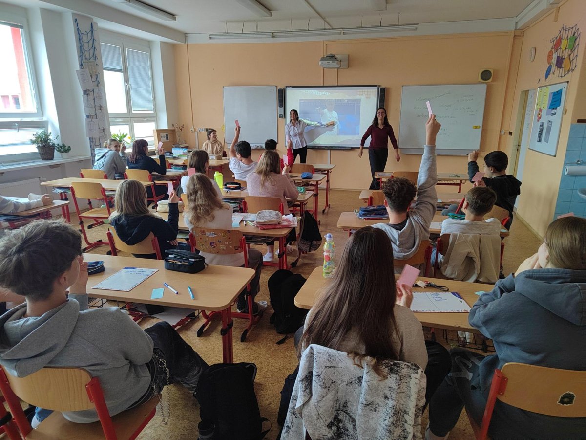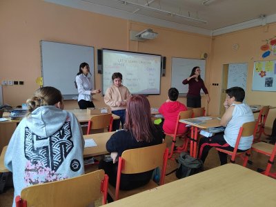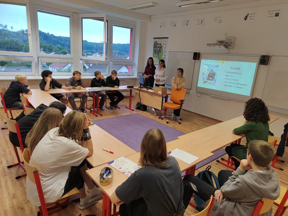 Na podzim jsme s žáky 8.C a 9.A přivítali tři mezinárodní dobrovolnice, které působí ve SVČ ve Vysokém Mýtě. Jedna dívka z Chorvatska a dvě dívky z Turecka se zapojily do výuky anglického jazyka.