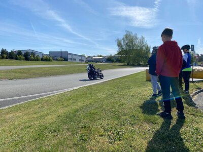 Před začátkem praktické části děti chvíli pozorovaly jízdu motorkářů, což pro ně bylo velmi zajímavé. Poté přišla na řadu praxe.