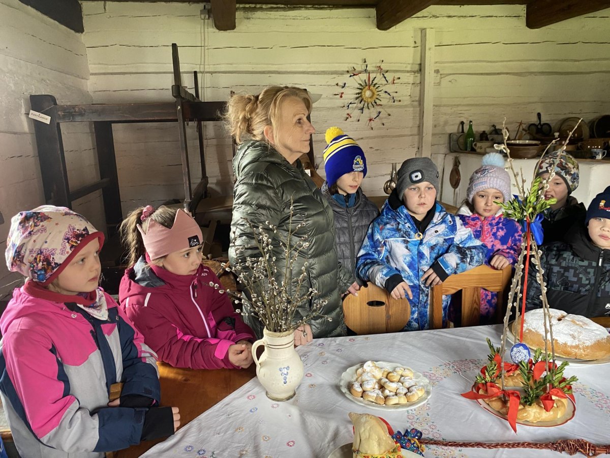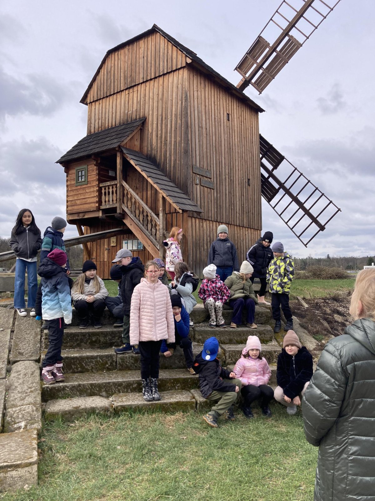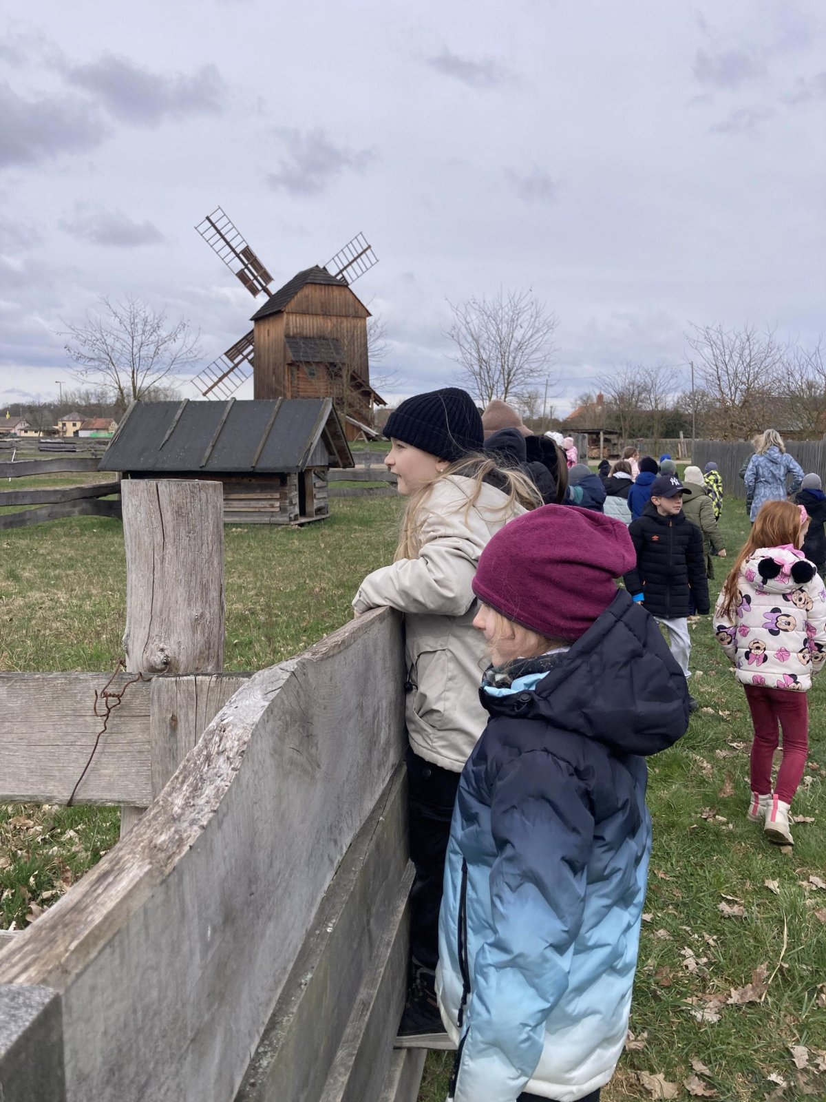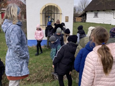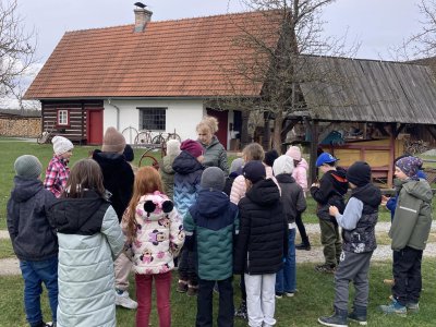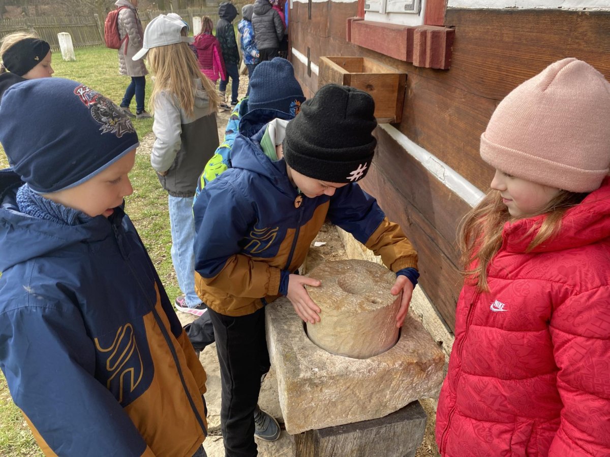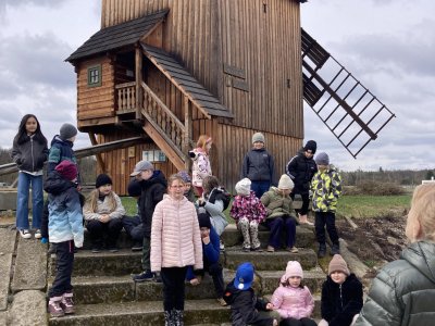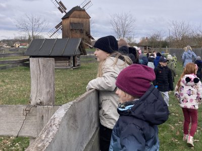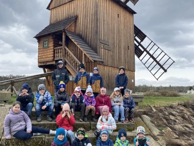 Druhá část byla věnována exkurzi po areálu skanzenu. Děti si mohly prohlédnout interiéry historických domů, viděly jejich vybavení a seznámily se se životem lidí v minulosti. Nahlédly také do vodního mlýna, kde se dozvěděly, jak fungoval a jak důležitou roli měl v každodenním životě. Zajímavostí byl i větrný mlýn – děti se dozvěděly, že pokud vítr foukal z jiného směru, celá konstrukce mlýna se musela natočit proti větru. K tomu se dříve využívala síla koní, kteří mlýn pomáhali otáčet.