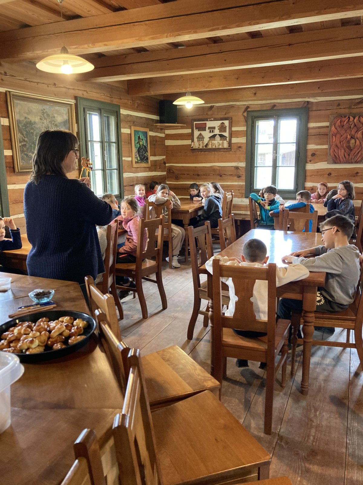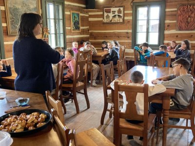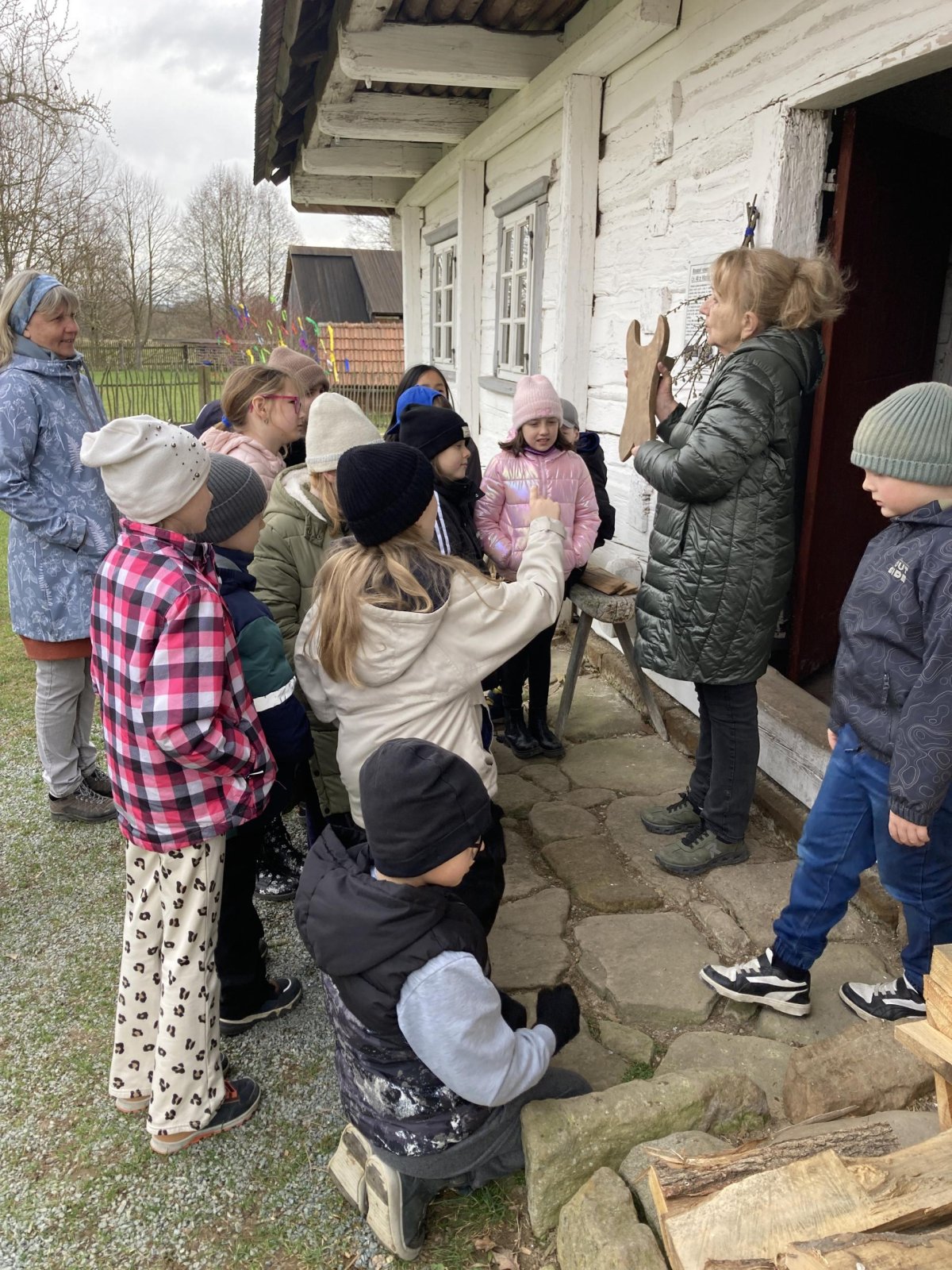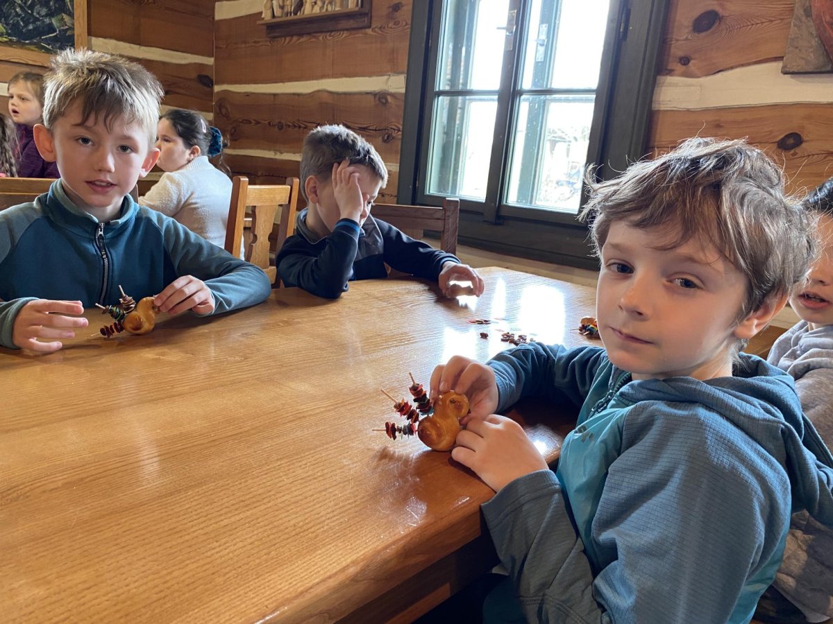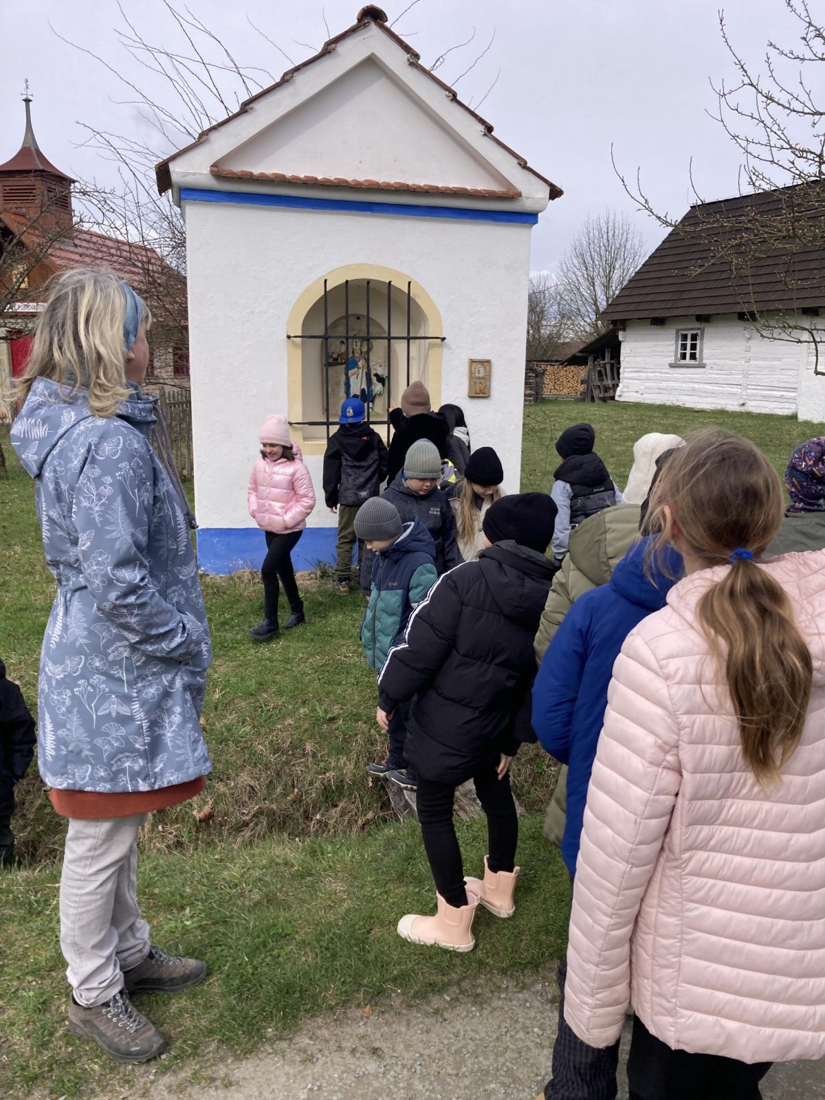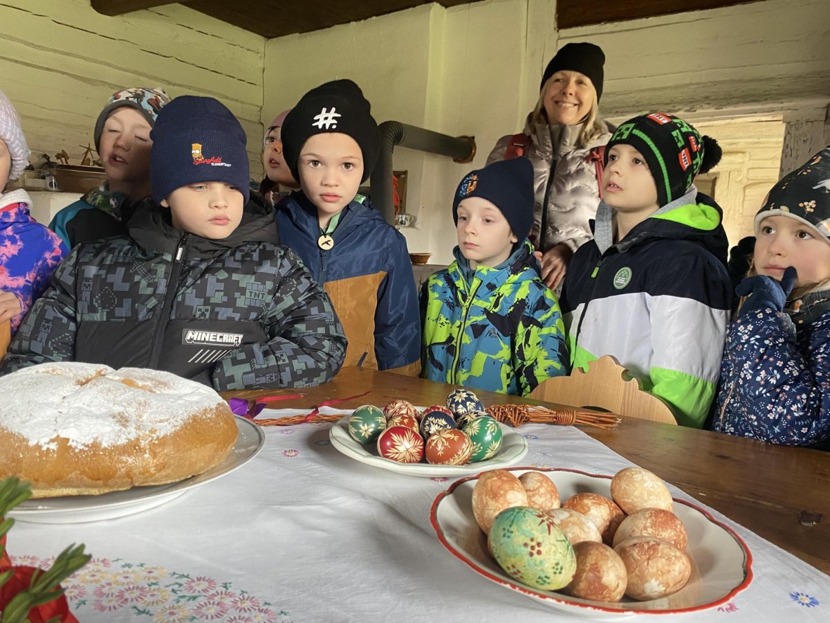 Druhá část byla věnována exkurzi po areálu skanzenu. Děti si mohly prohlédnout interiéry historických domů, viděly jejich vybavení a seznámily se se životem lidí v minulosti. Nahlédly také do vodního mlýna, kde se dozvěděly, jak fungoval a jak důležitou roli měl v každodenním životě. Zajímavostí byl i větrný mlýn – děti se dozvěděly, že pokud vítr foukal z jiného směru, celá konstrukce mlýna se musela natočit proti větru. K tomu se dříve využívala síla koní, kteří mlýn pomáhali otáčet.