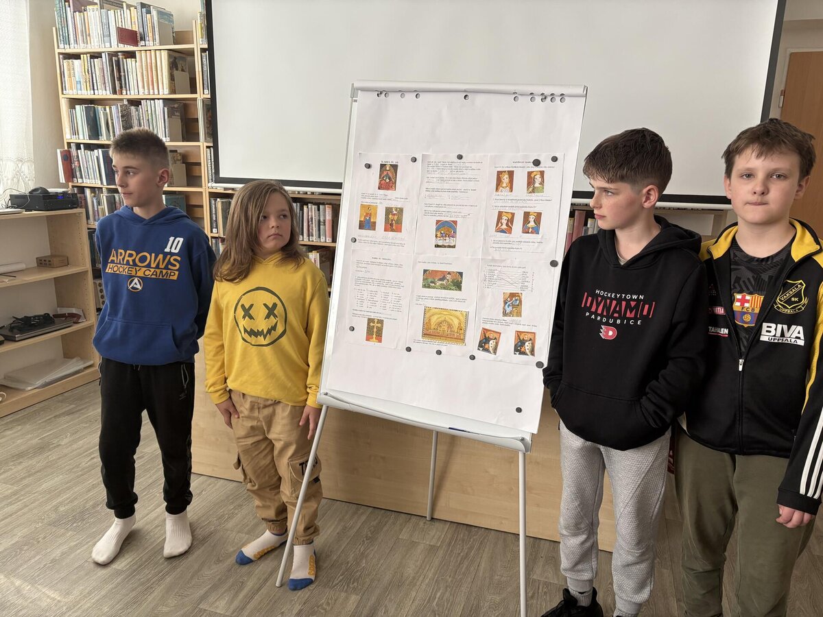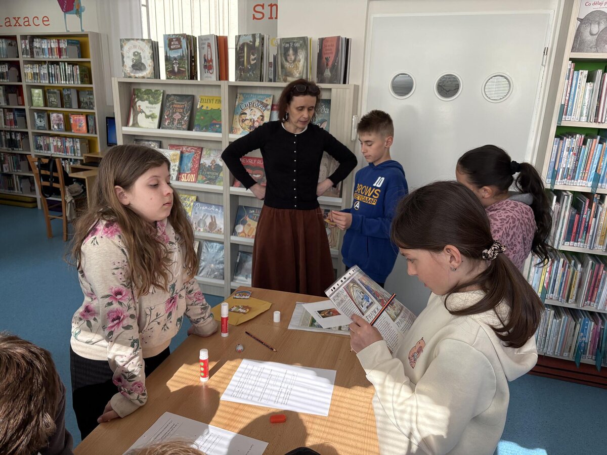 Ve středu 22.4. žáci IV. B vyměnili učebnice za regály plné knih a vyrazili do městské knihovny. Tématem našeho dopoledne byl "Otec vlasti" - Karel IV..