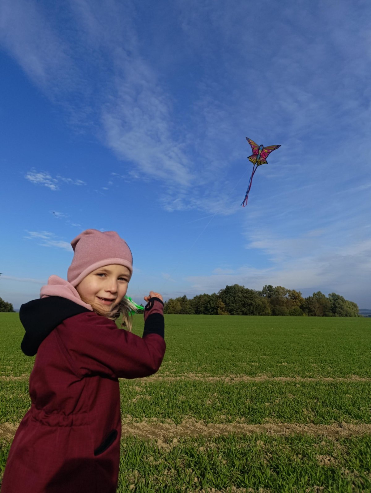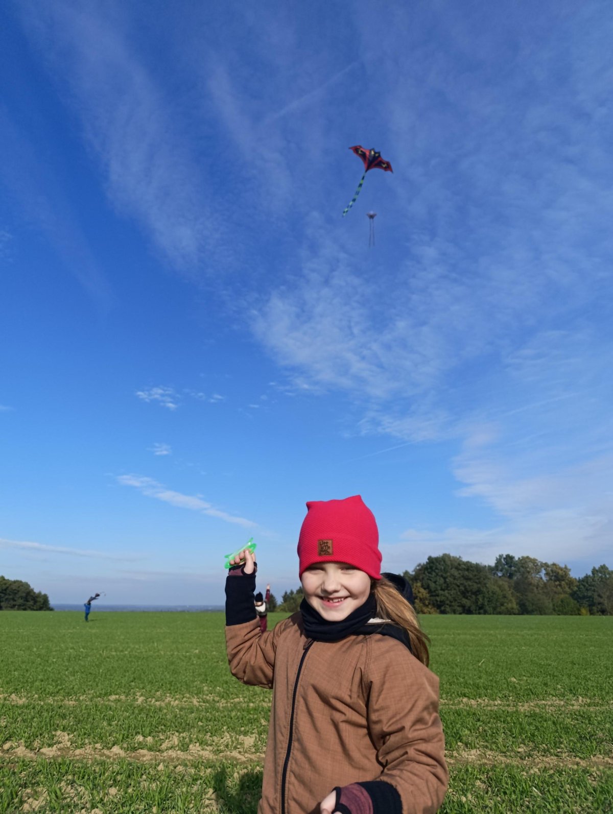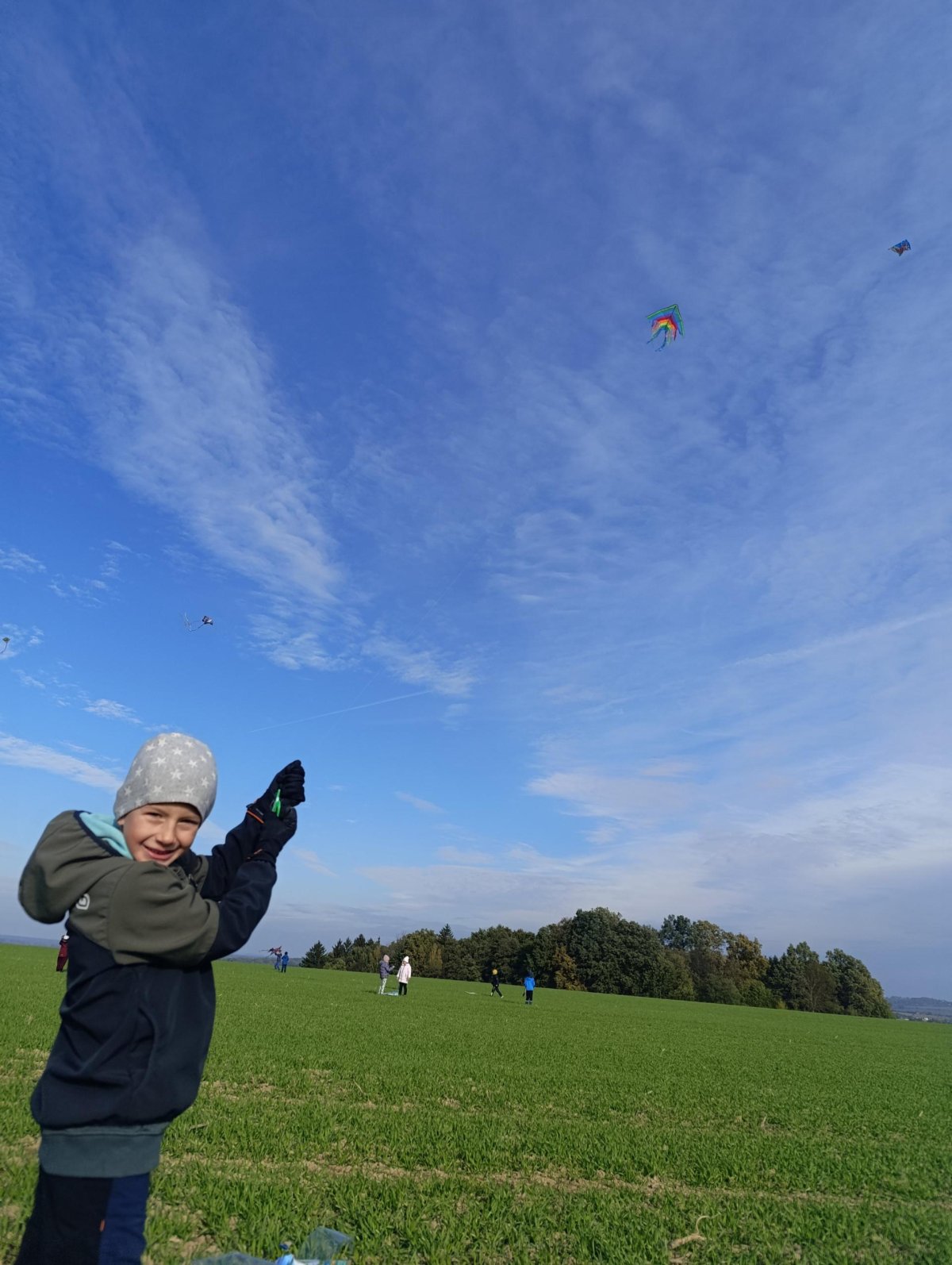 ....ale i úžasně nechá tancovat draky na obloze. O tom se v úterý přesvědčily děti z 1.B. Podívaná to byla úžasná. A drakům se nechtělo ani zpátky na zem.