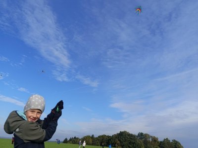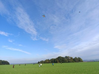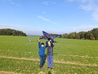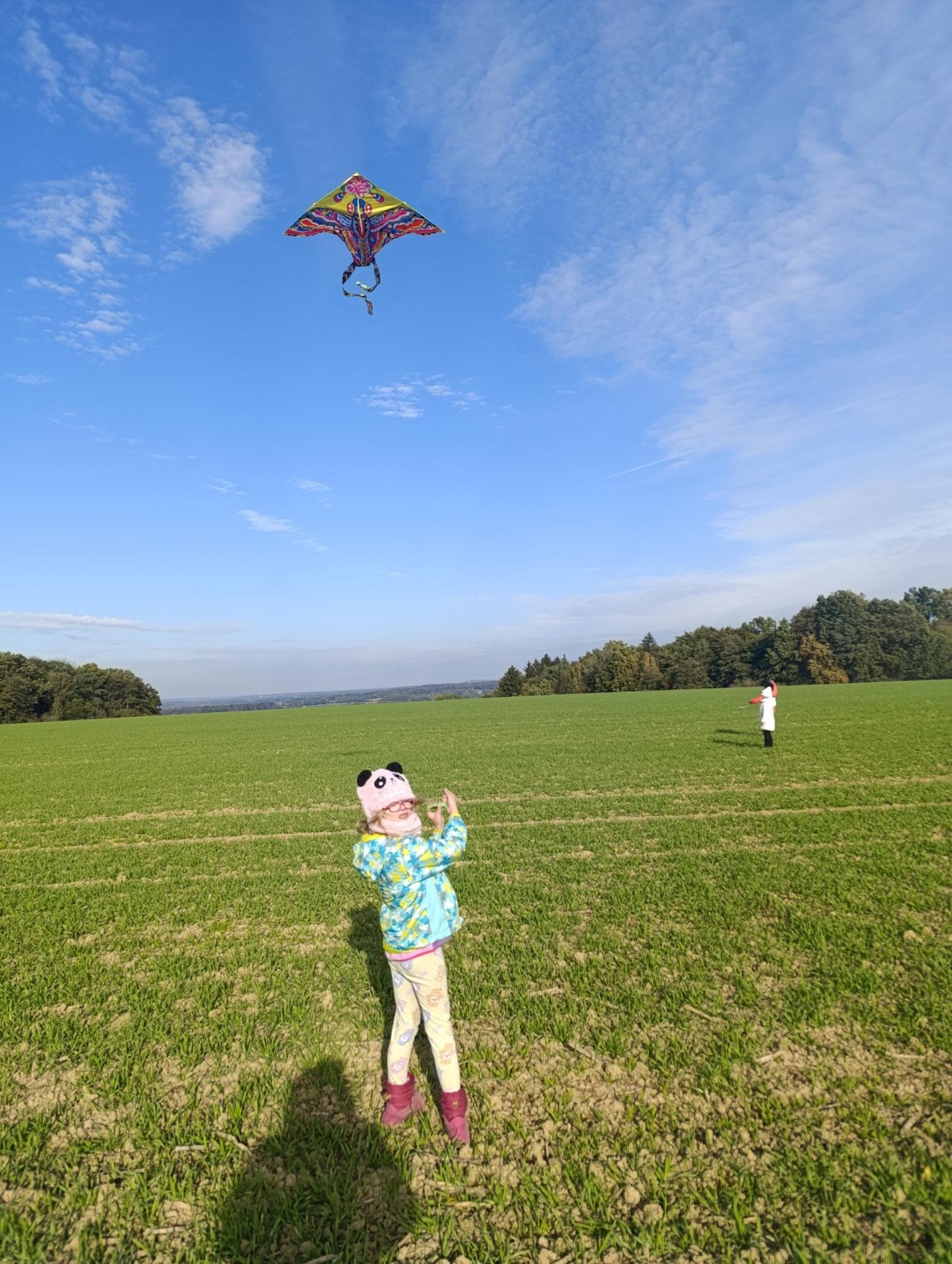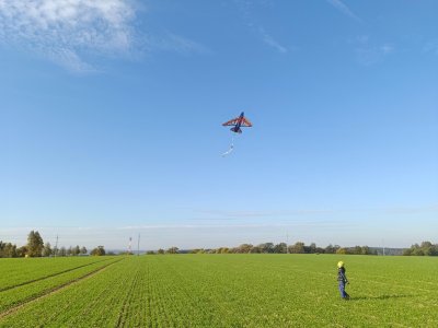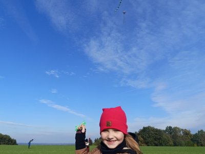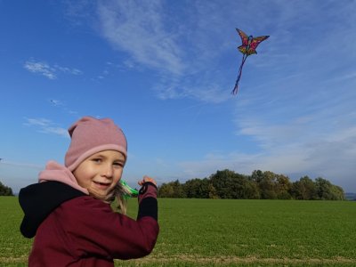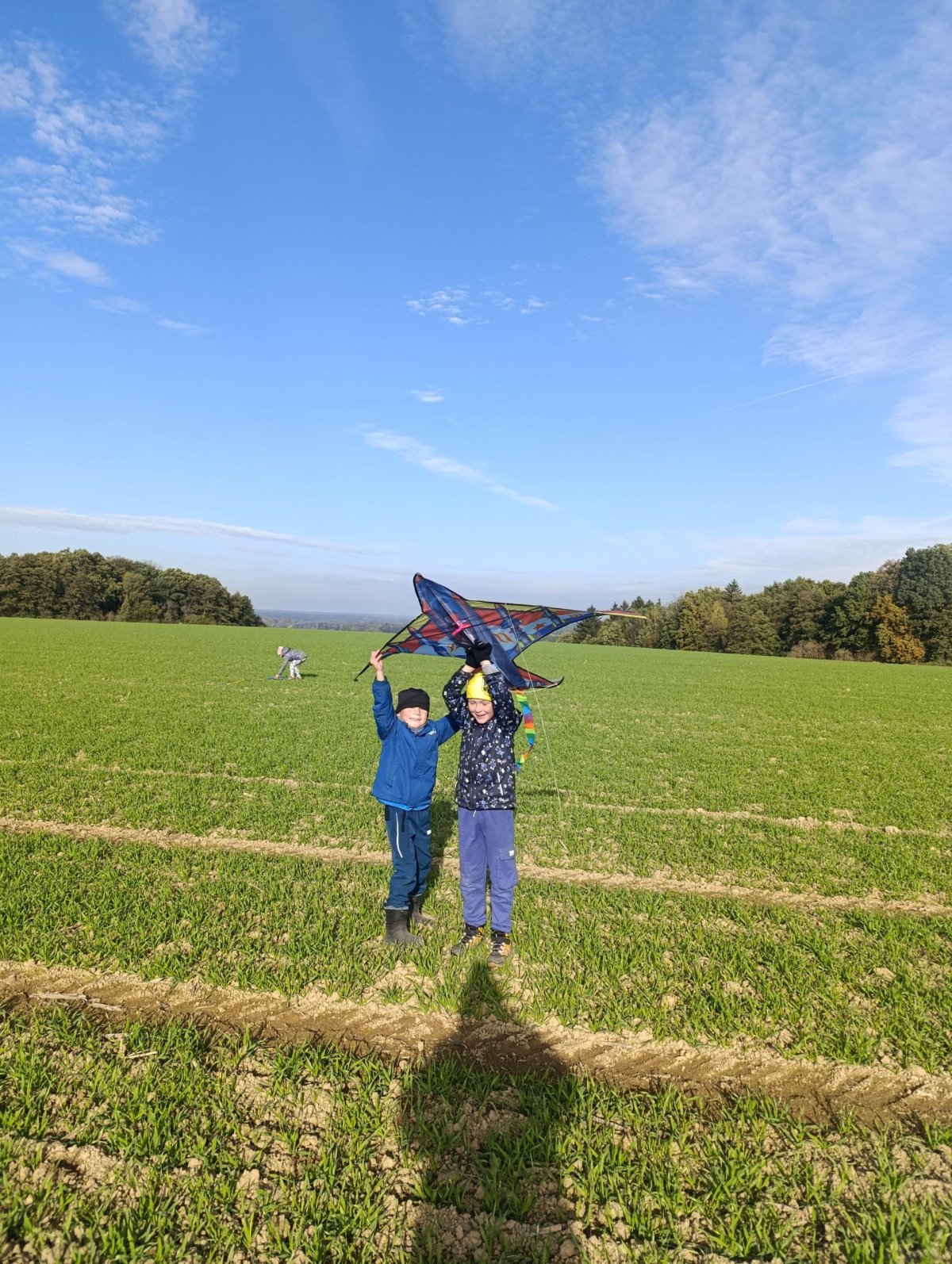 ....ale i úžasně nechá tancovat draky na obloze. O tom se v úterý přesvědčily děti z 1.B. Podívaná to byla úžasná. A drakům se nechtělo ani zpátky na zem.