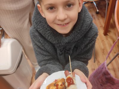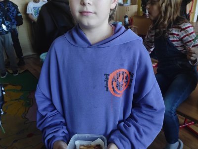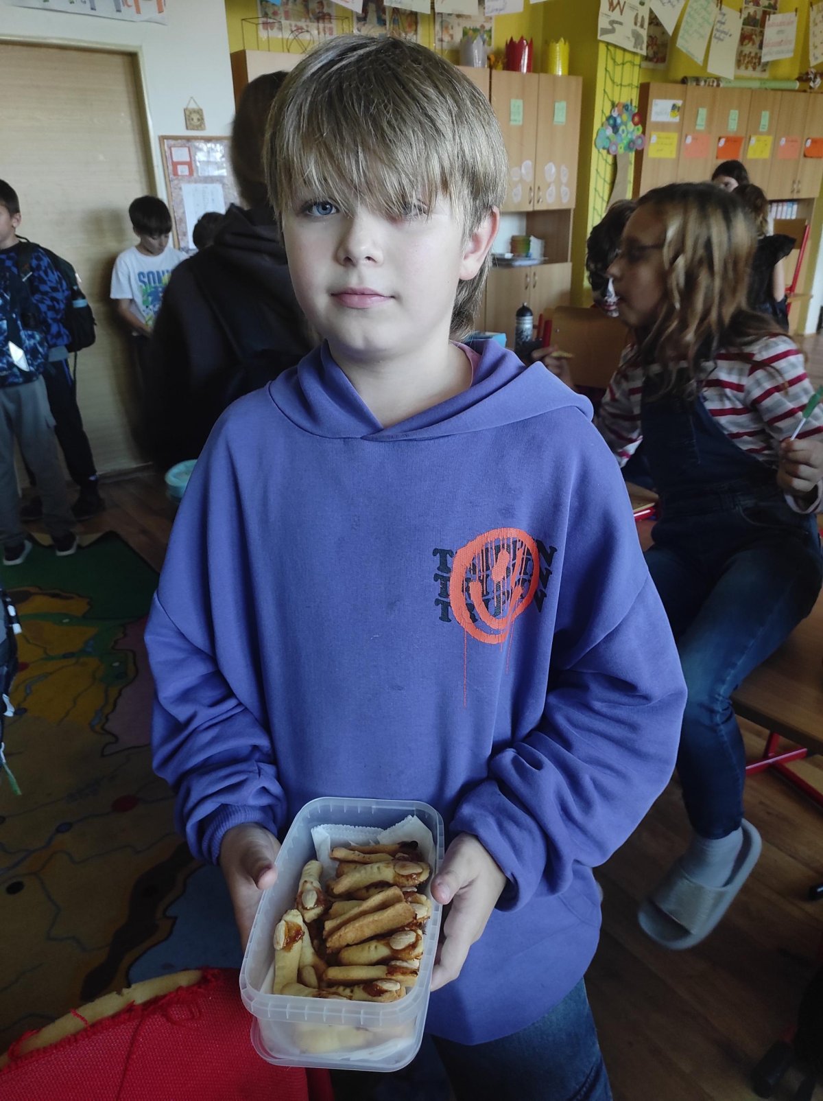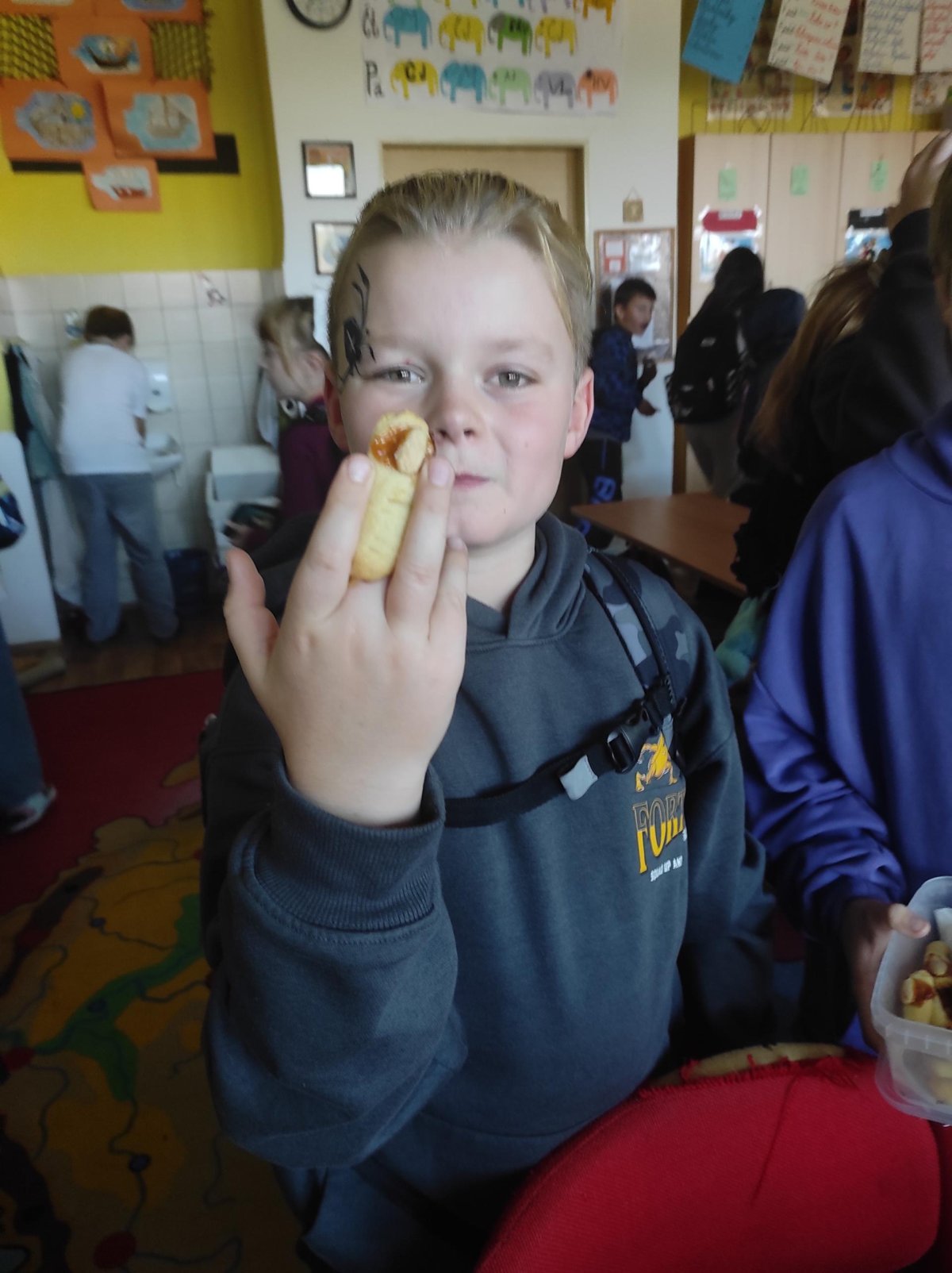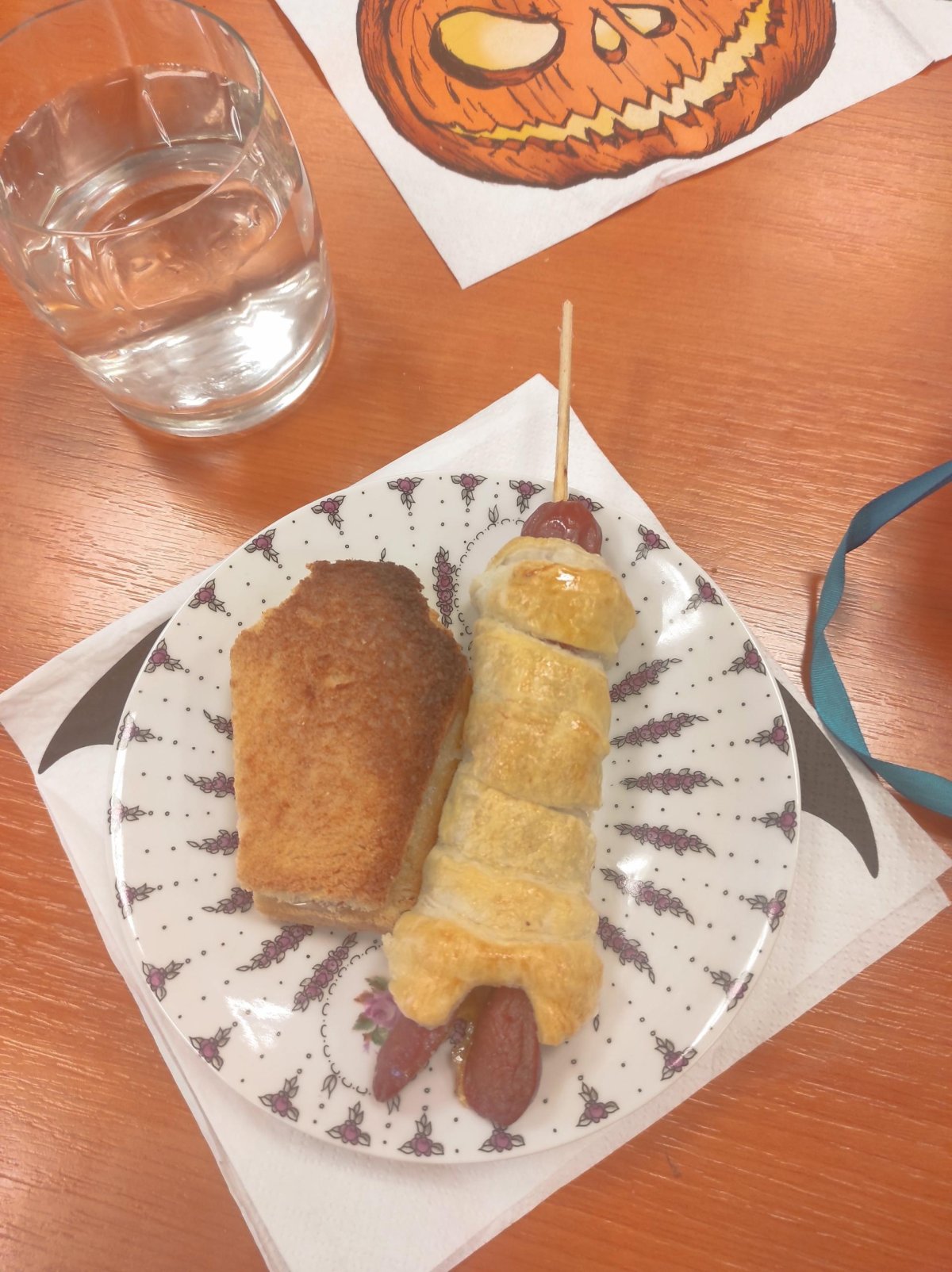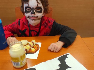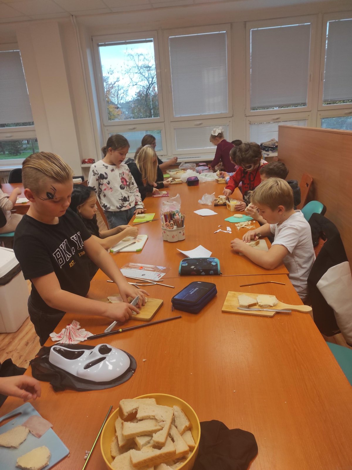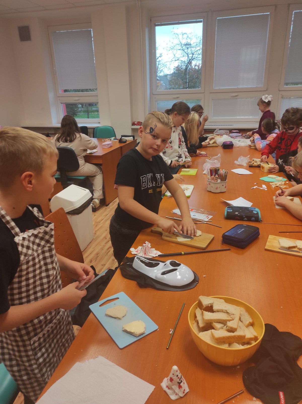 Po podzimních prázdninách se ve třídě 4.A sešli samé strašidelné až děsivé bytosti. Po malém plánovaném testíku z přírodovědy se "vyčerpané" bytosti přesunuli do školní kuchyně s vidinou slibované hostiny. Na jídelním lístku byla mumie pečená v troubě, tousty ve tvaru rakviček s krvavým křížkem (kečup) a kořeněné chipsy z brambor ve tvaru dýničky s obličejem.