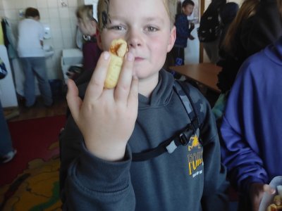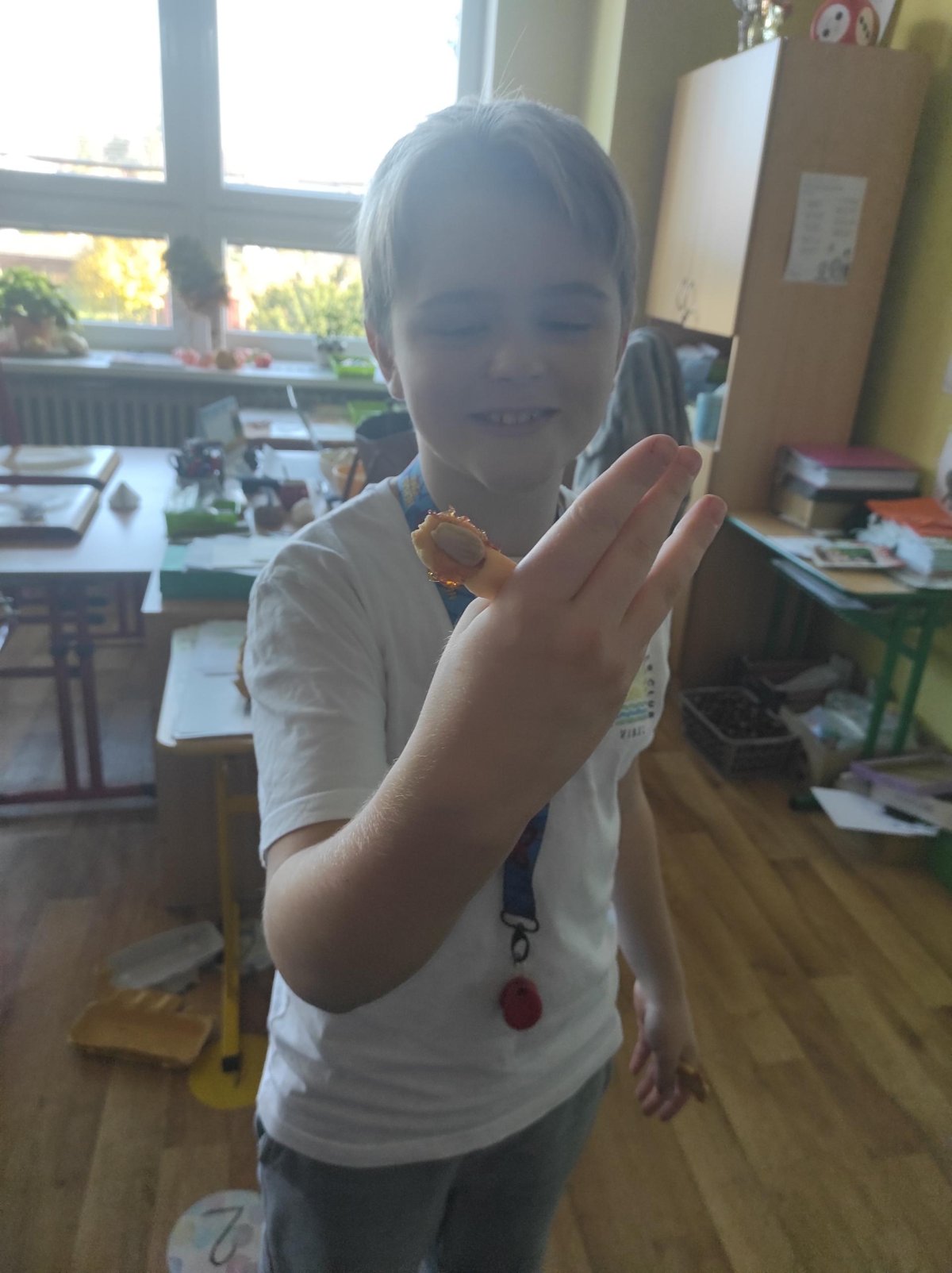 Než se vše upeklo a zapeklo,děti se zájmem sledovaly pokus "levitování duchů".Ve sklenici se vznášely bílé fazole s otevřenou pusou a vytřeštěnýma očima.