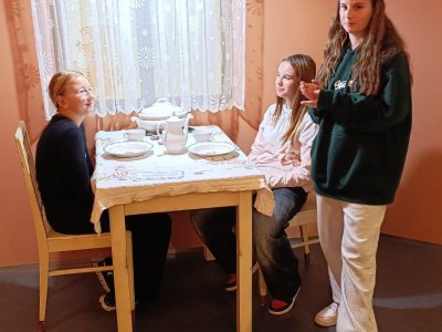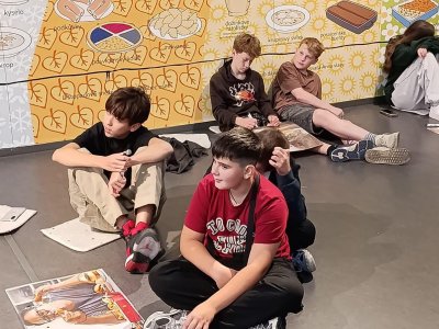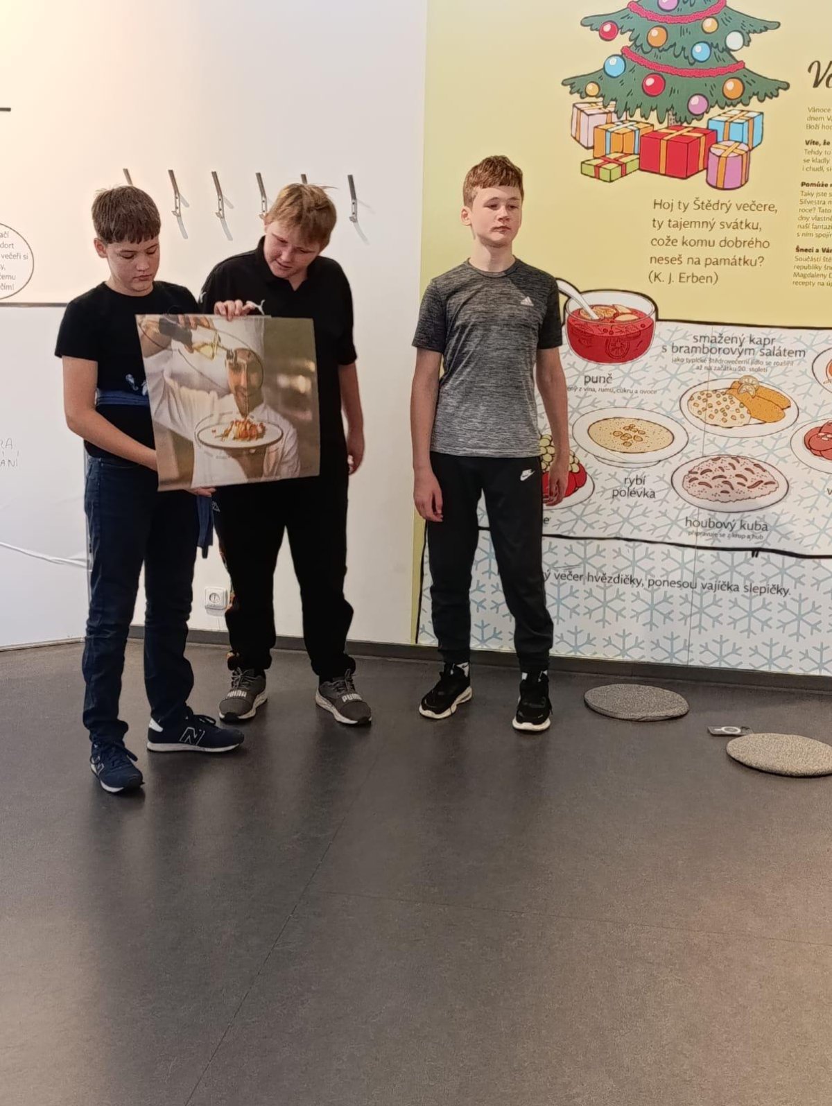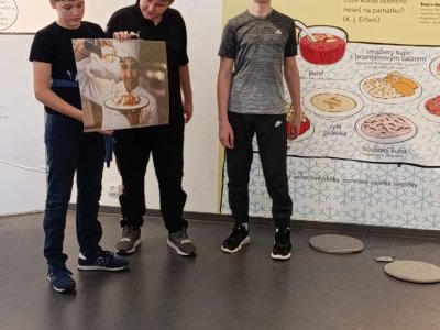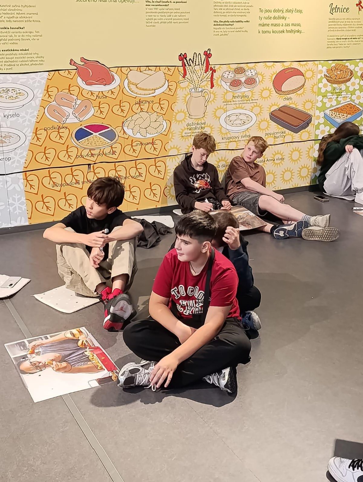 Po krátké přestávce jsme se zúčastnili lektorského programu Kultura prochází žaludkem (více zde). Ten nám ukázal, že jídlo není jen každodenní nutnost, ale i důležitá součást kultury a historie. Dozvěděli jsme se, jak se stolovalo v minulosti, jak se měnily suroviny i způsoby přípravy pokrmů a jak jídlo dokáže spojovat lidi. Program byl vedený hravou formou a zapojili jsme se do něj všichni. A protože všichni moc dobře víme, jak je důležité propojovat teorii s praxí, tak na závěr výletu nemohl chybět čas na navštívení oblíbených restaurací, jako je například Burger King na hlavním nádraží. :-)