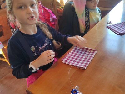 V dílně si děti vyrobily nádhernou ozdobu na vánoční stromeček z korálků. Všem se hvězdička moc povedla.