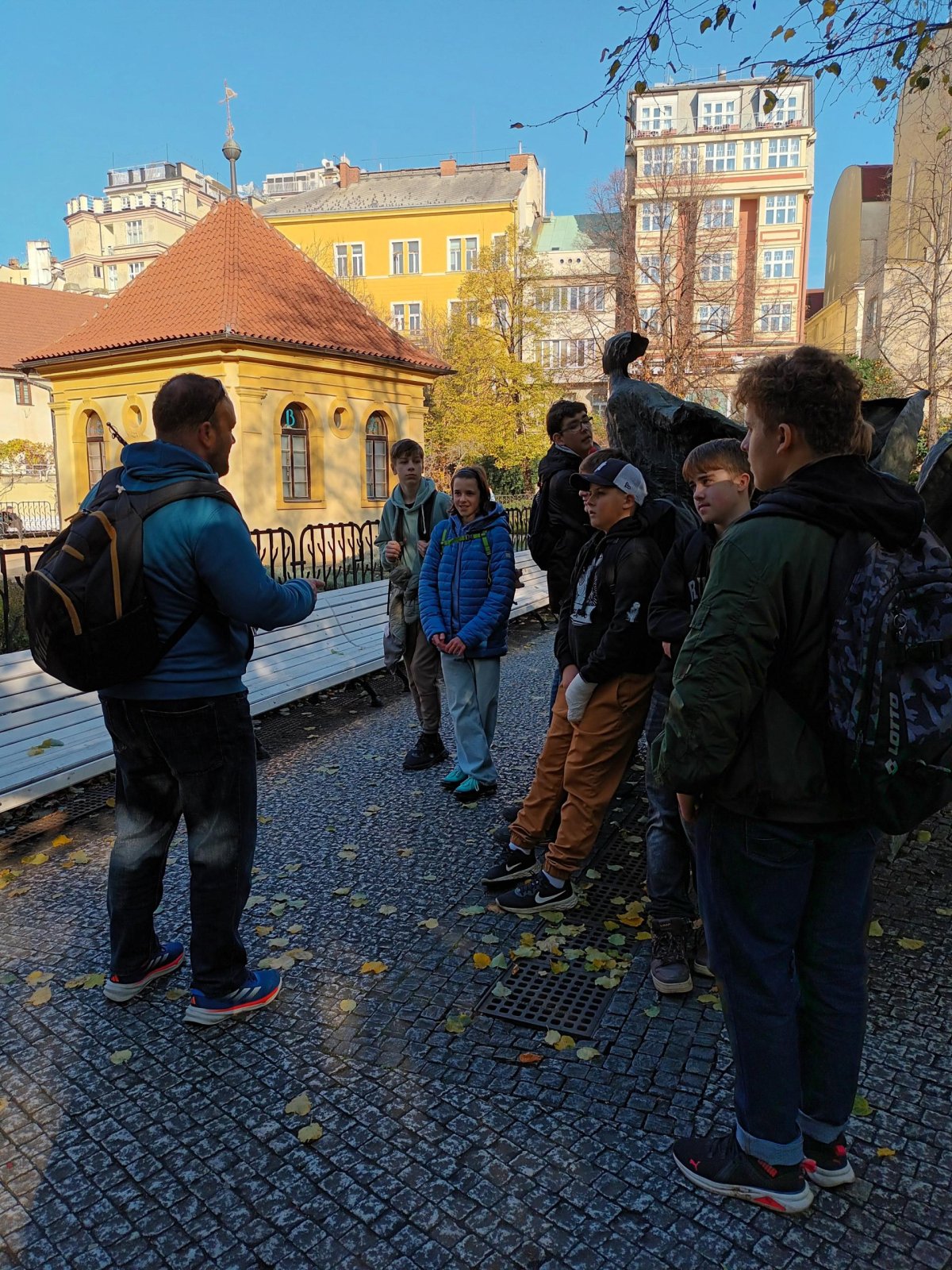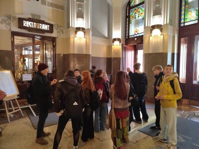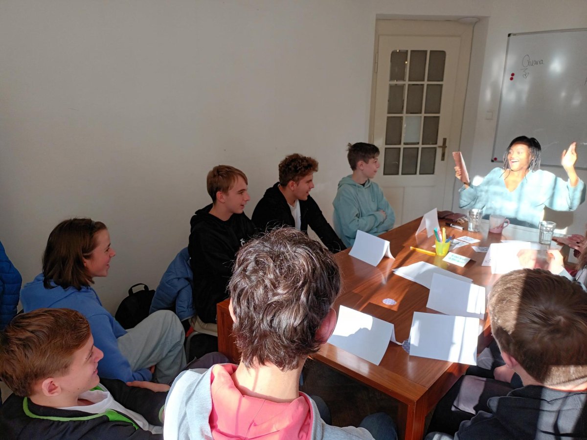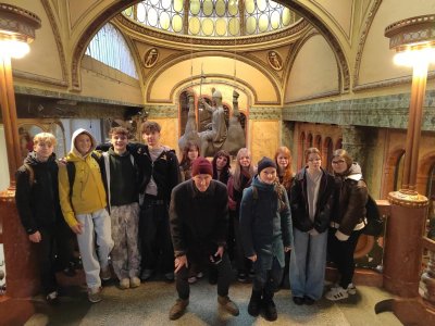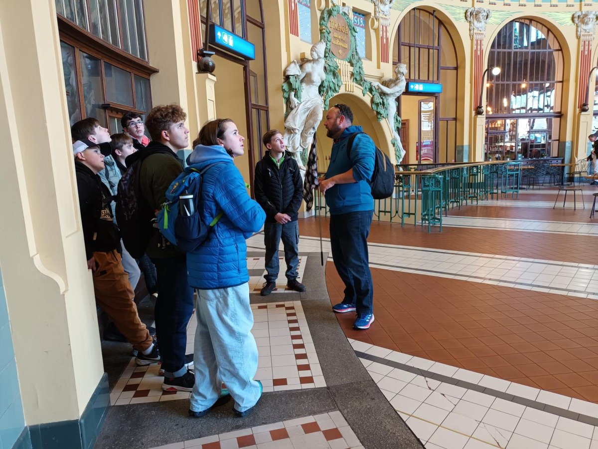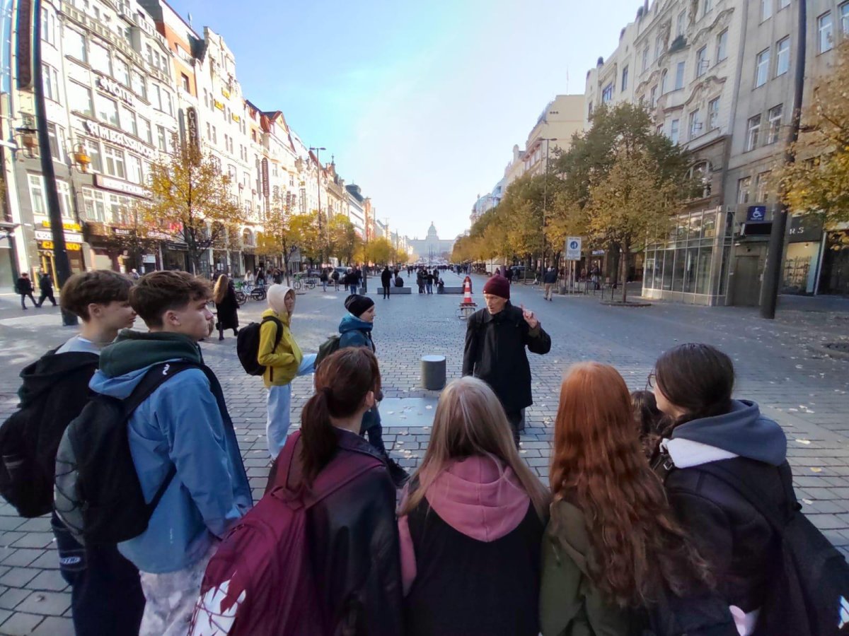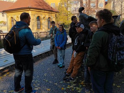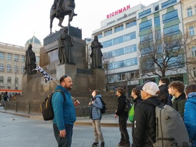Skupina dvaceti žáků z osmých a devátých tříd si nejprve zakonverzovala v jazykové škole Tandem, kde se nám věnovaly sympatické lektorky z USA. Druhou částí programu byla prohlídka Nového Města, vedená opět rodilými mluvčími. Na jejím konci už některé přemohla únava, i záda se ozvala, ale jinak se exkurze vyvedla, počasí nám přálo, i zpožděné vlaky nakonec dojely do cíle. Byl to prima den; slovy žáků: