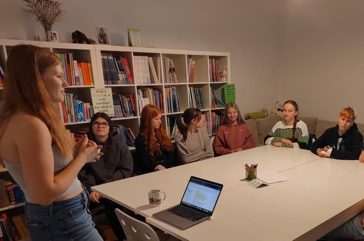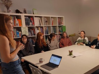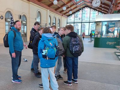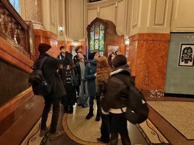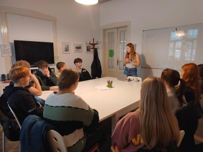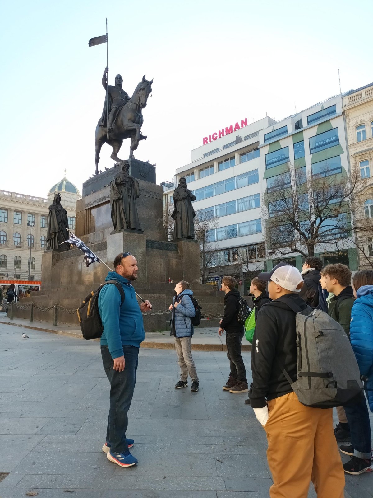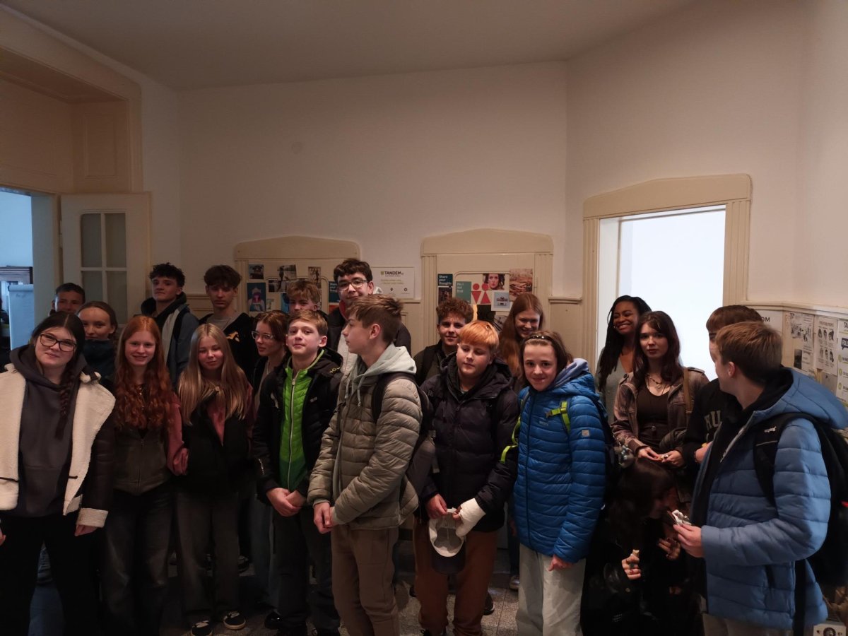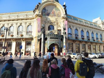 Skupina dvaceti žáků z osmých a devátých tříd si nejprve zakonverzovala v jazykové škole Tandem, kde se nám věnovaly sympatické lektorky z USA. Druhou částí programu byla prohlídka Nového Města, vedená opět rodilými mluvčími. Na jejím konci už některé přemohla únava, i záda se ozvala, ale jinak se exkurze vyvedla, počasí nám přálo, i zpožděné vlaky nakonec dojely do cíle. Byl to prima den; slovy žáků: