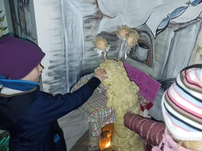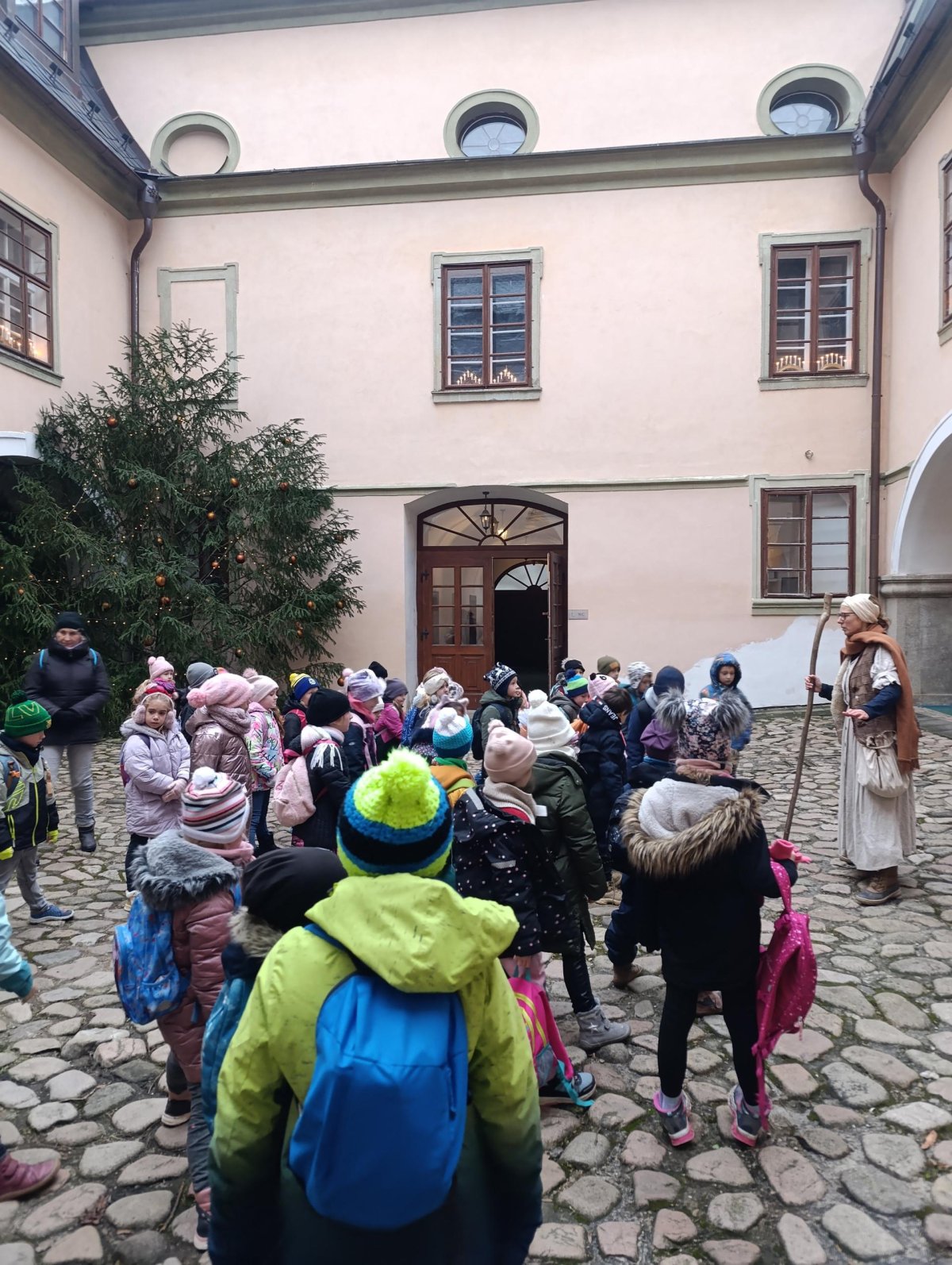 ..si vyrazili před Vánoci prvňáci. Putováním nás provedla Barunka s Andělem a došli jsme až k samotnému Ježíškovi. I teplý čajík s perníkem přišel na závěr vhod.