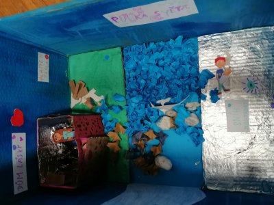 Ve výtvarné výchově se všichni pustili do výtvarného projektu své země fantazie. Všechny výtvory jsme si pak prohlédli na krásné výstavě v Panském domě.
