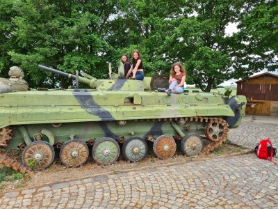 Odměnou jim byl výlet do Mirakula v Milovicích. A jaký by to byl výlet historického kroužku, pokud by se alespoň trochu nemohli dotknout historie – tentokrát se jednalo vyřazenou vojenskou historickou techniku na Tankodromu v Milovicích.