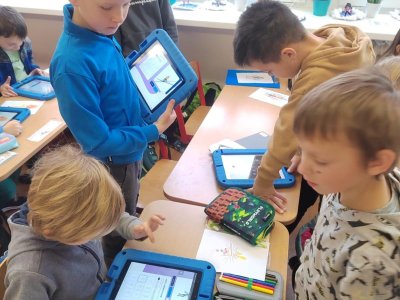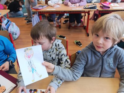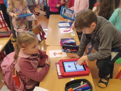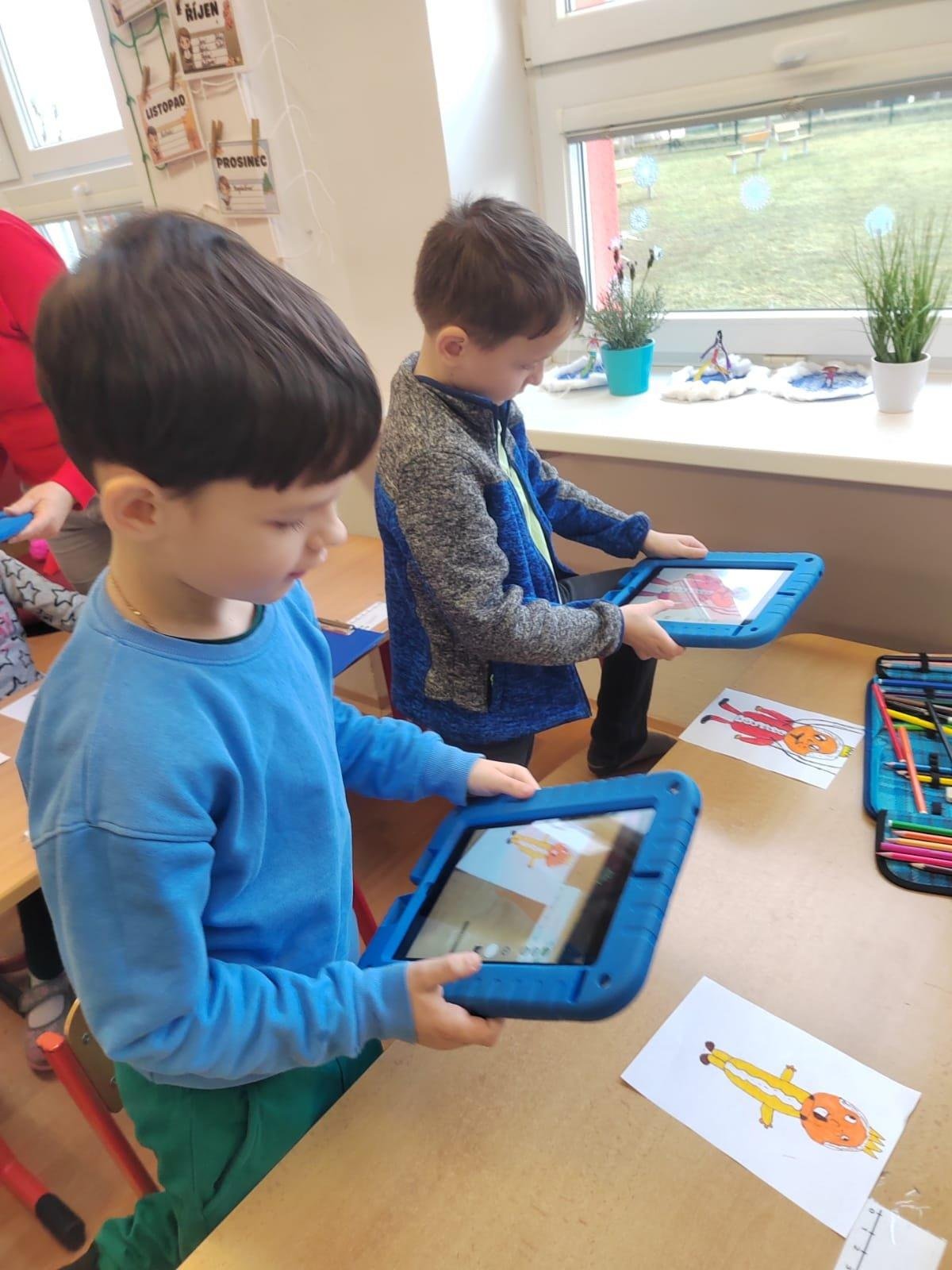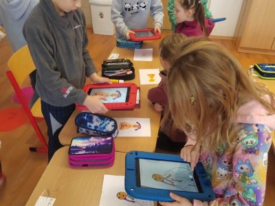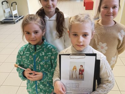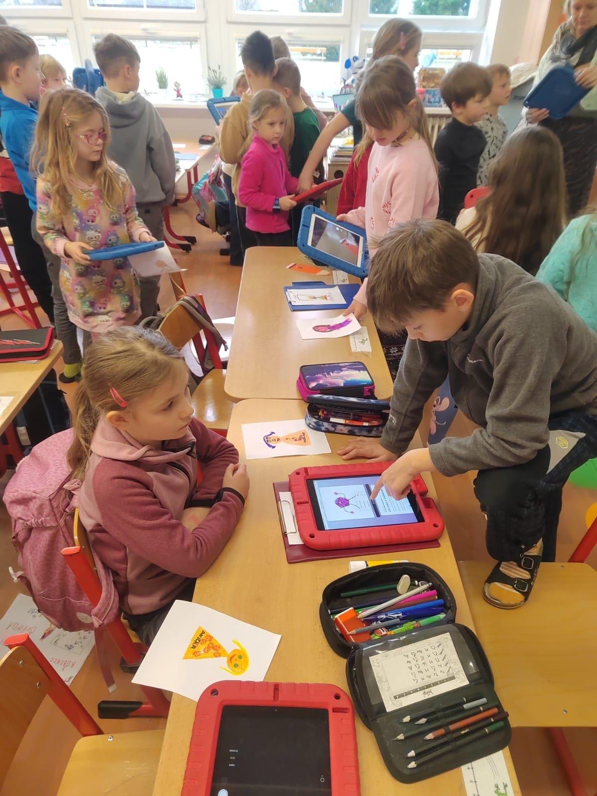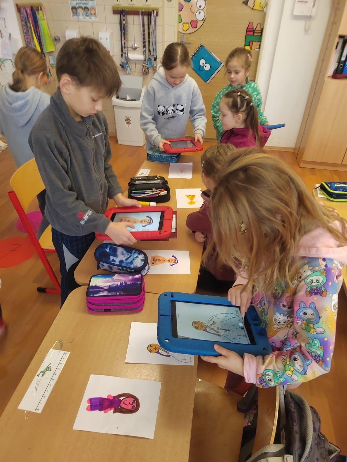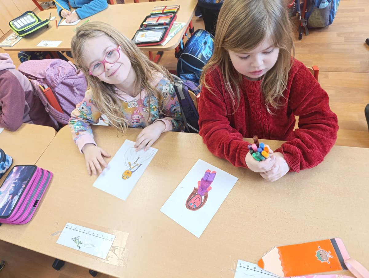 A tak se taky ve čtvrtek stalo. Třeťáci k nám dorazili hned na dvě vyučovací hodiny a mohlo se začít. Nejprve jsme si všichni nakreslili loutku, kterou jsme si na našem výletě vyrobili. Tu jsme pak vtipně rozpohybovali v různých pozicích na webové stránce. Pak už nás čekal pracovní list se záludnými otázkami v šatně školy. Děti pracovaly ve skupinkách a při této hře zúročily své znalosti z muzea. Výsledná tajenka JSME KAMARÁDI byla více než pravdivá.