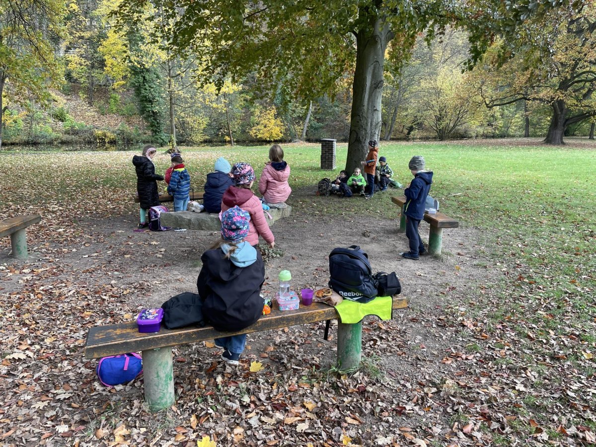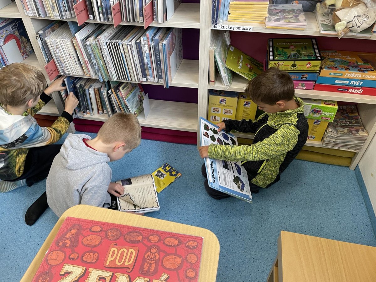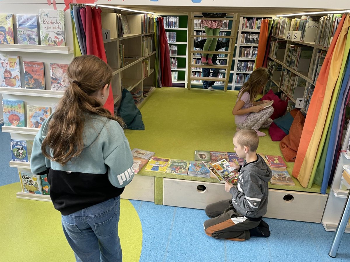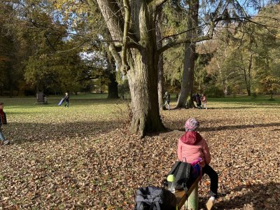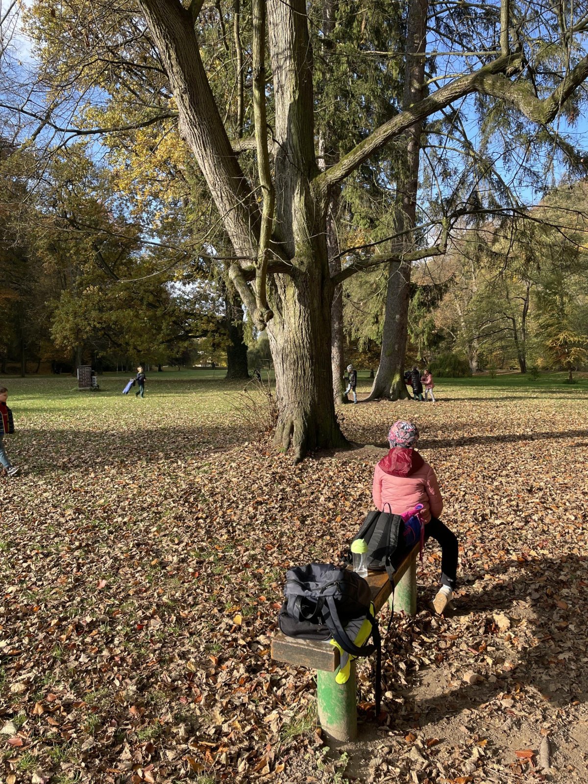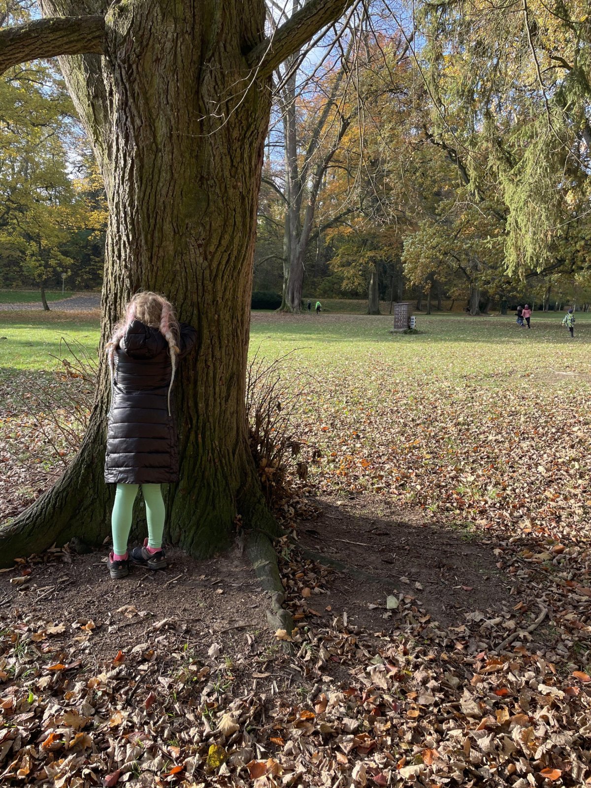 Za pěkného počasí jsme zašli vyměnit knihy do knihovny a udělali jsme si přírodovědnou procházku v parku Peliny. Poznávali jsme stromy, povídali jsme si o Chocni a zahráli jsme si na schovku. Deset, dvacet, už jdu! :)