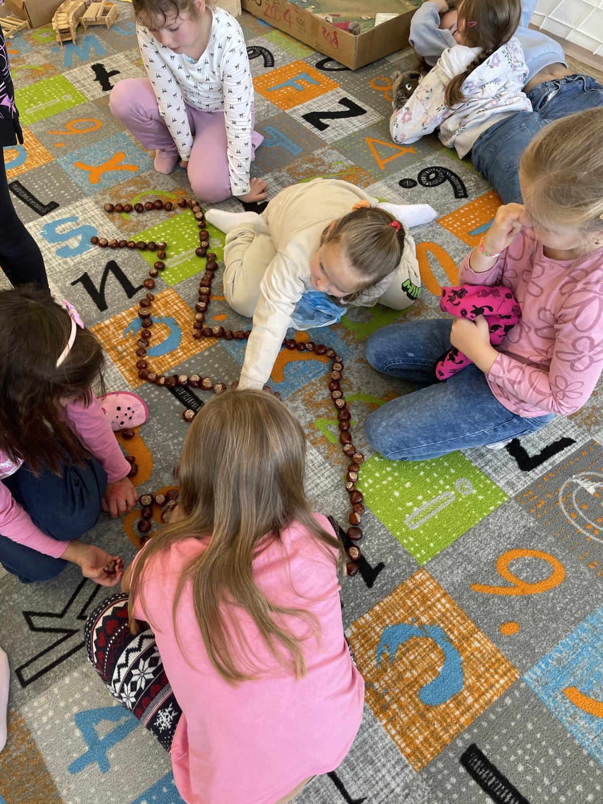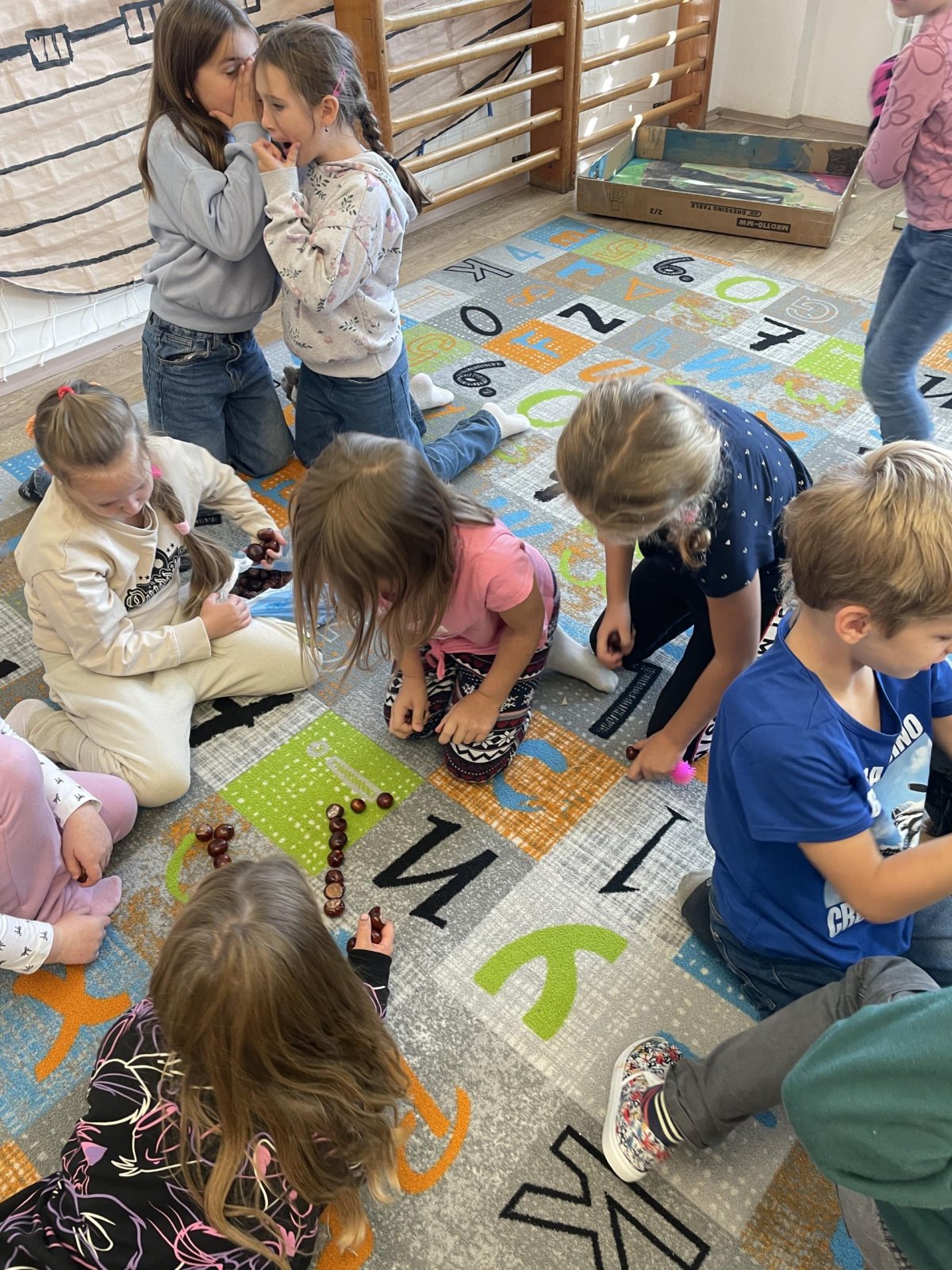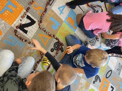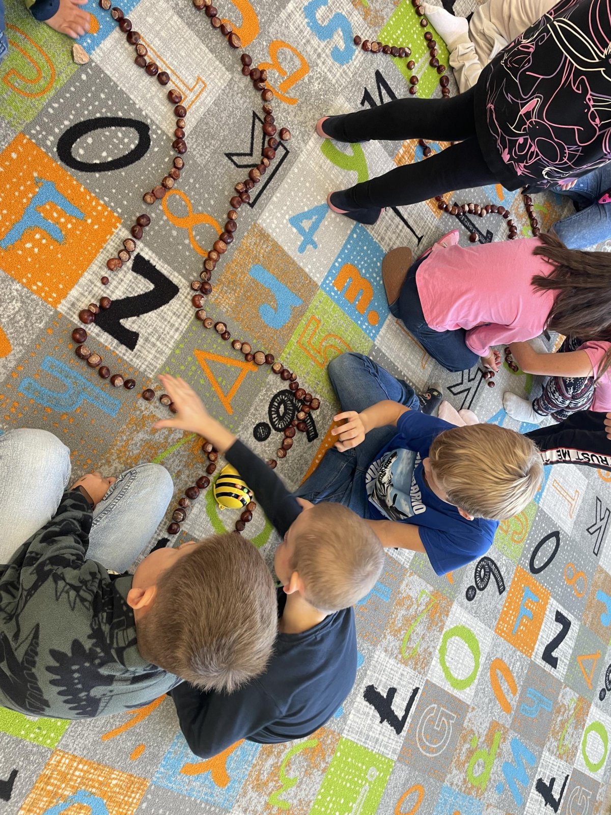 Ráda vás poznávám! Jsem BeeBot, malá programovací včelka. Umím chodit dopředu, dozadu, otočit se vpravo, vlevo a i celá se otočit můžu! Děti pro mě zkusily postavit bludiště z kaštanů. A já jsem chodila podle toho, jak mě naprogramovaly :).