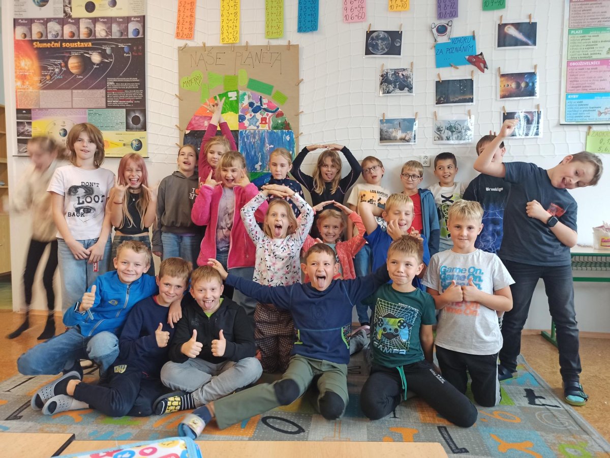 A jaká je naše třídní planeta? Barevná, veselá a pestrá. Máme rádi pizzu, sport, hry, zábavu, tvoření a legraci.