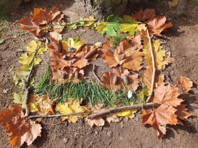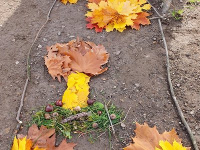 Při výtvarné výchově děti tvořily obrázky z přírodnin. Výtvory se jim povedly, ale bohužel neměly dlouhou životnost.